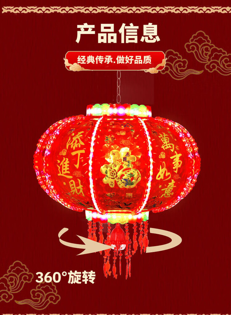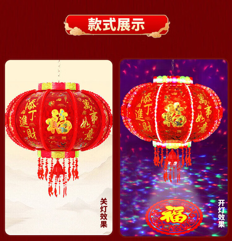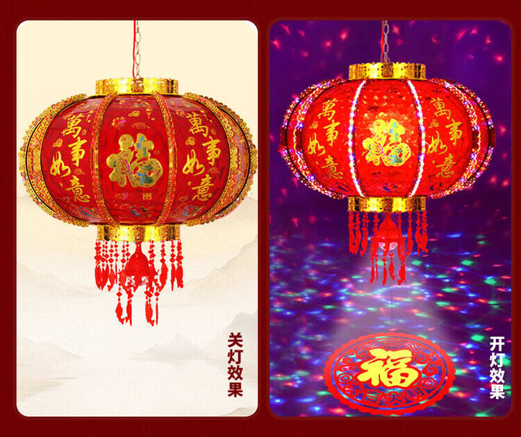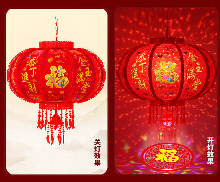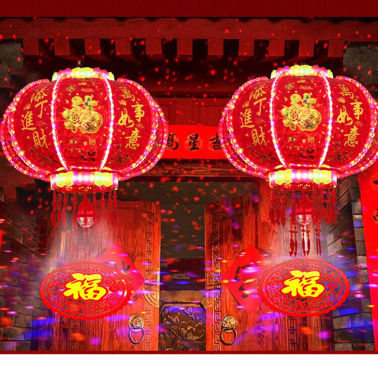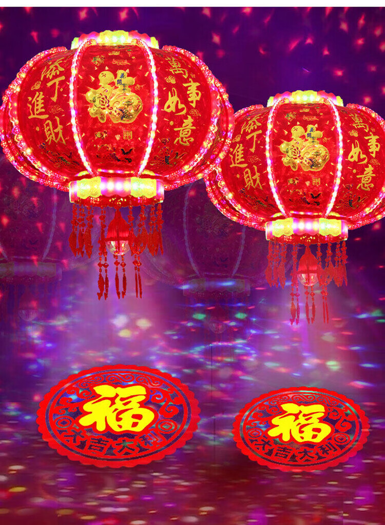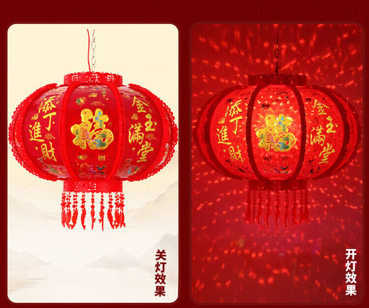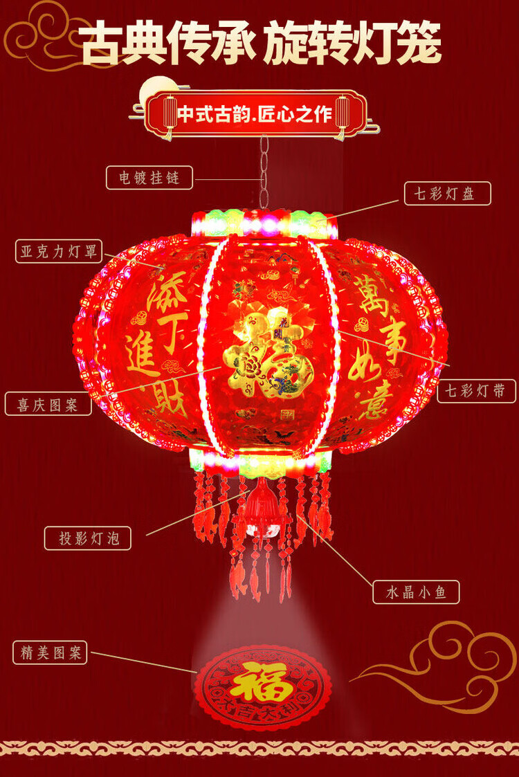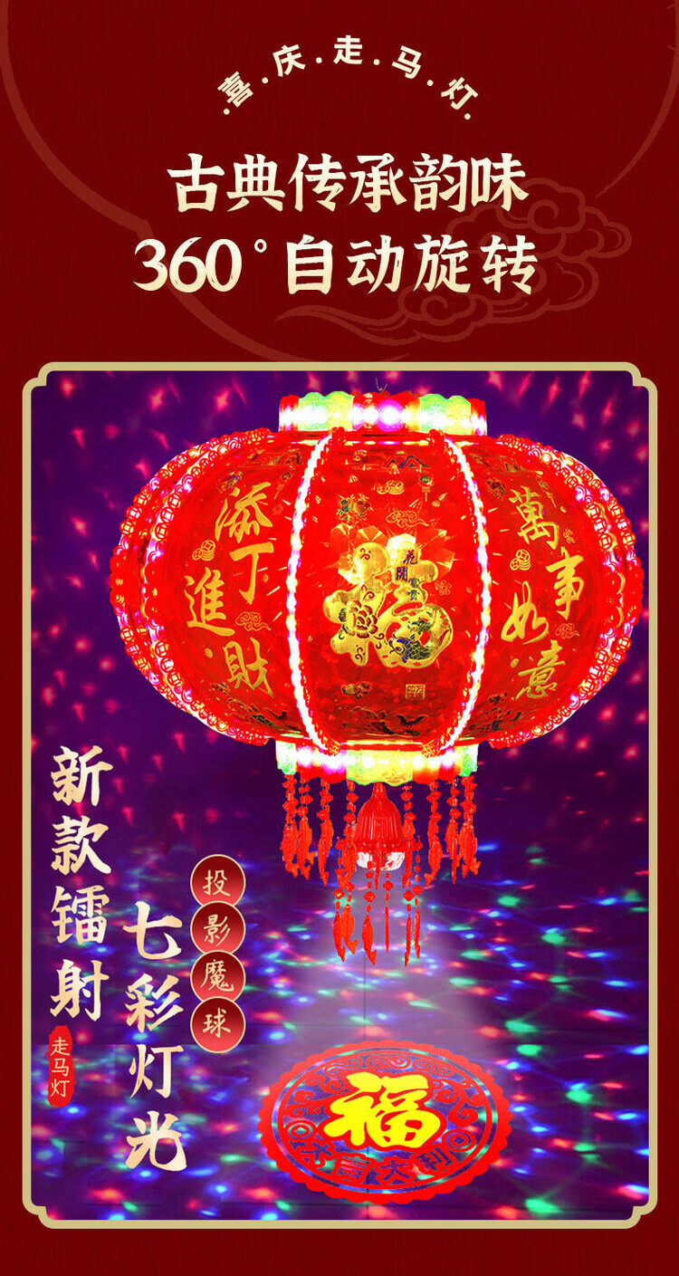 Xu Shansi 2026 New Rotating Lanterns at the Gate Pair of Balconies Spring Festival Decoration New Year Colorful Blessing LED Revolving Lanterns Blessing Projection 40 Gilt Money Gathering Model Diameter 37cm (Suitable for Small Balcony Whole Row Hanging) Buy One Get One Free