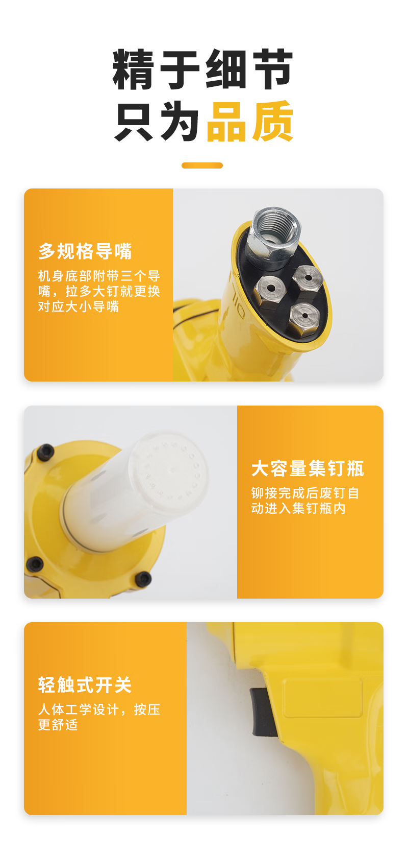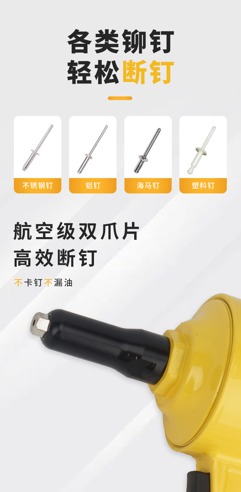Wing Fantasy Pneumatic Riveting Rivet Gun Aluminum Alloy Aluminum Nail Core Blind Rivet Gun Self-priming Rivet Clamp Gun Rivet Machine Double Cylinder Powerful Model + Standard Package