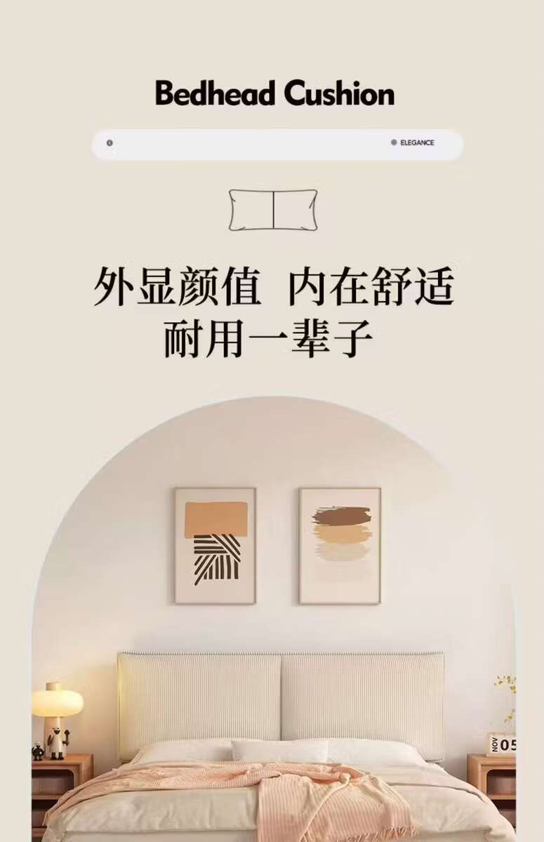 Yusenyi corduroy bedside cushion tatami soft bag large backrest bedroom bedside self-adhesive thickening anti-collision customizable removable and washable lazy wick + goose warm white (with bedside cover) pillowcase 120 width x 60 height x 6cm thick