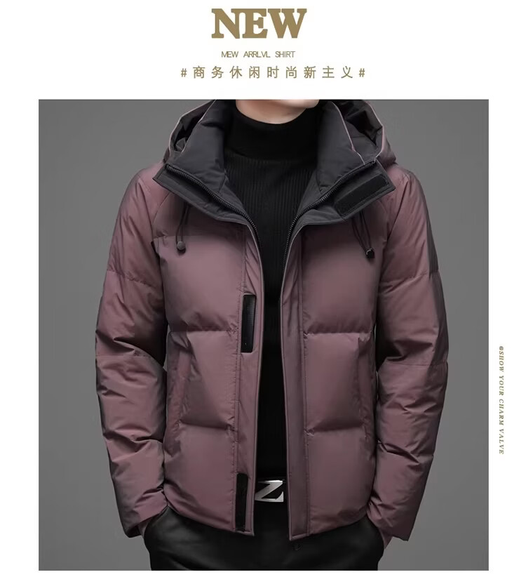ROMON Autumn and Winter 2026 New Men's Down Jacket Hooded Thickened Warm Short White Duck Down Men's Jacket Trendy Red L 175/92A Recommended 120-140Jin Jin equals 0.5 kg