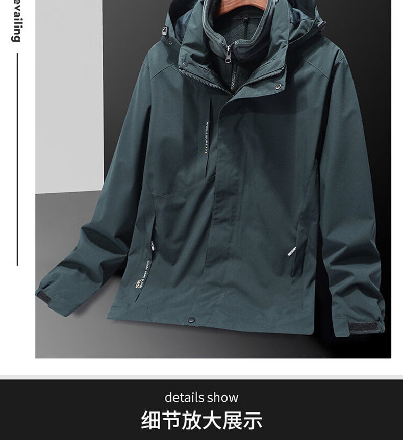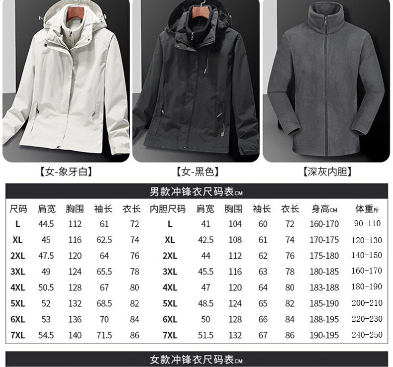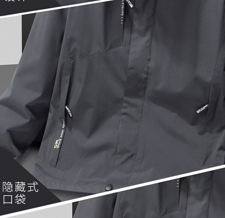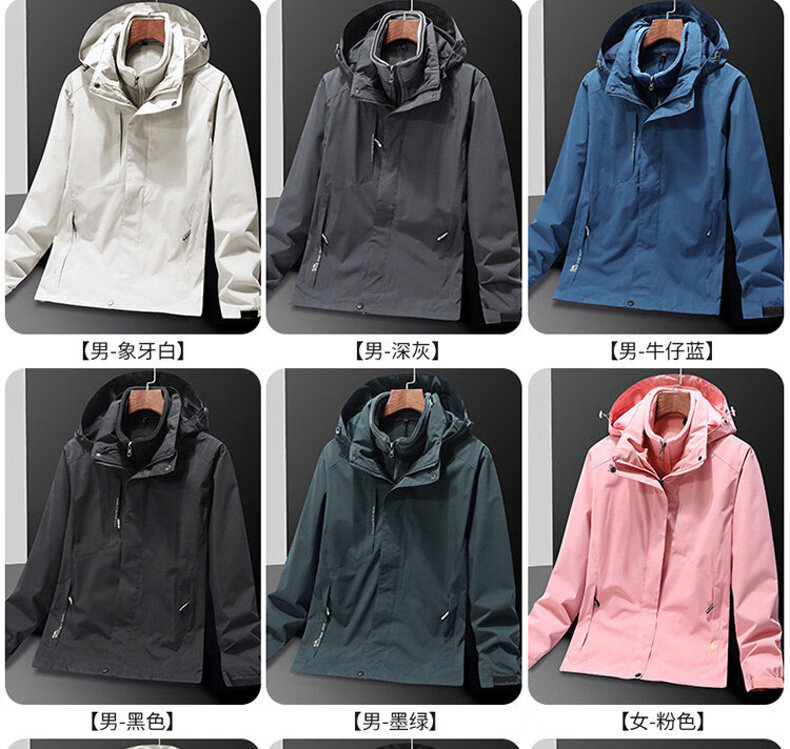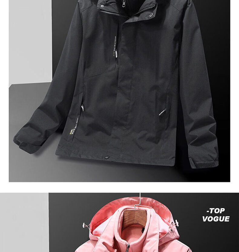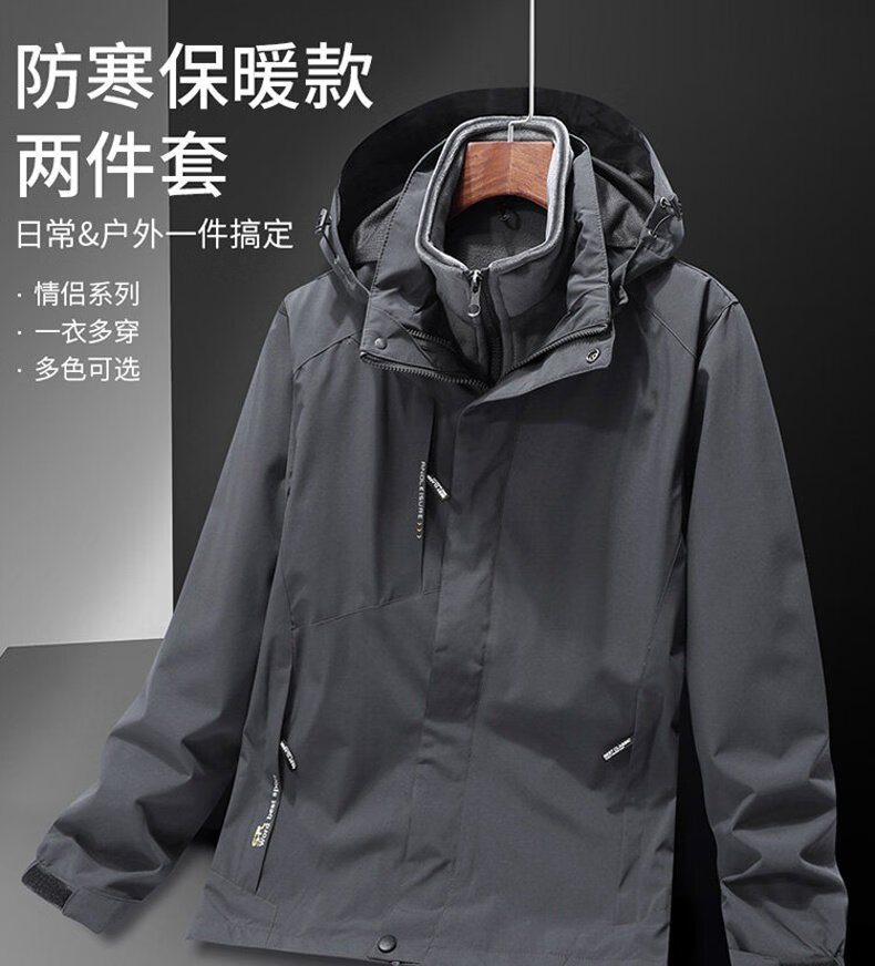 ROMON Jacket Spring and Autumn Mountaineering Jacket Men's and Women's Outdoor Workwear Three-in-One Detachable Work Clothes Women-Black A20 Women-Two-piece Set L