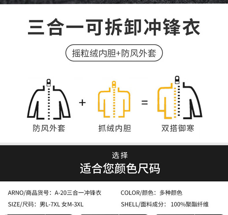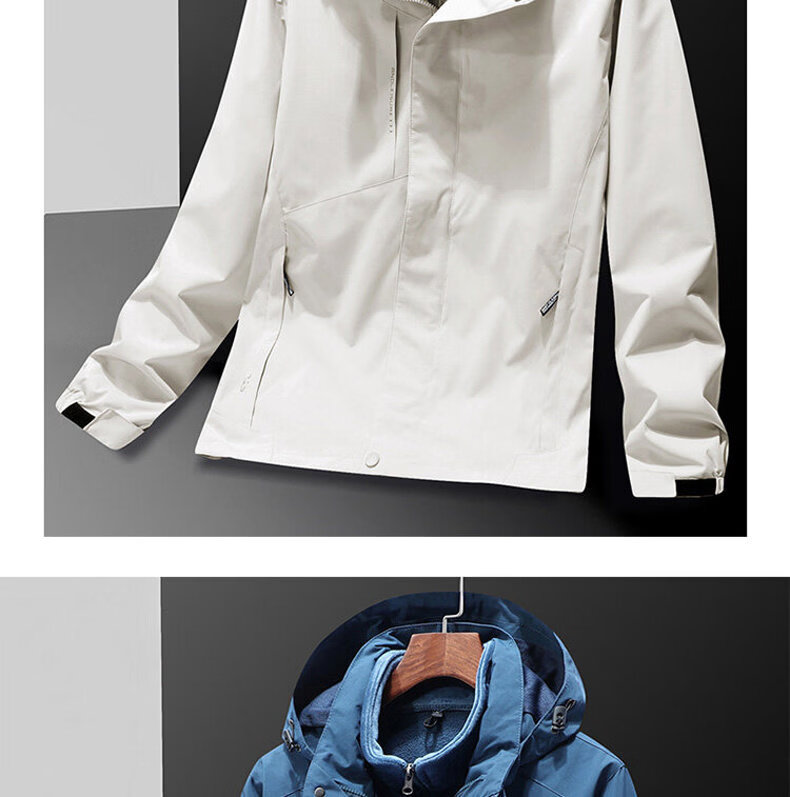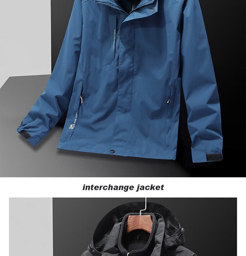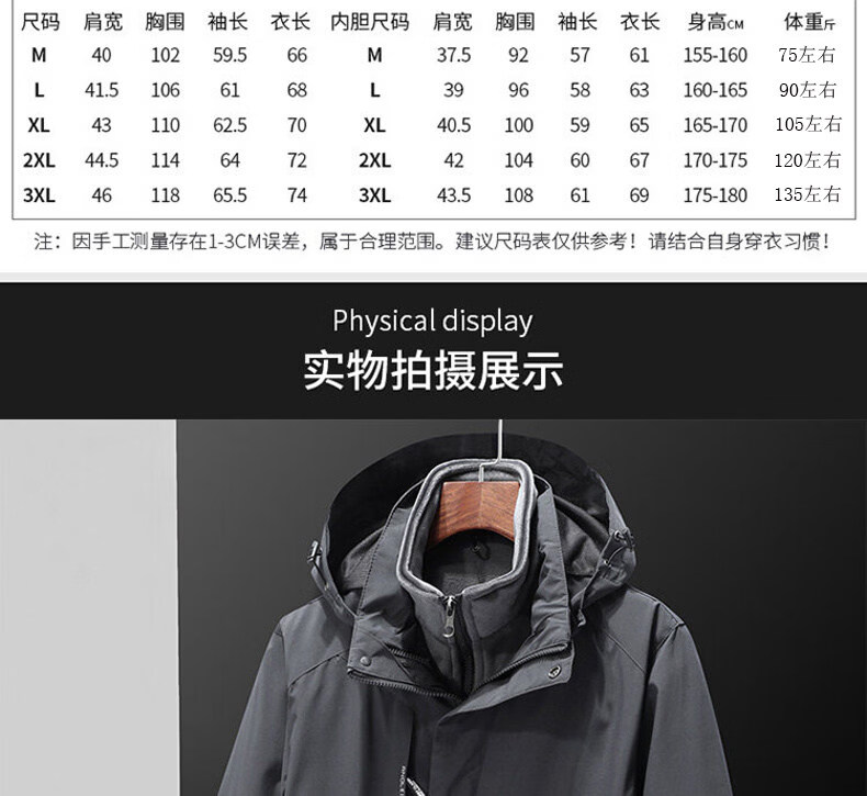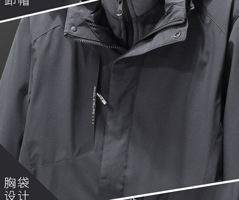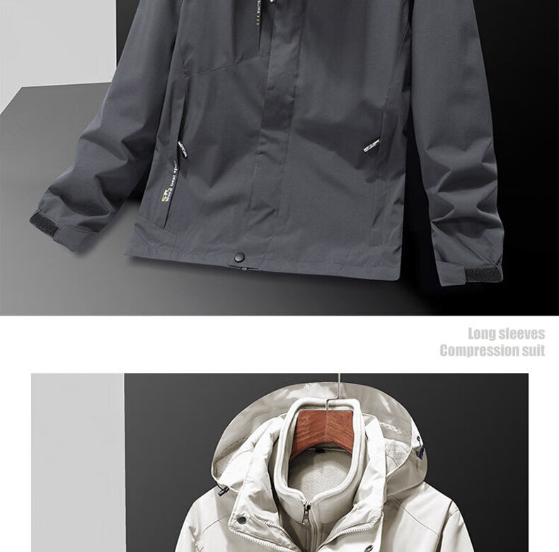ROMON Jacket Spring and Autumn Mountaineering Jacket Men's and Women's Outdoor Workwear Three-in-One Detachable Work Clothes Women-Black A20 Women-Two-piece Set L