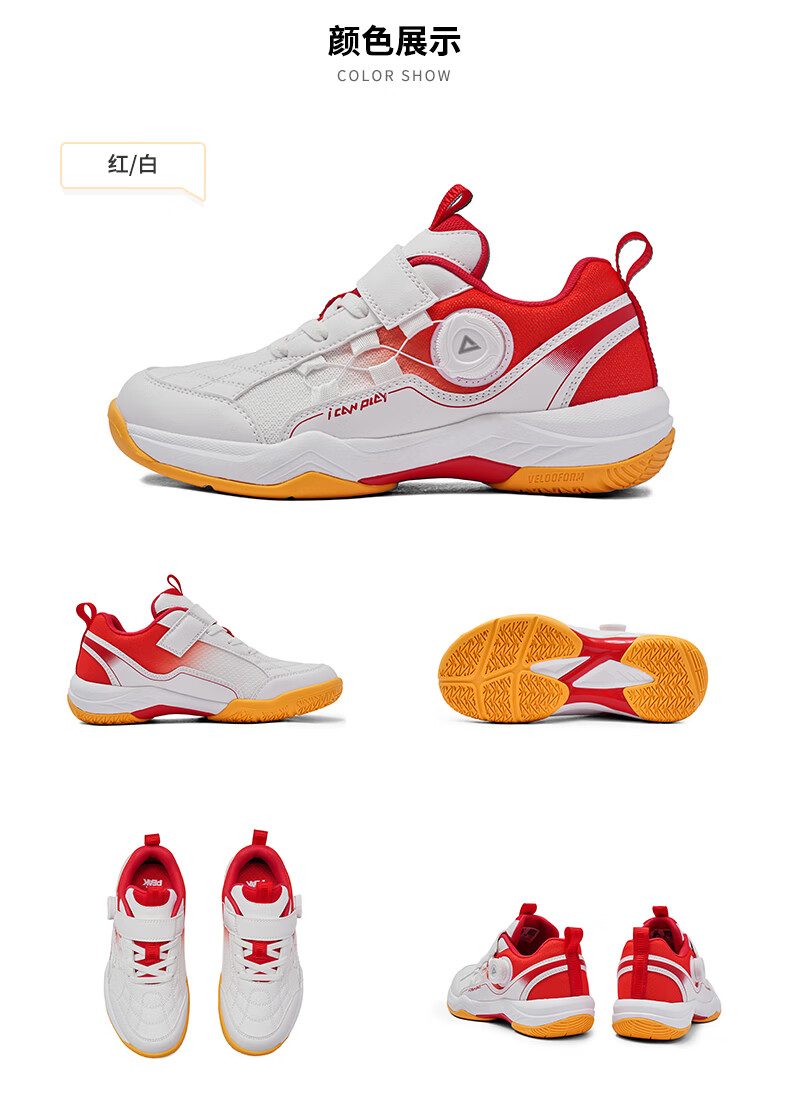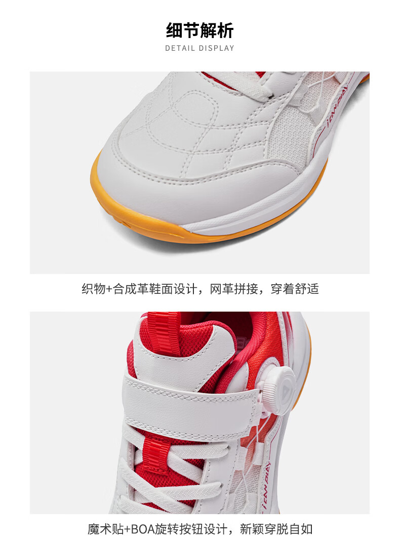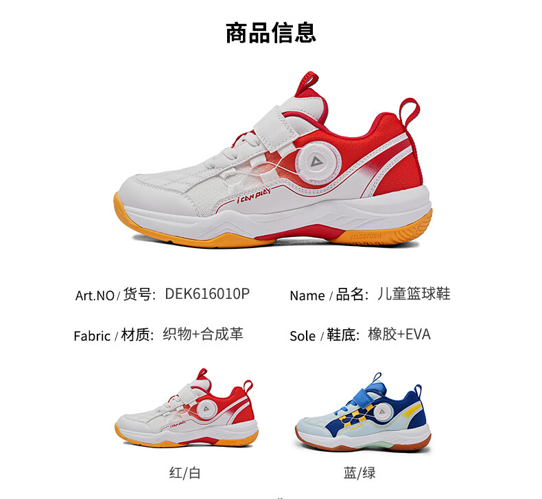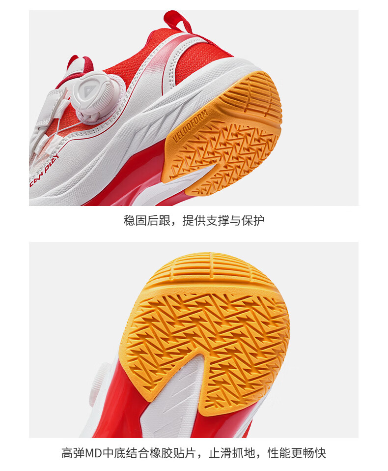 Peak children's basketball shoes, campus sports shoes, breathable mesh splicing practical training shoes, wear-resistant knob buckle youth shoes, red and white 33, inner length 22cm