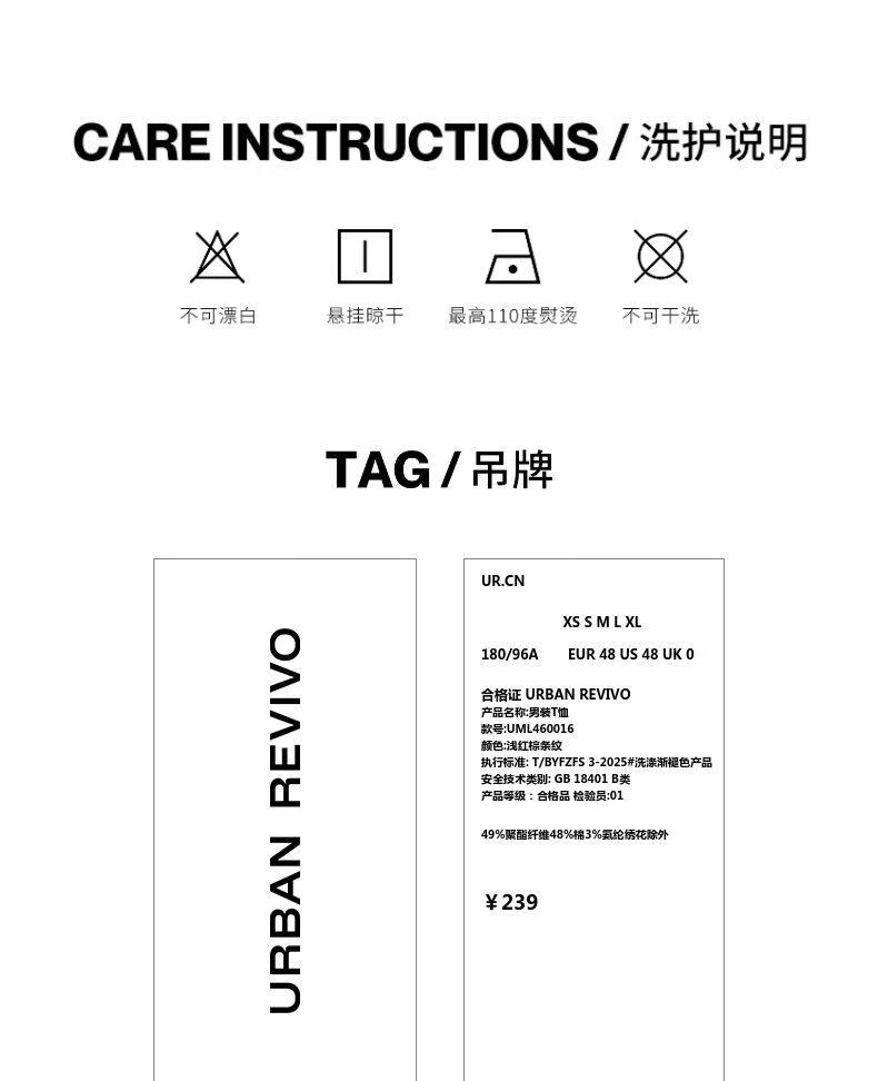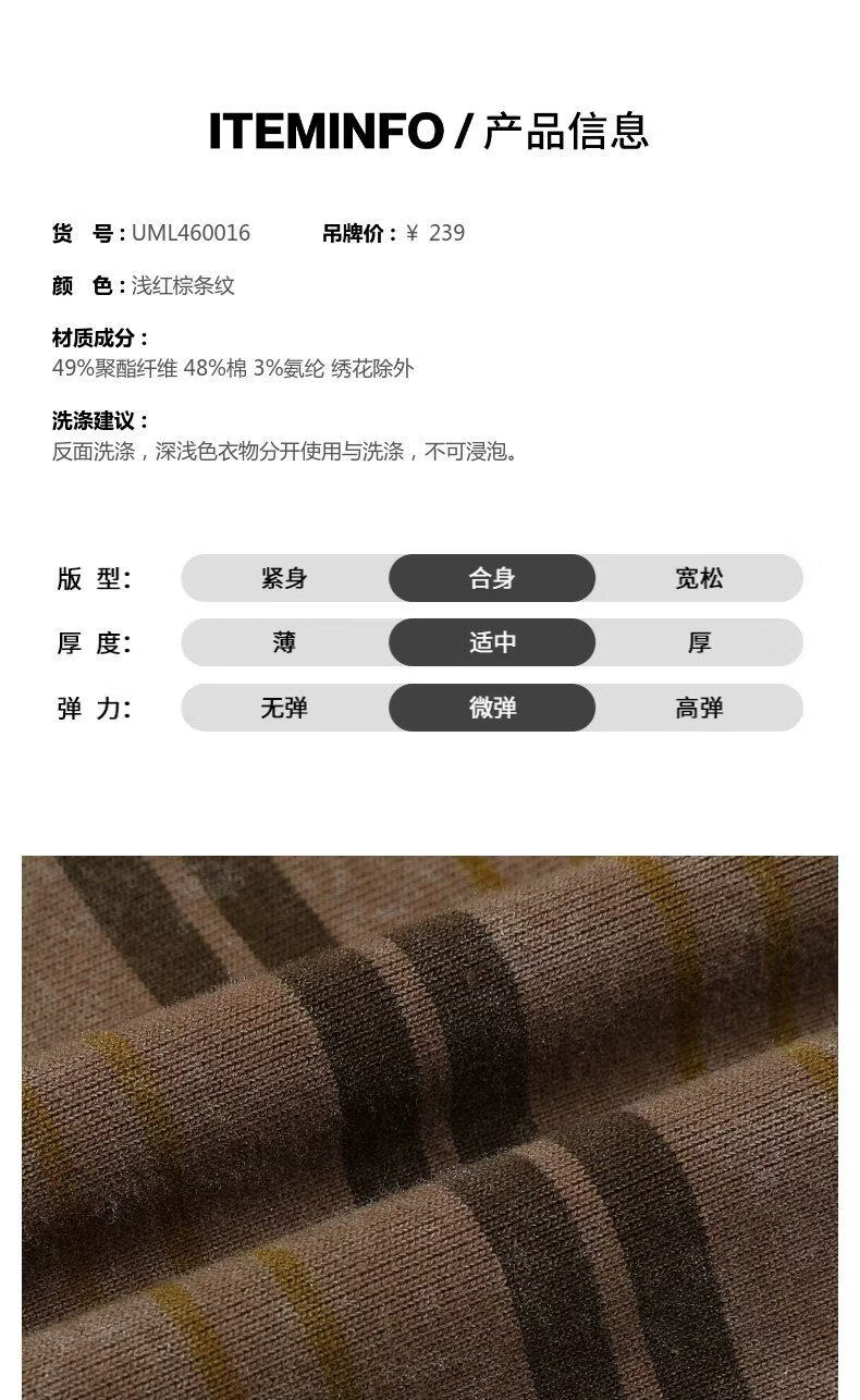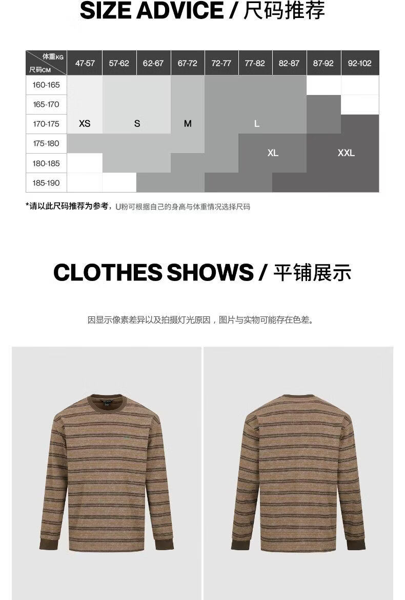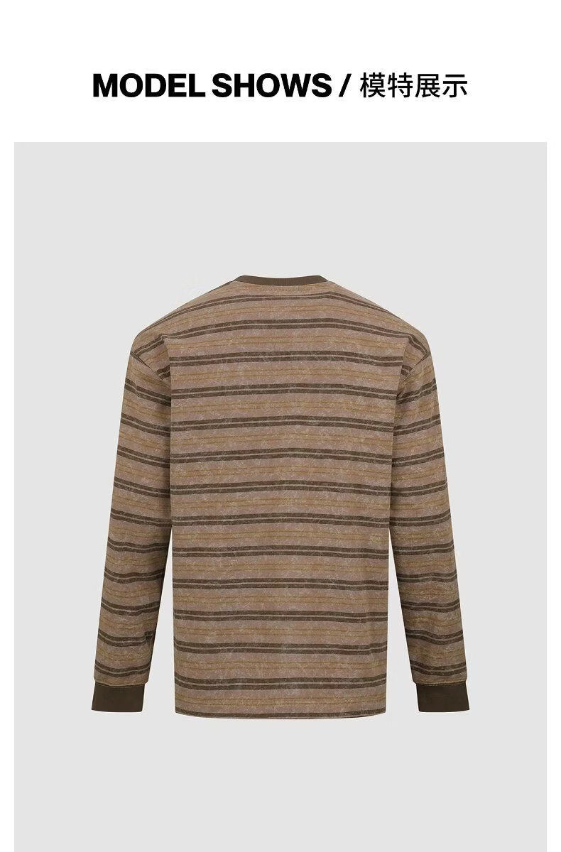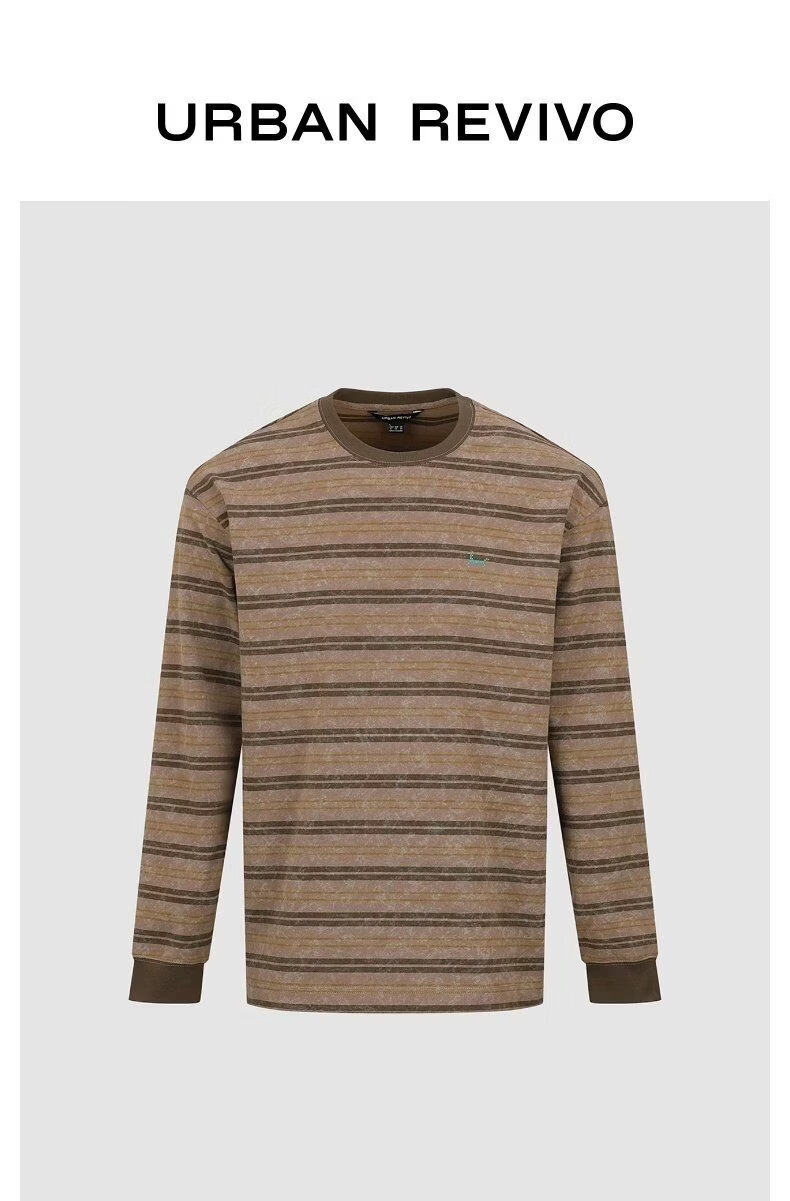 UR2026 Spring New Men's Casual Retro Contrast Color Striped Round Neck Long Sleeve T-Shirt UML460016 Light Red Brown Stripe S