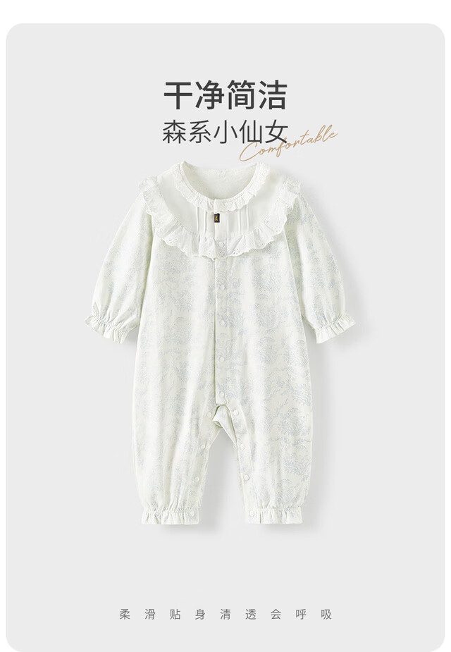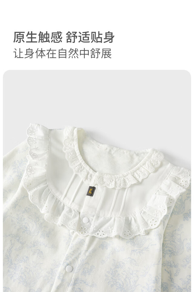 TONGTAI baby jumpsuit, spring and autumn pure cotton baby girl clothes, girls going out, lace sleeves, children's romper, blue 73cm