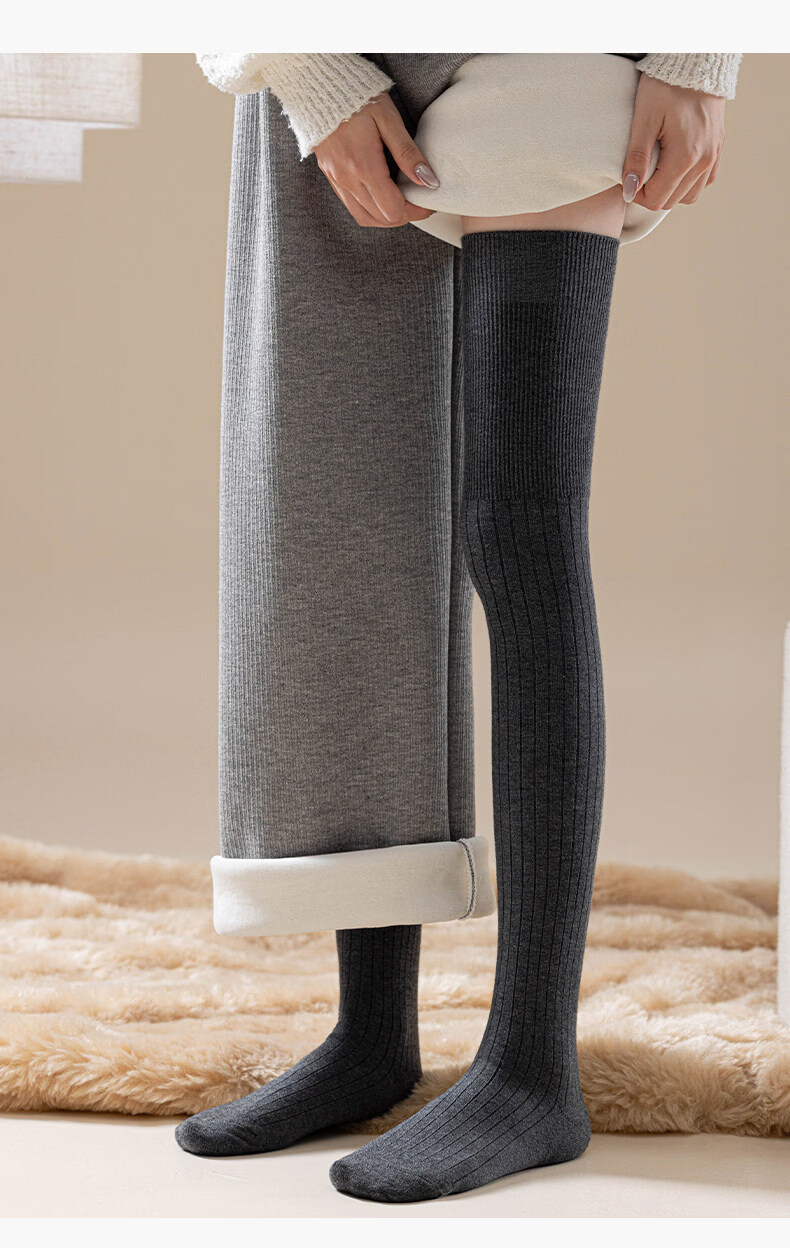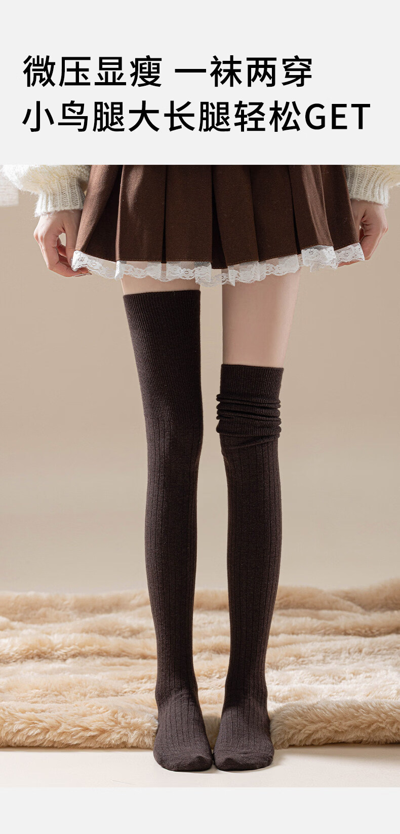 Enlightenment Premium Extra Long Over-the-Knee Socks Women's Anti-Slip Autumn and Winter Thickened Velvet Containing Sheep Bean Heat Keeping Knee Guard Long Thigh Socks Coffee + Black Average Size 35-40 Codes_Add to Favorite and Buy to Get Free Shipping Insurance