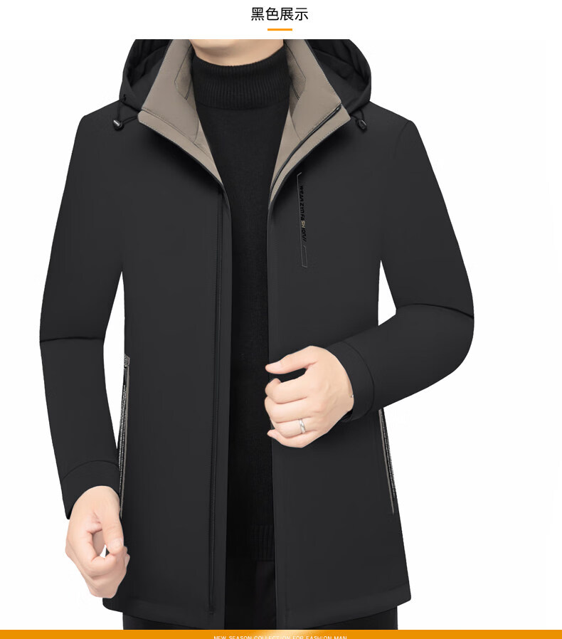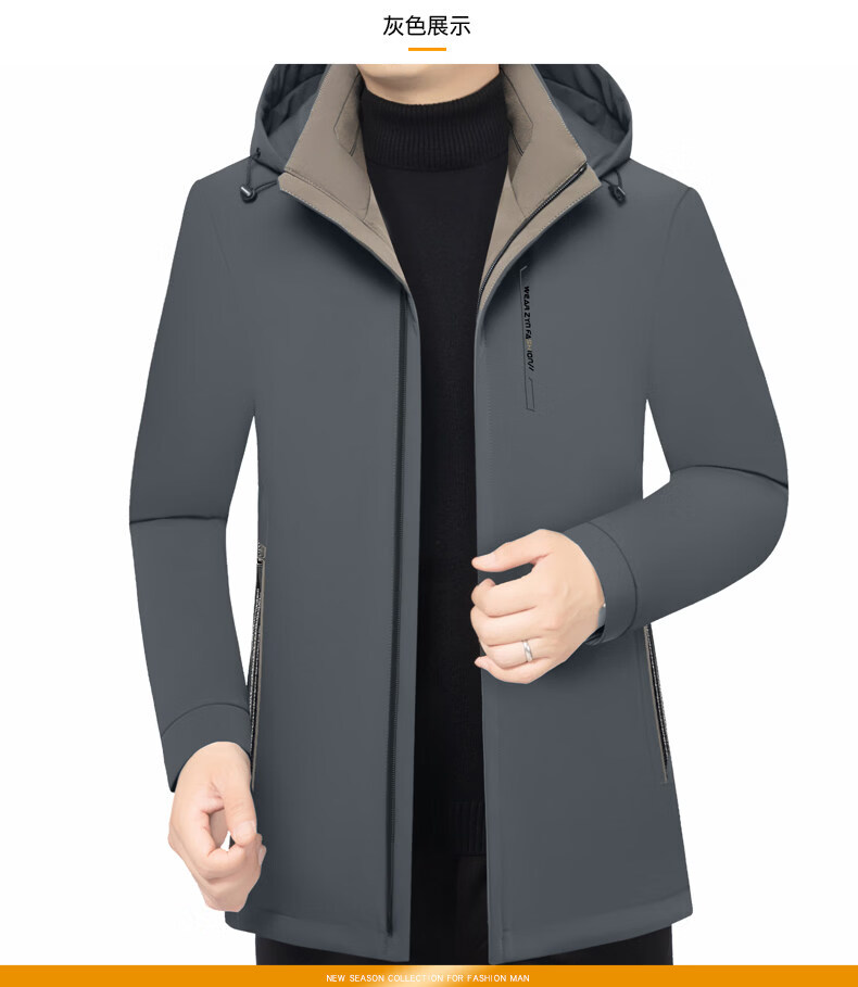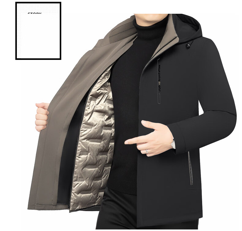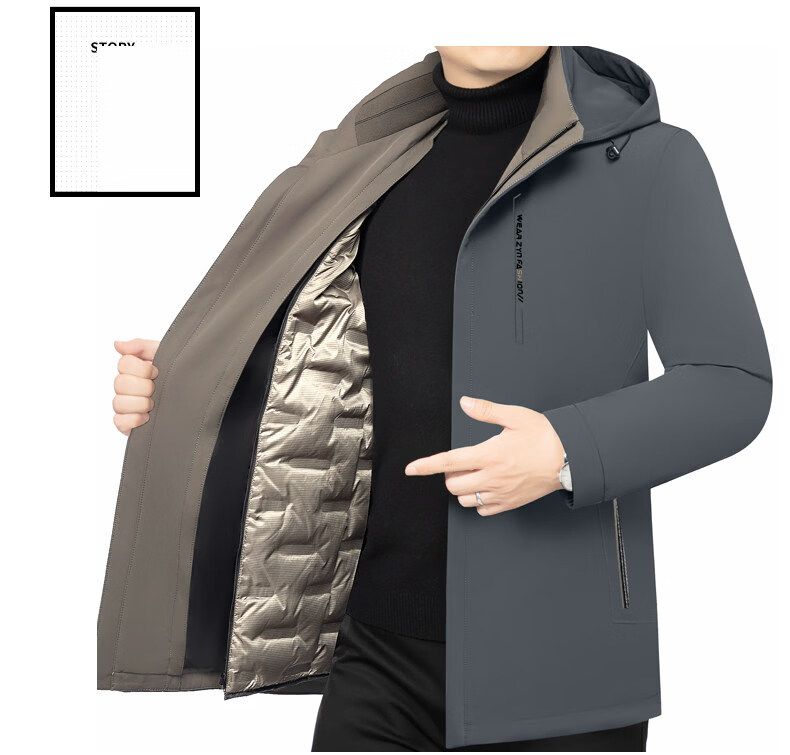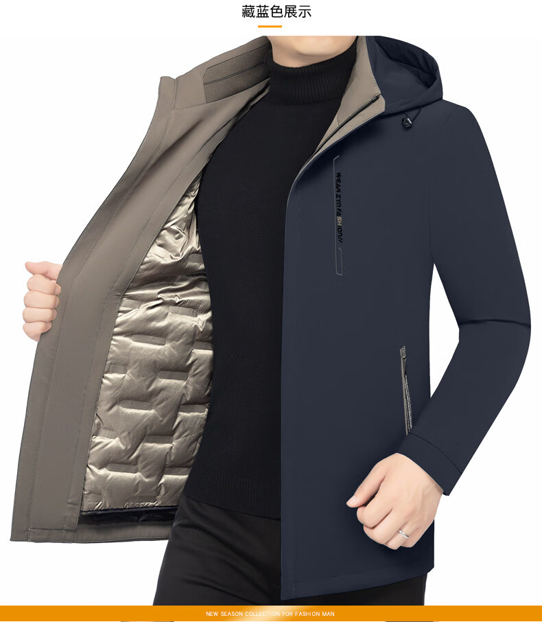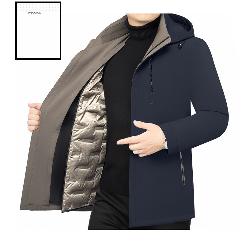 ROMON Business Hooded Down Jacket Men's 2026 New Lightweight Warm Removable Liner Thickened Jacket Navy Blue Removable Liner M 170 90-120Jin Jin is equal to 0.5 kg