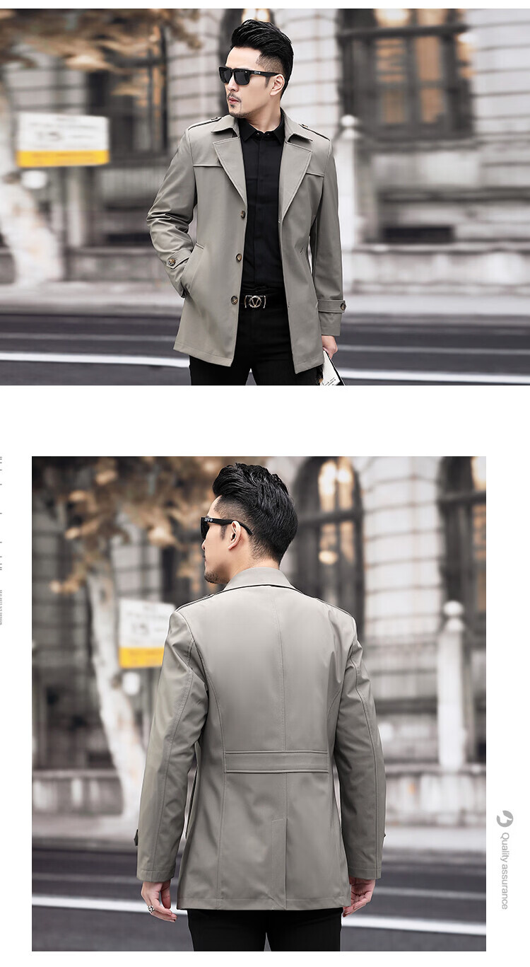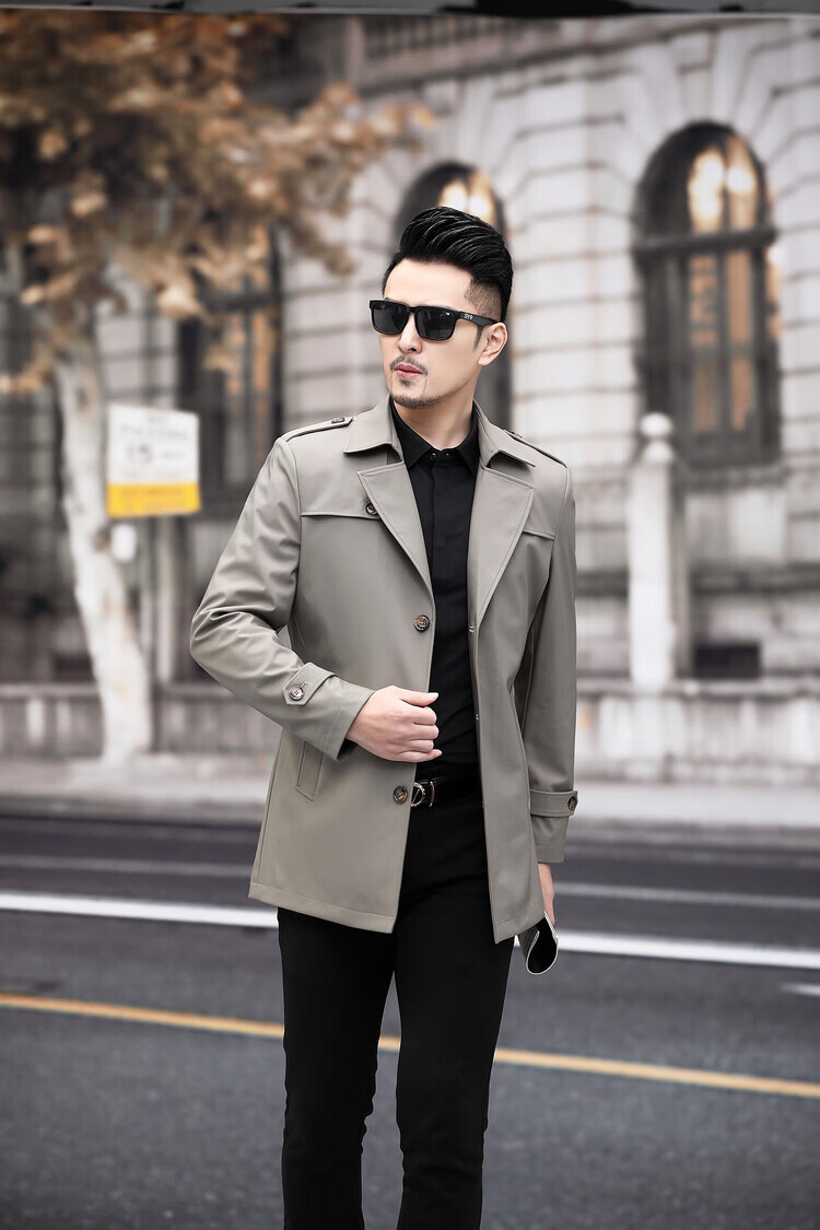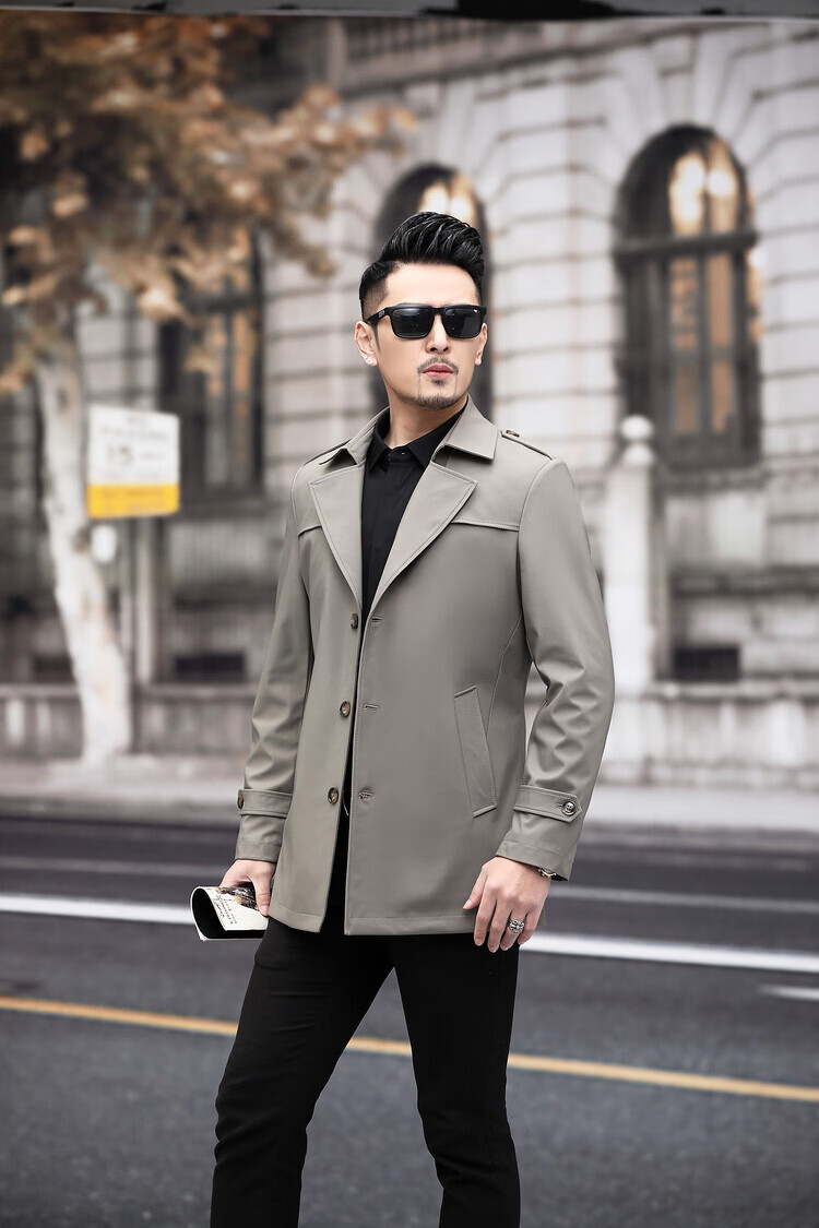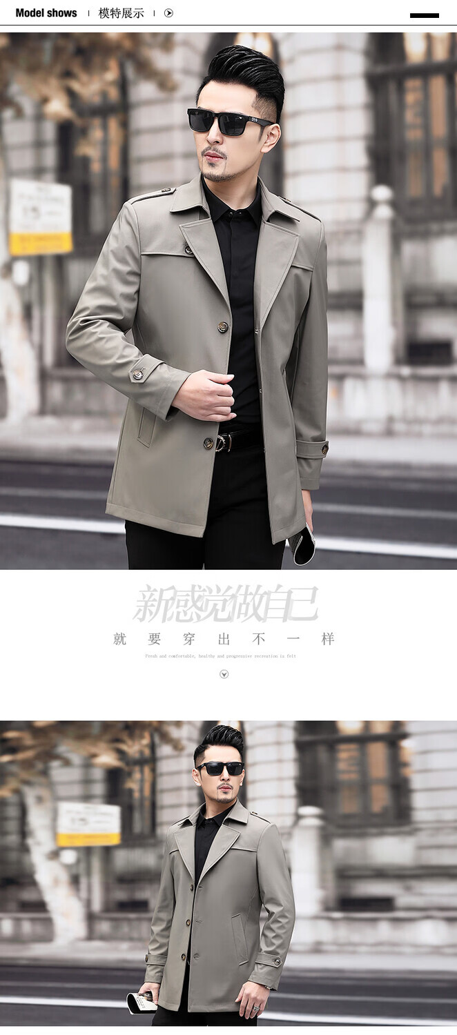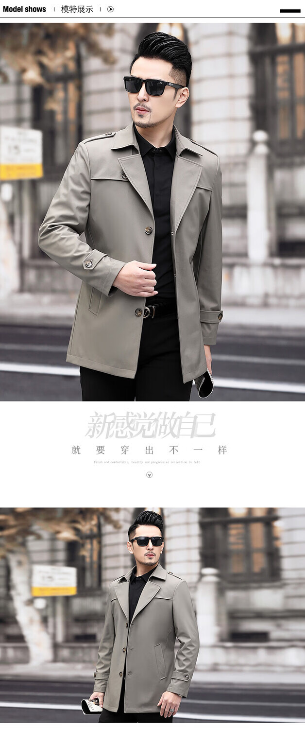 JEEP SPIRIT男士风衣2026新款春秋中长款外套男装夹克薄款上衣商务休闲爸爸装 卡其色 M 170