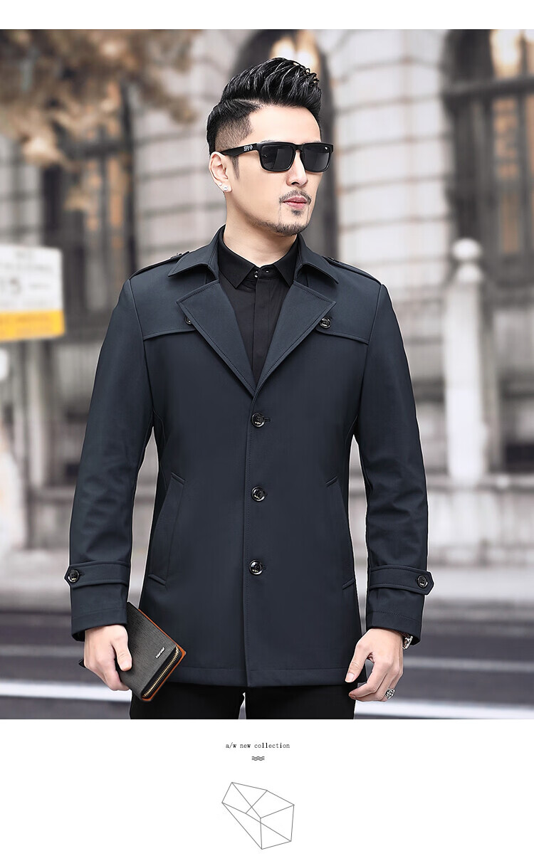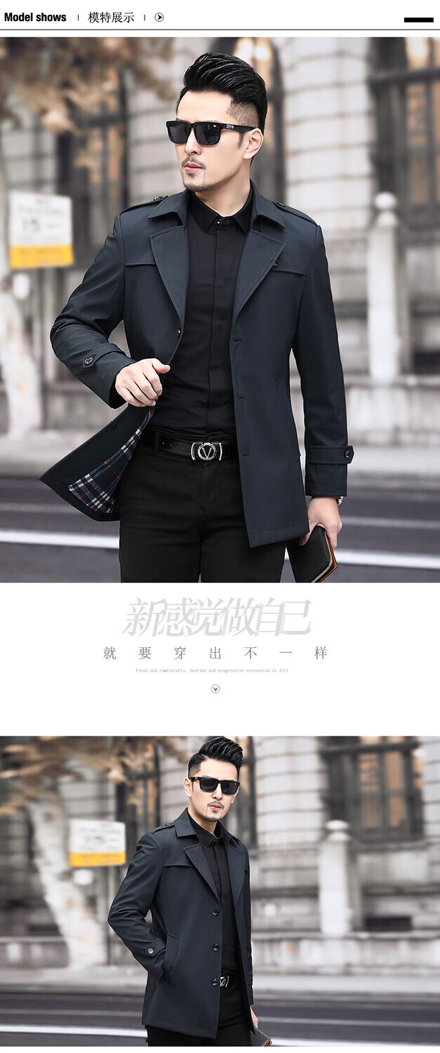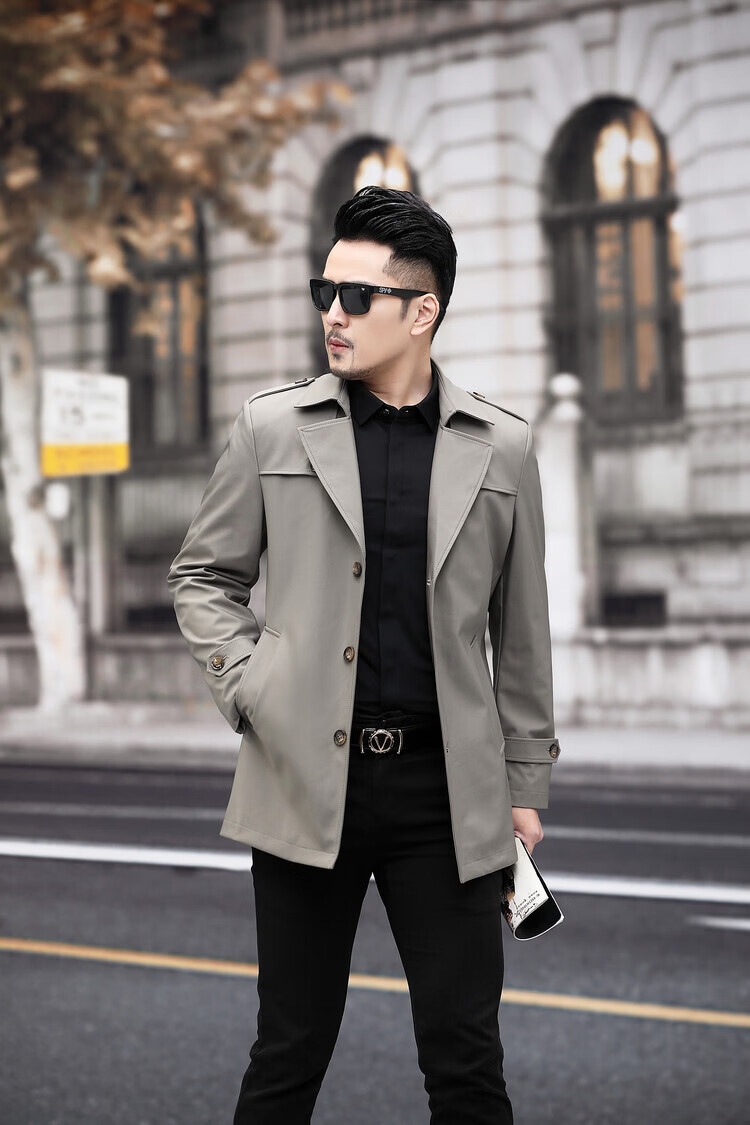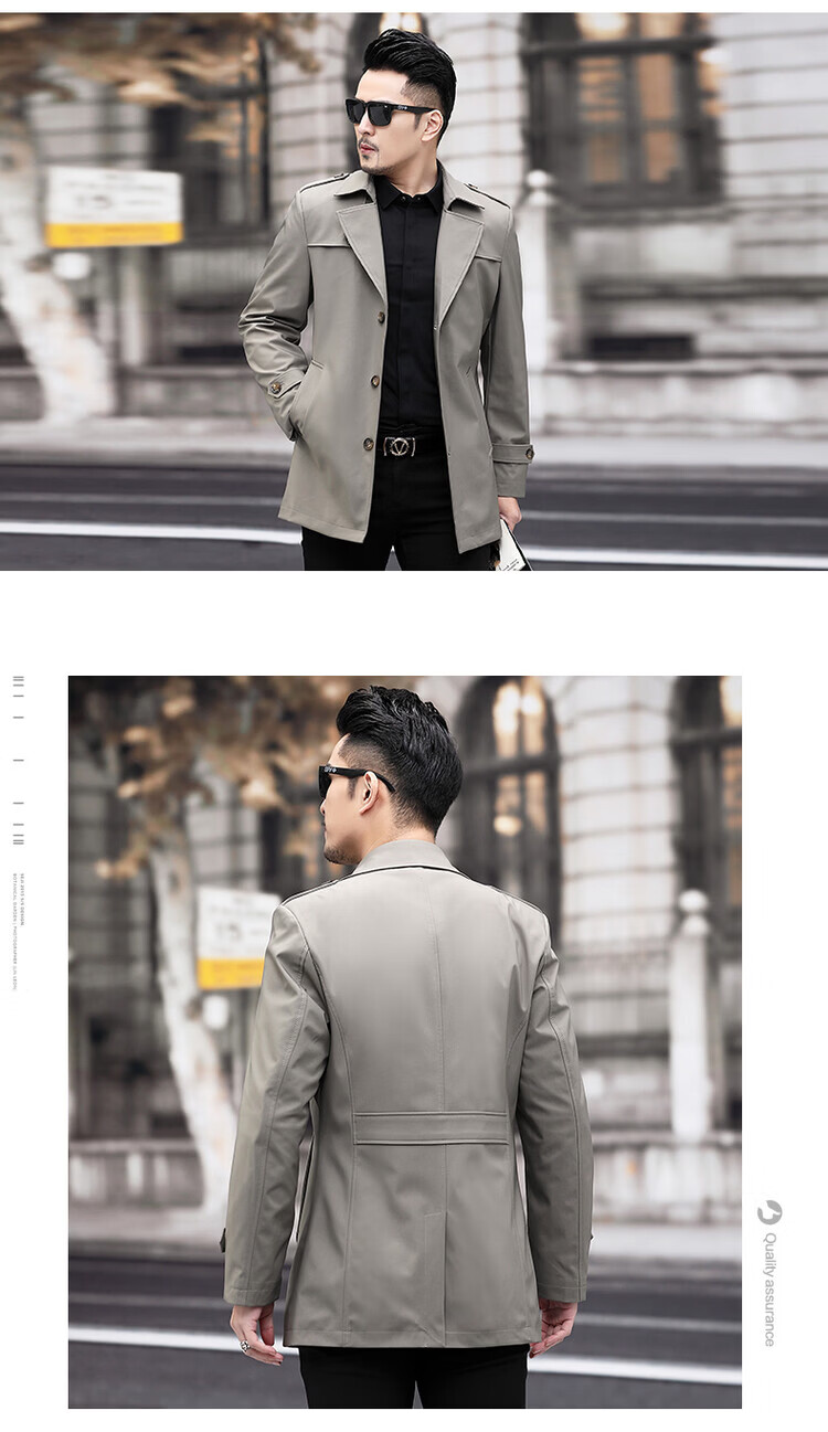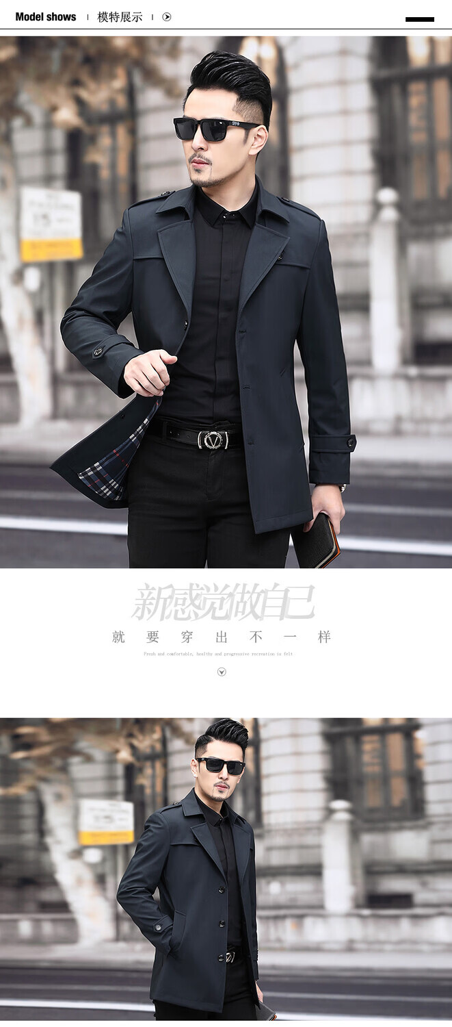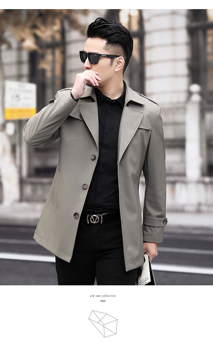 JEEP SPIRIT男士风衣2026新款春秋中长款外套男装夹克薄款上衣商务休闲爸爸装 卡其色 M 170