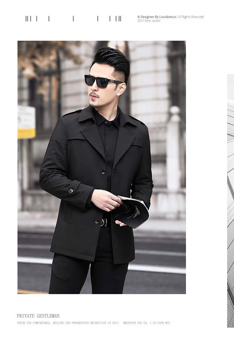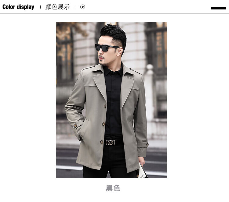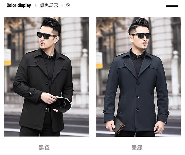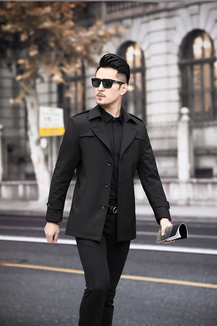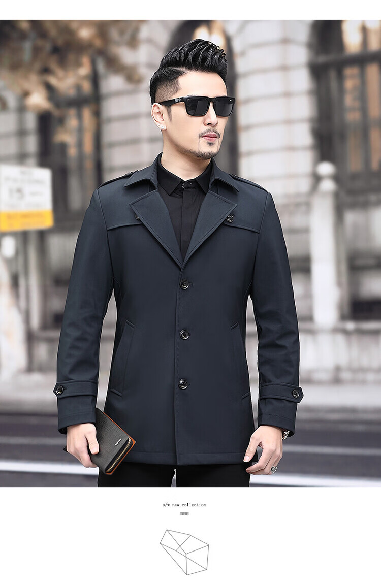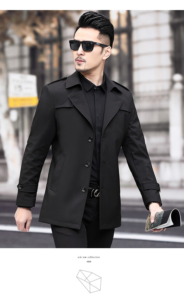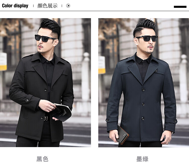 JEEP SPIRIT男士风衣2026新款春秋中长款外套男装夹克薄款上衣商务休闲爸爸装 卡其色 M 170
