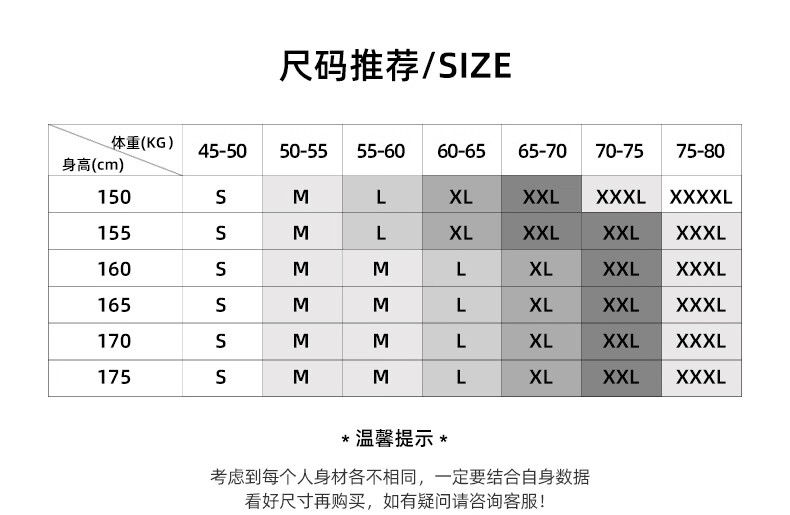 China (cm) 160-165/84-86 165-170 / 88-90 167-172 / 92-96 168-173 / 98-102 170-176 / 106-110