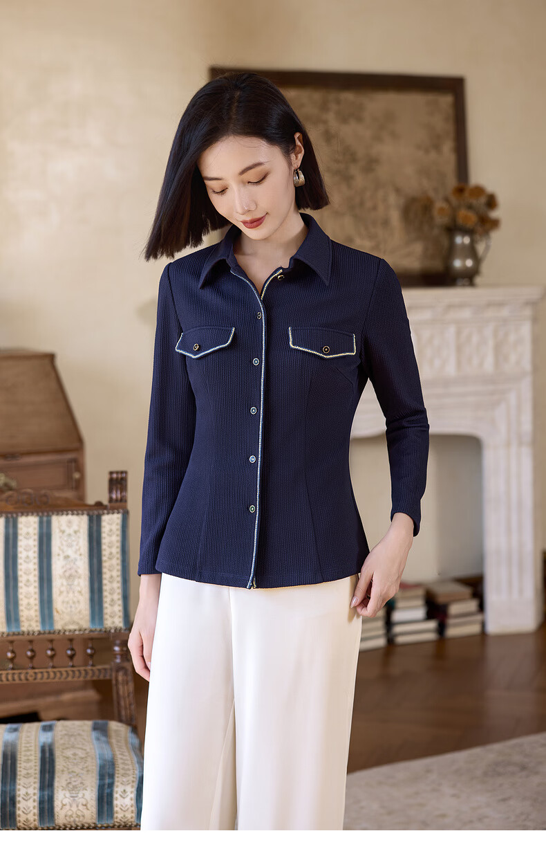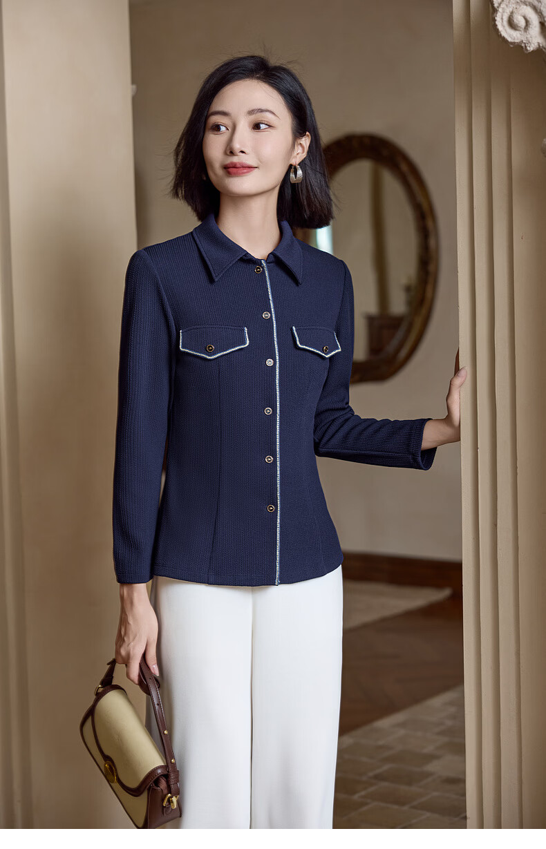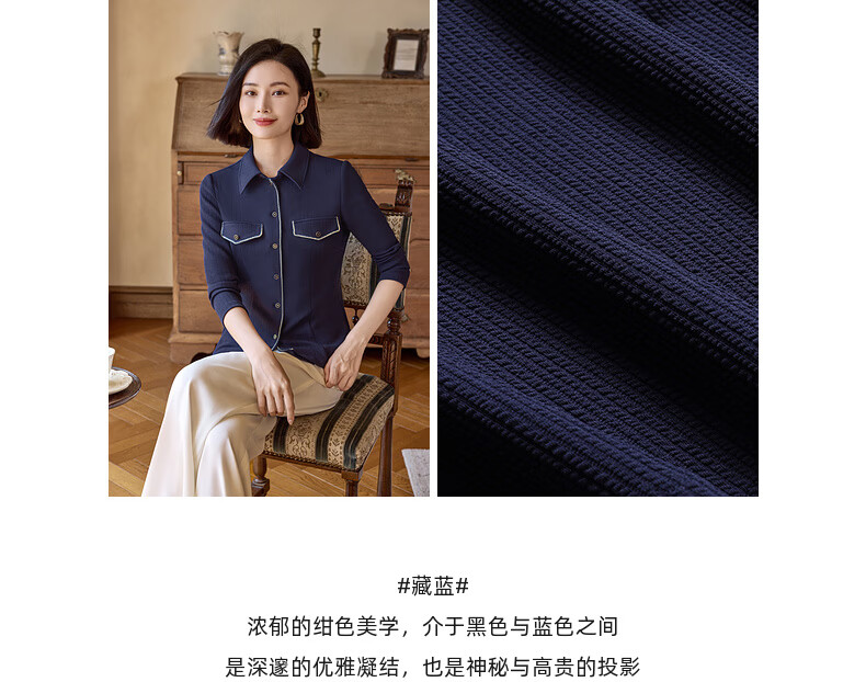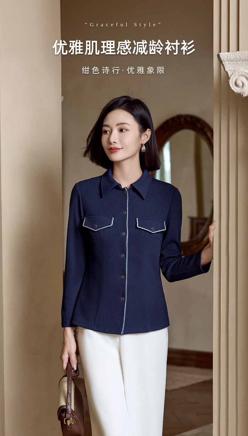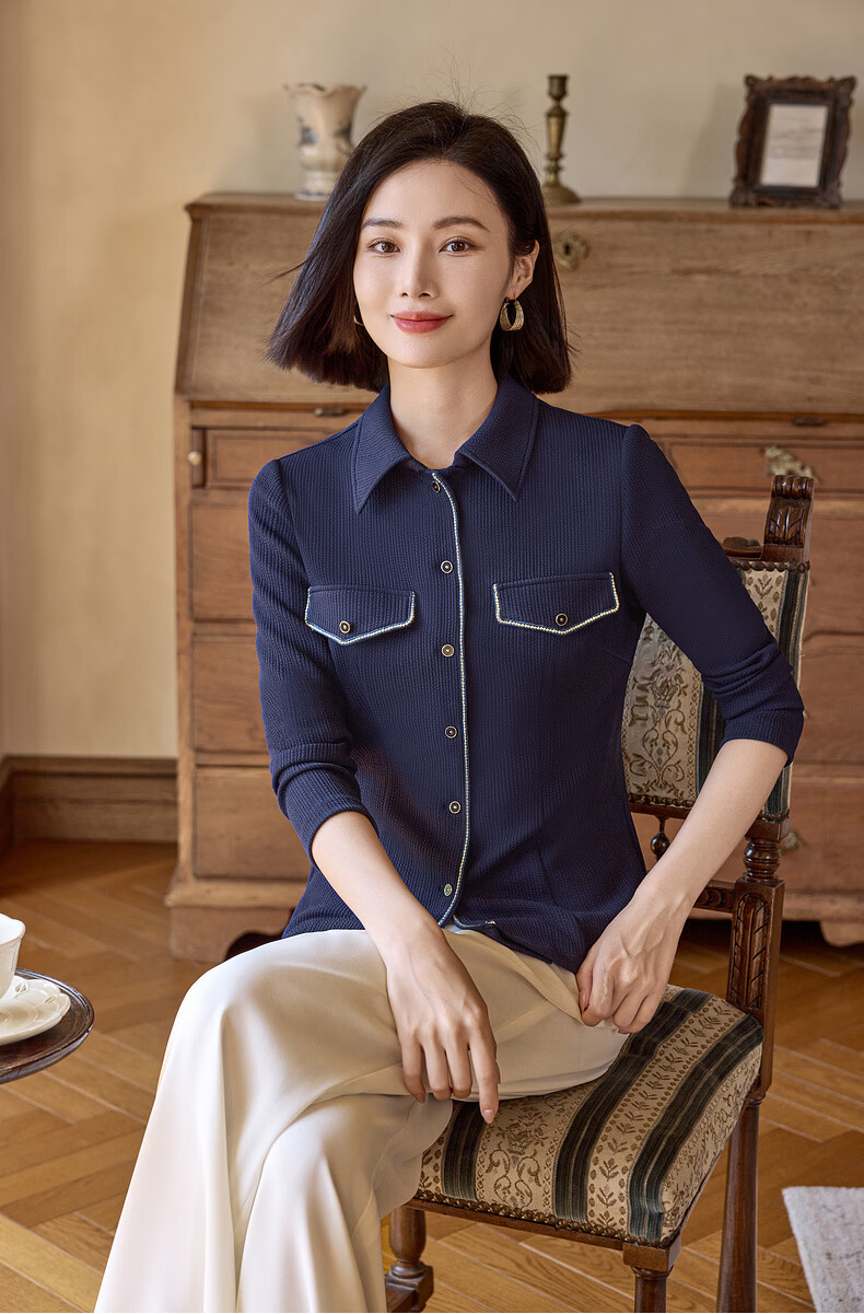 MORELINE Mulan French Elegant Textured Shirt Women's 2026 Spring New Retro Small Lapel Age-Reducing Whitening Shirt Navy M