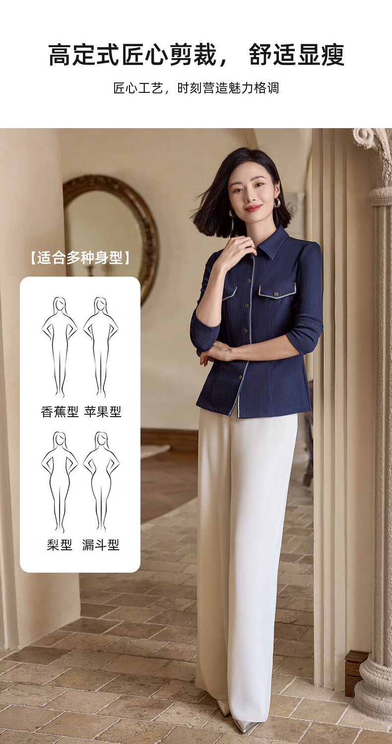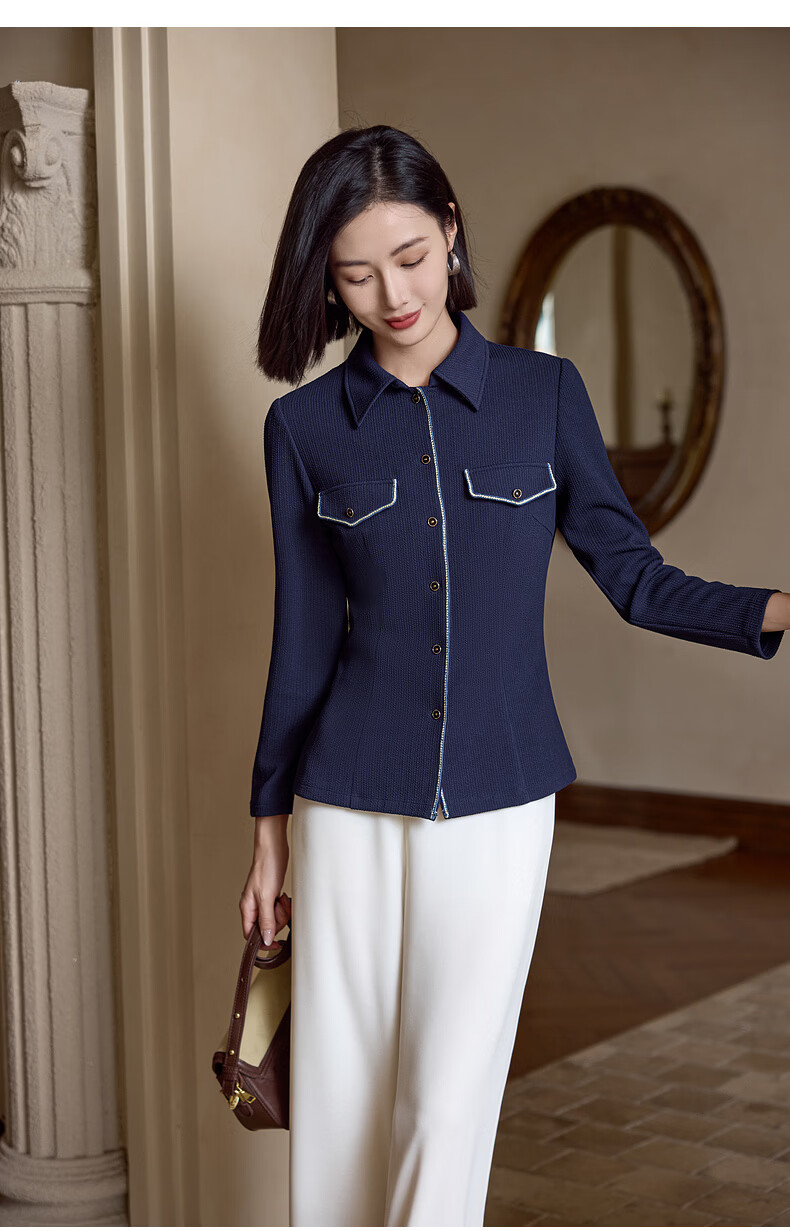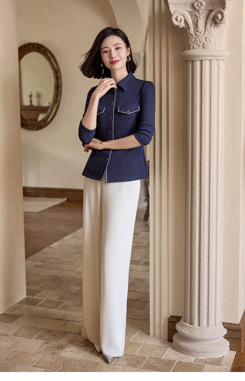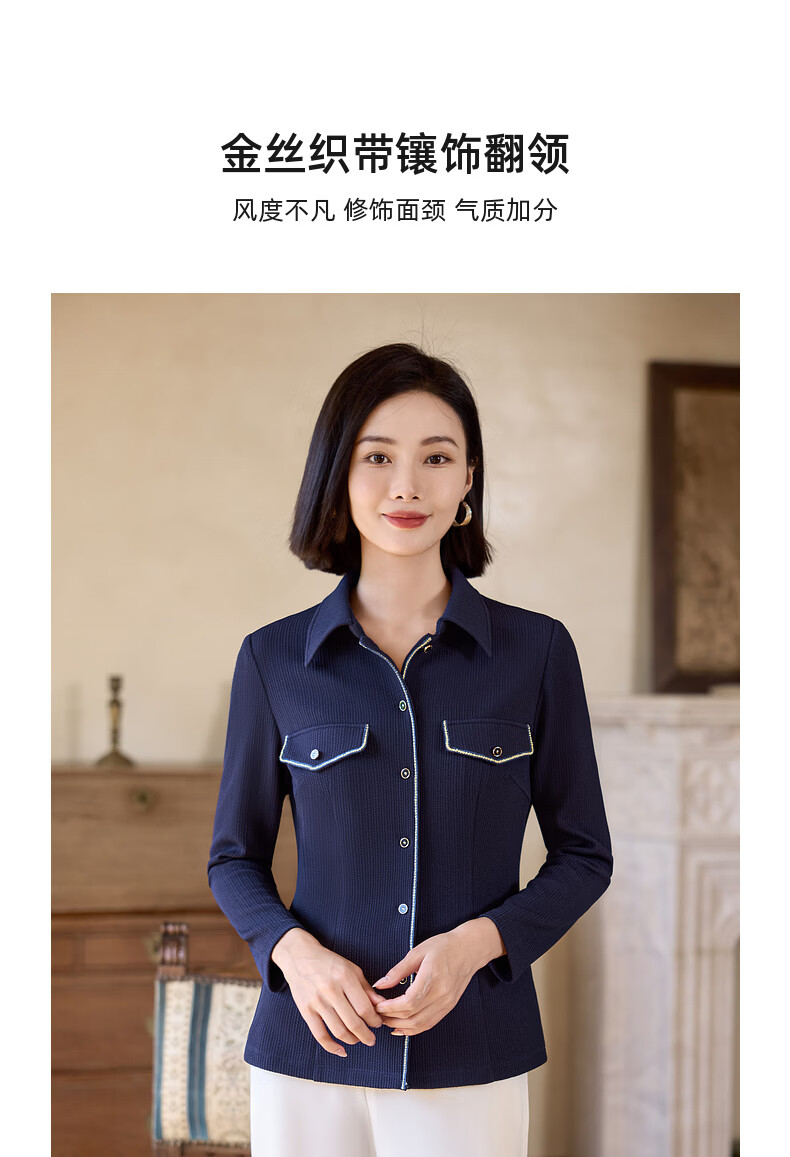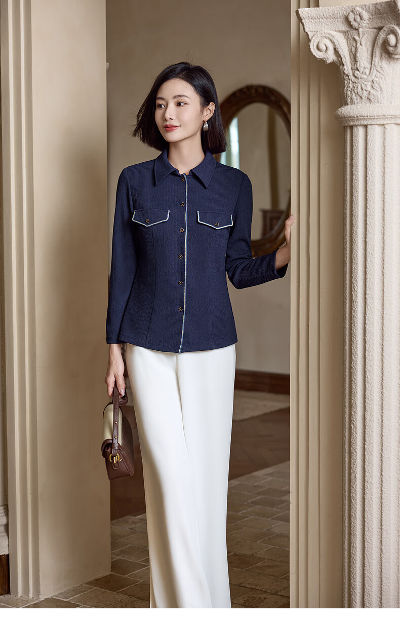 MORELINE Mulan French Elegant Textured Shirt Women's 2026 Spring New Retro Small Lapel Age-Reducing Whitening Shirt Navy M