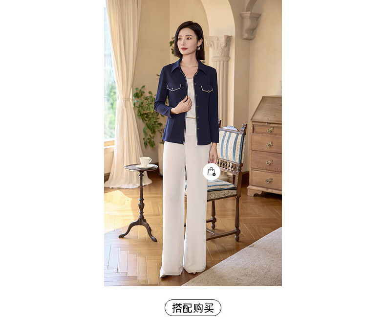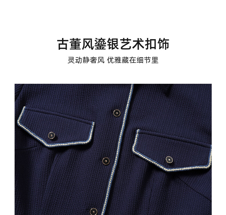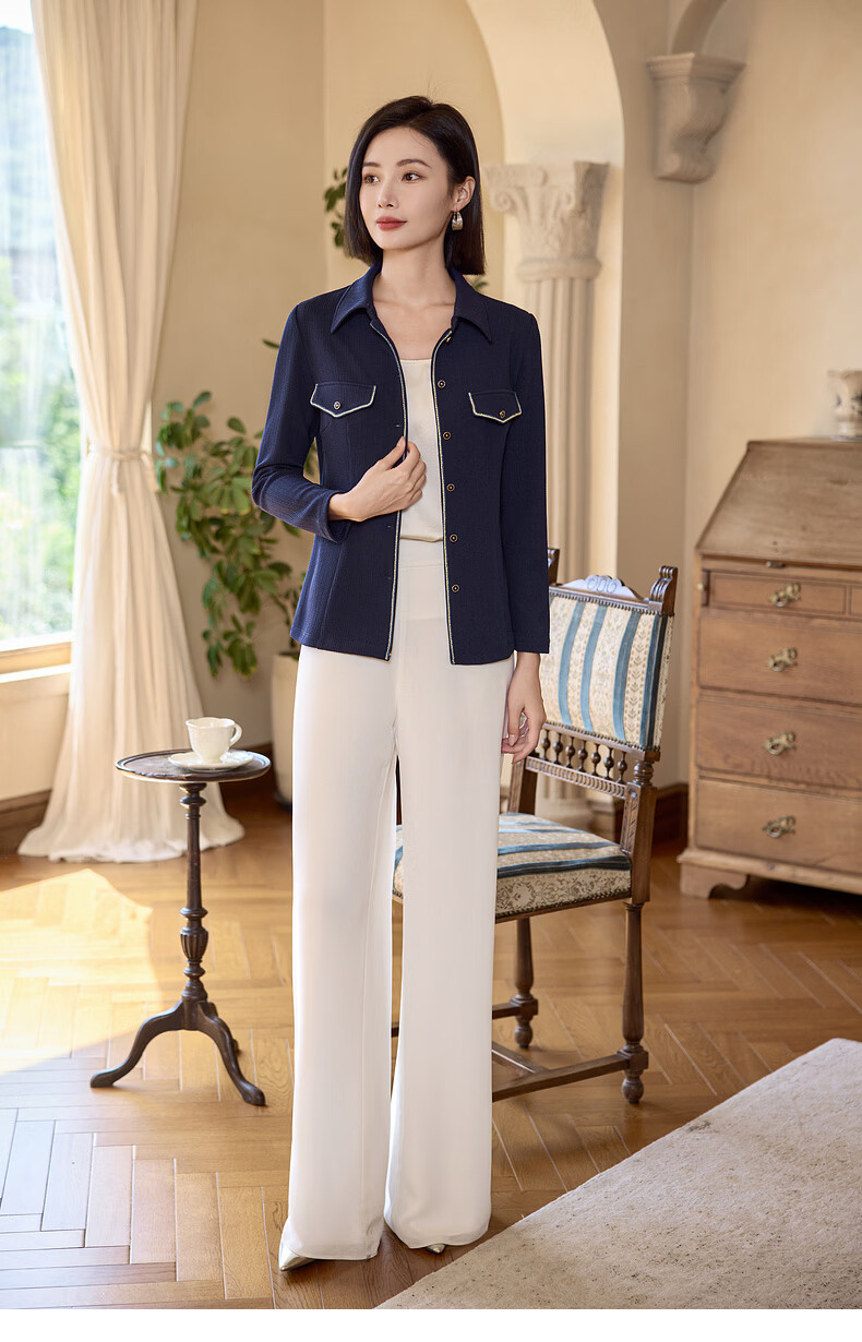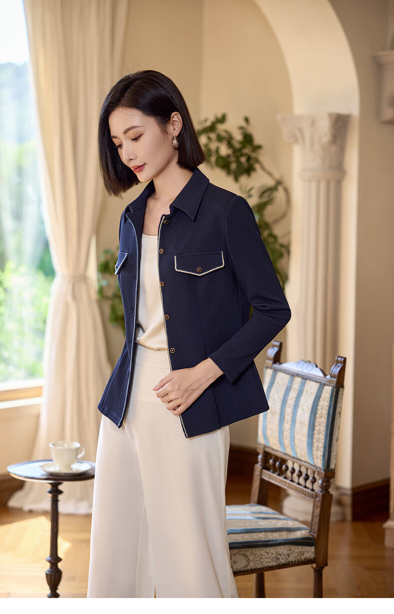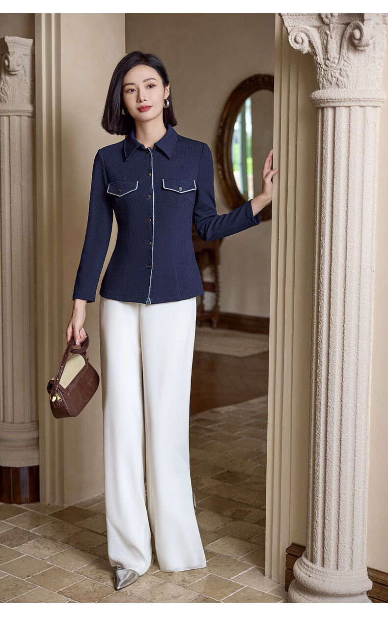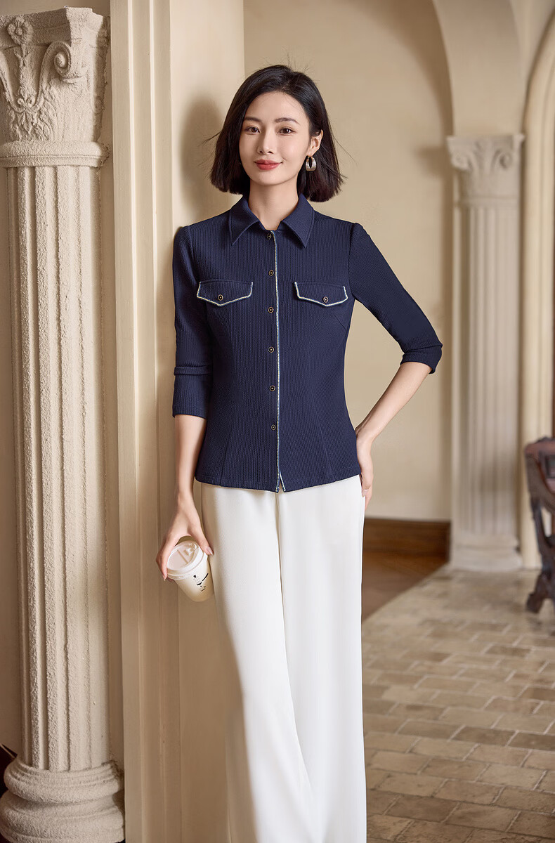 MORELINE Mulan French Elegant Textured Shirt Women's 2026 Spring New Retro Small Lapel Age-Reducing Whitening Shirt Navy M