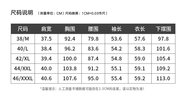 China (cm) 165 / 88-90 170 / 96-98 175 / 108-110 180 / 118-122 185 / 126-130
