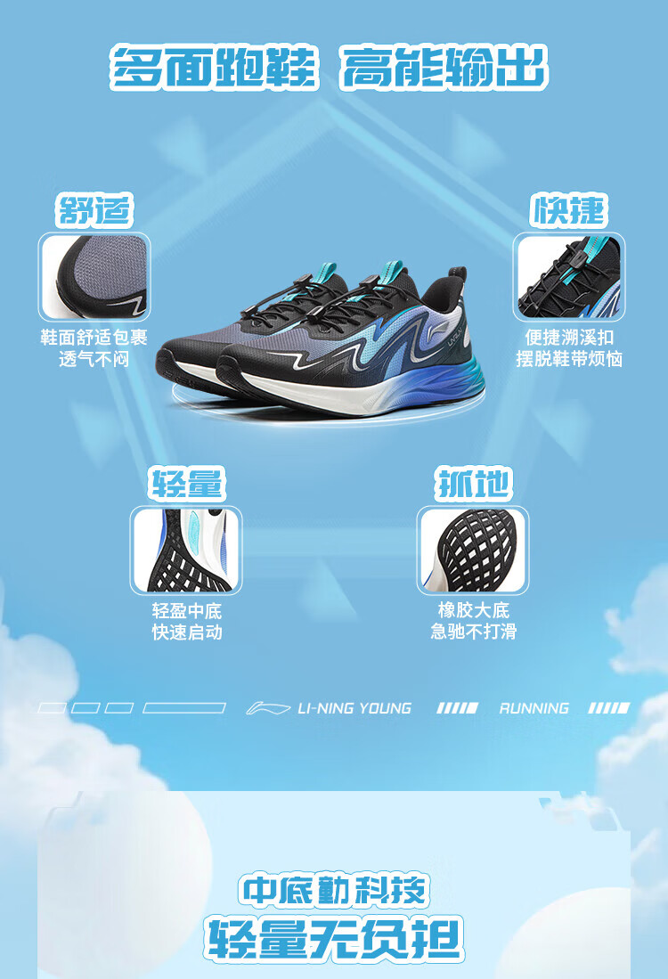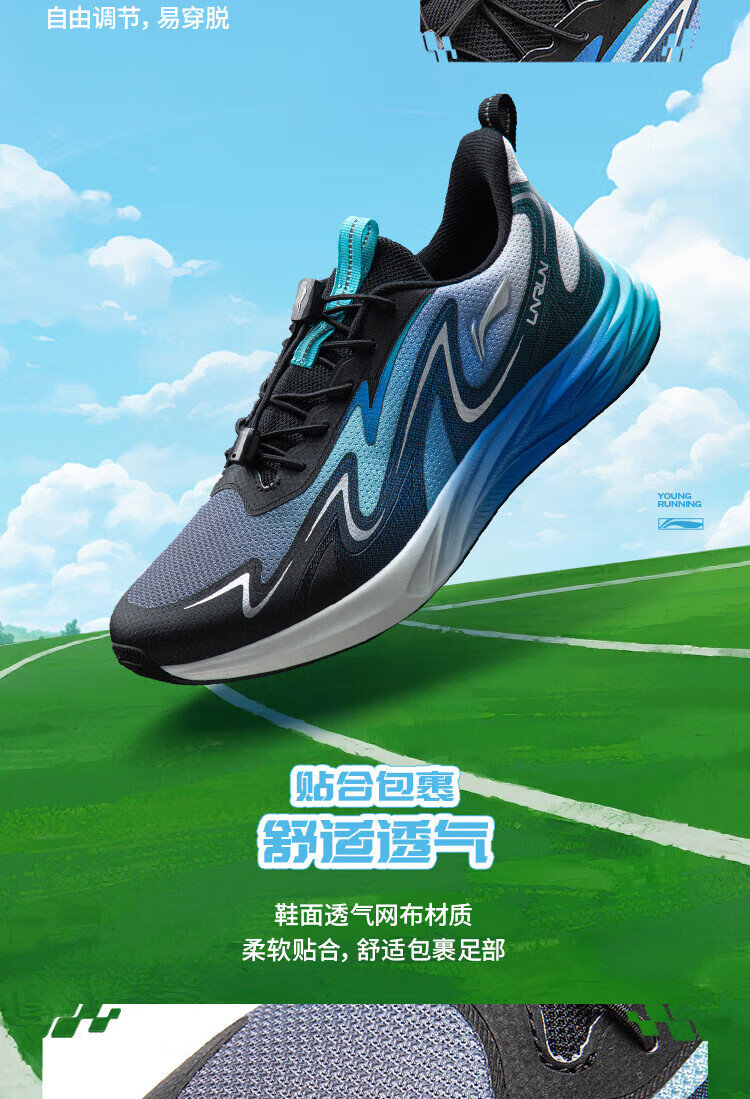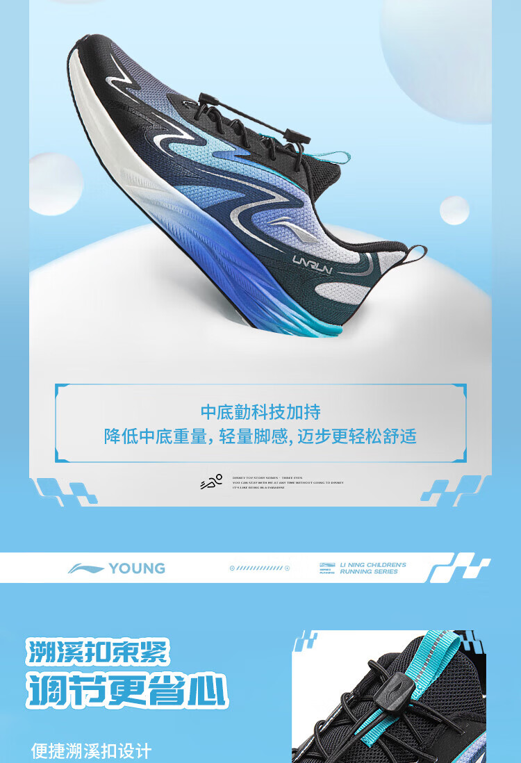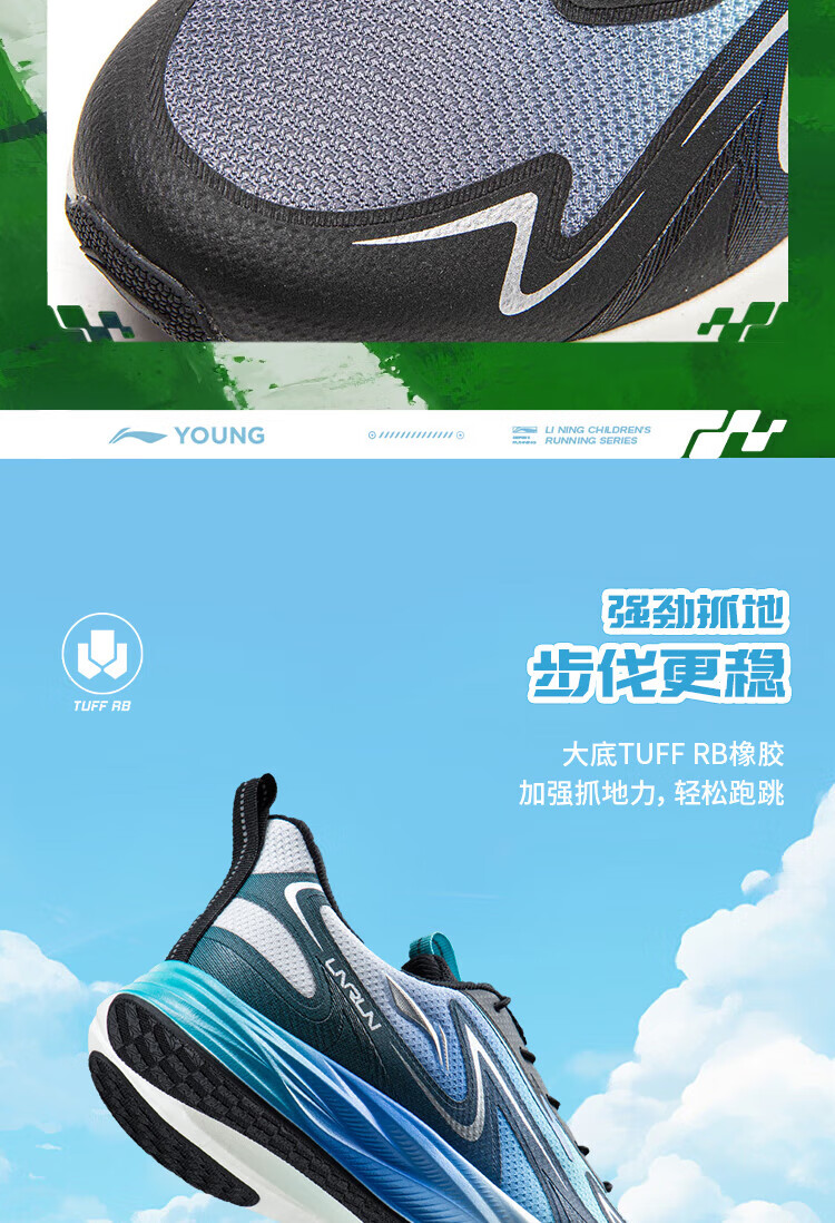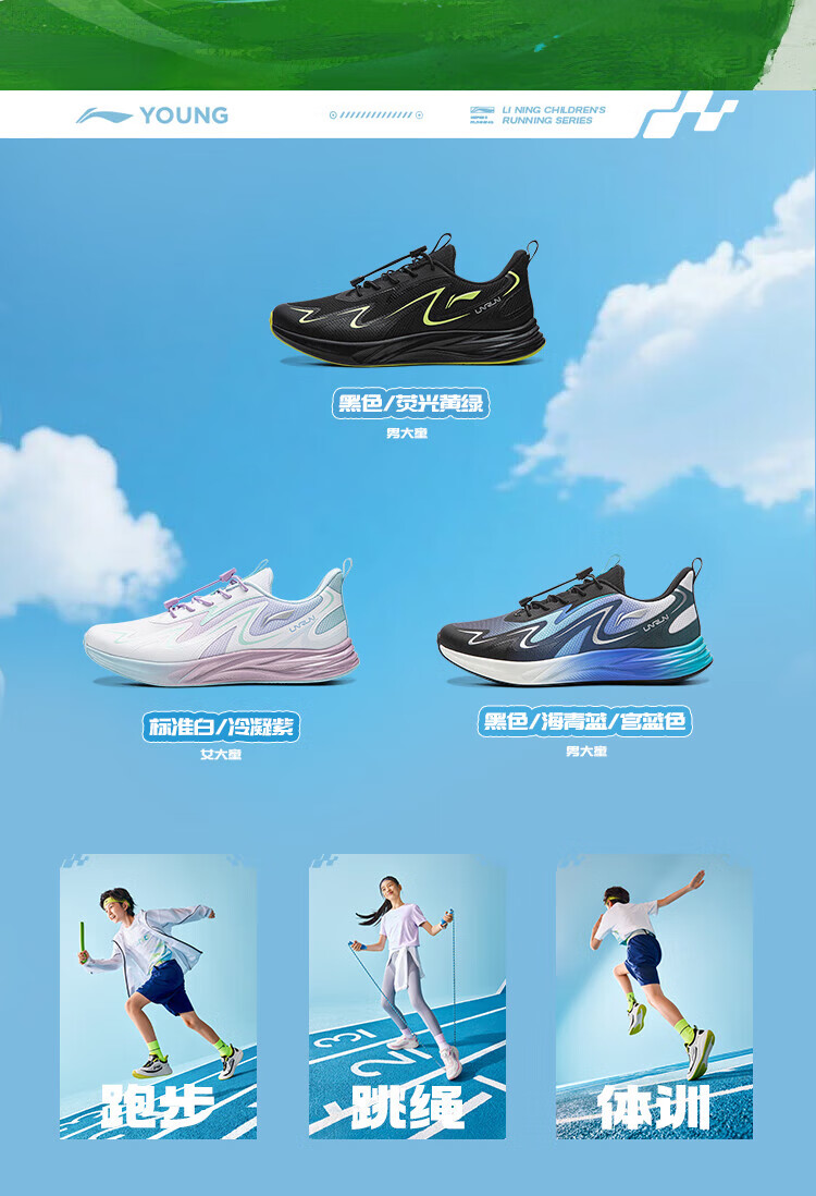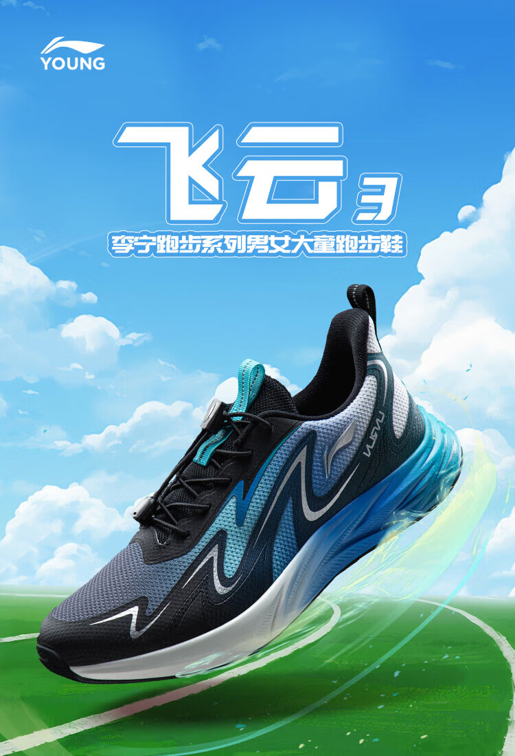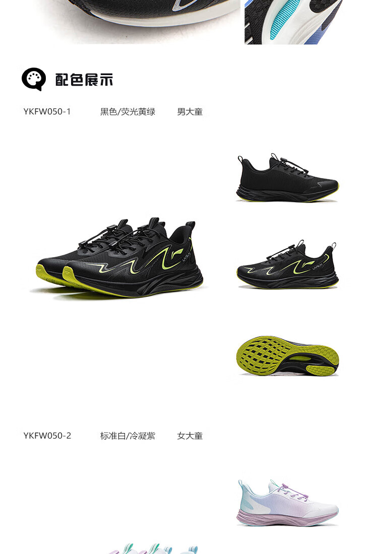 Li Ning Children's Spring and Summer Feiyun 3丨Reflective Running Shoes Youth Style Soft Breathable Low-top Casual Sports Shoes Standard White/Condensation Purple-2 33