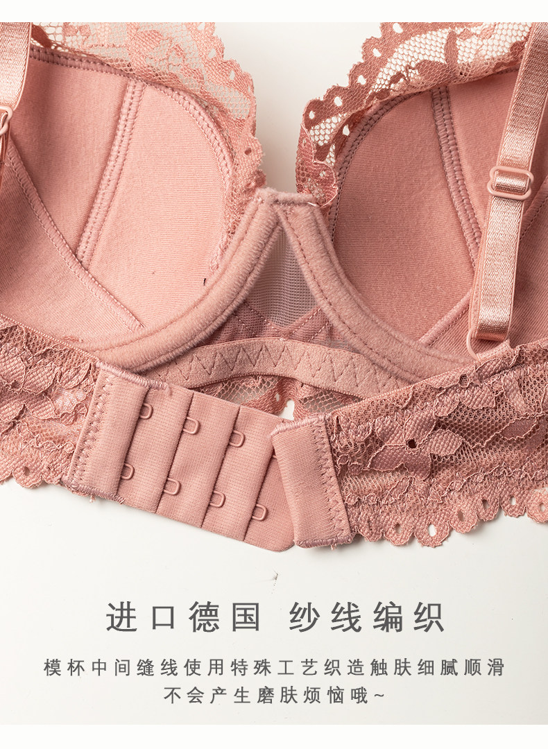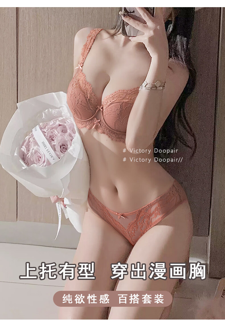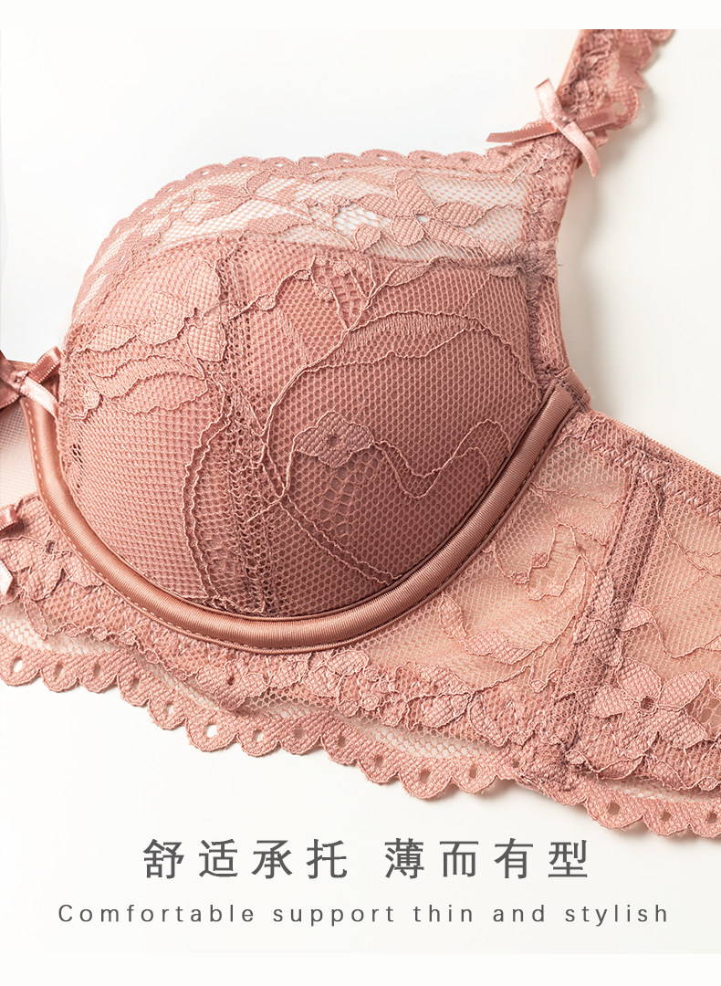Langsha Victoria Dobel French Lace Underwear Women's Push Up Small Breast Thin Anti-Sagging Sexy Bra Set Pink Single Piece 70A 32