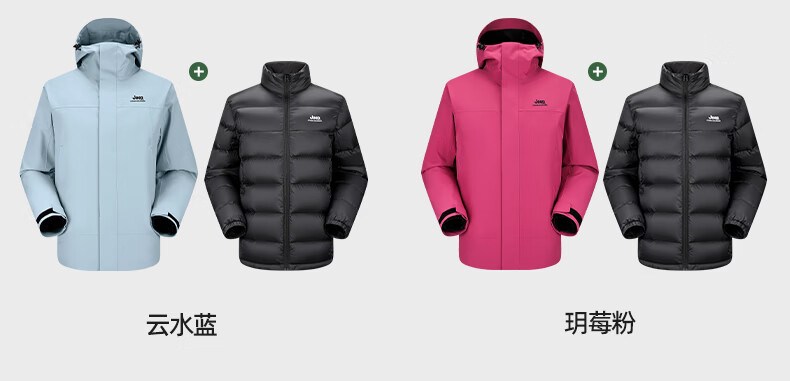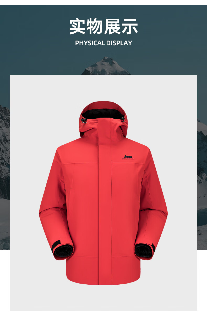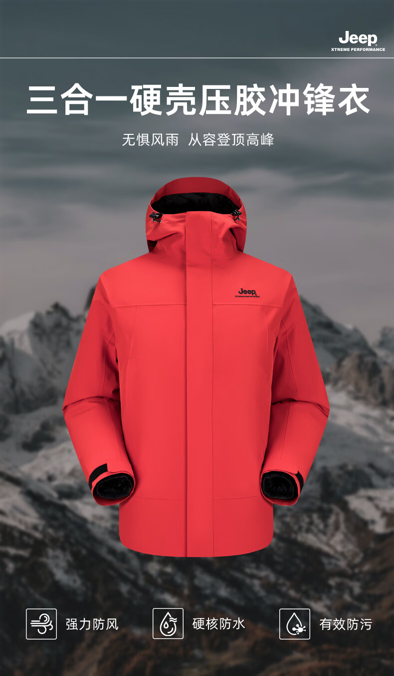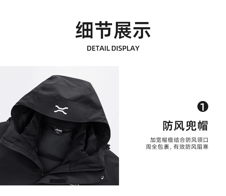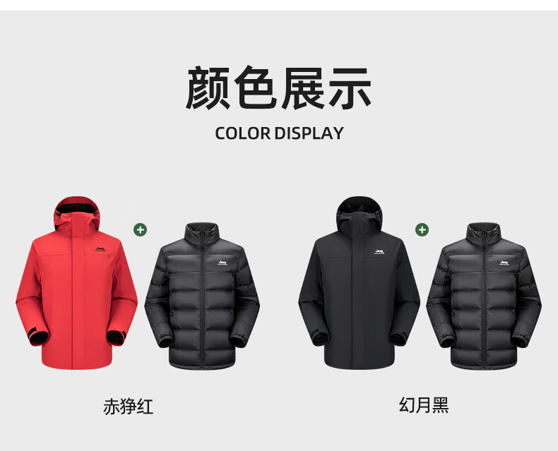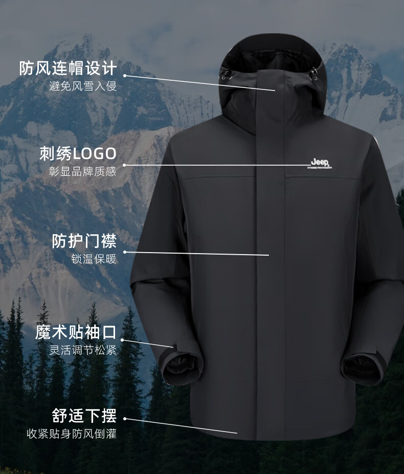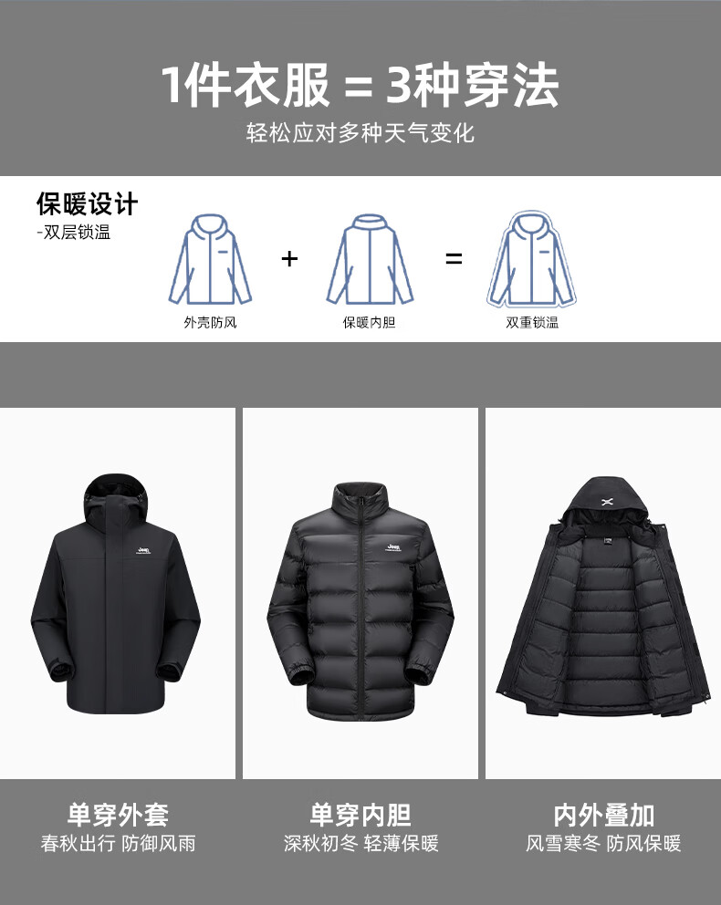JEEP American genuine outdoor down jacket for men and women, same style winter removable liner three-in-one cold-proof down jacket, Huan Yue Black S, recommended weight 105-120 Jin Jin equals 0.5 kg
