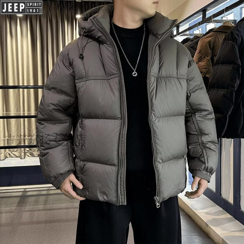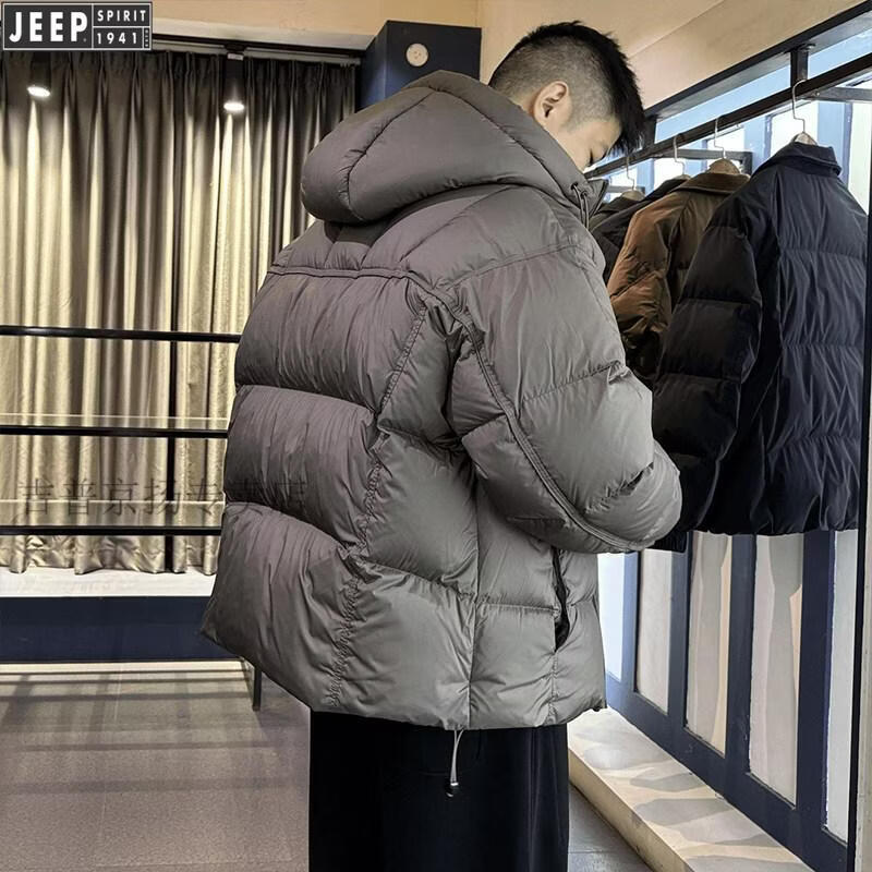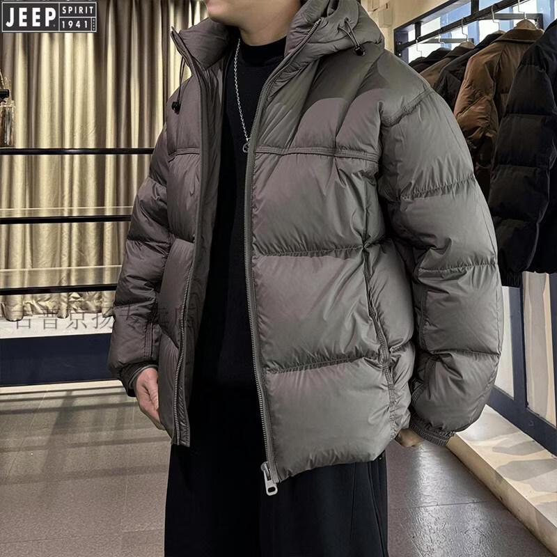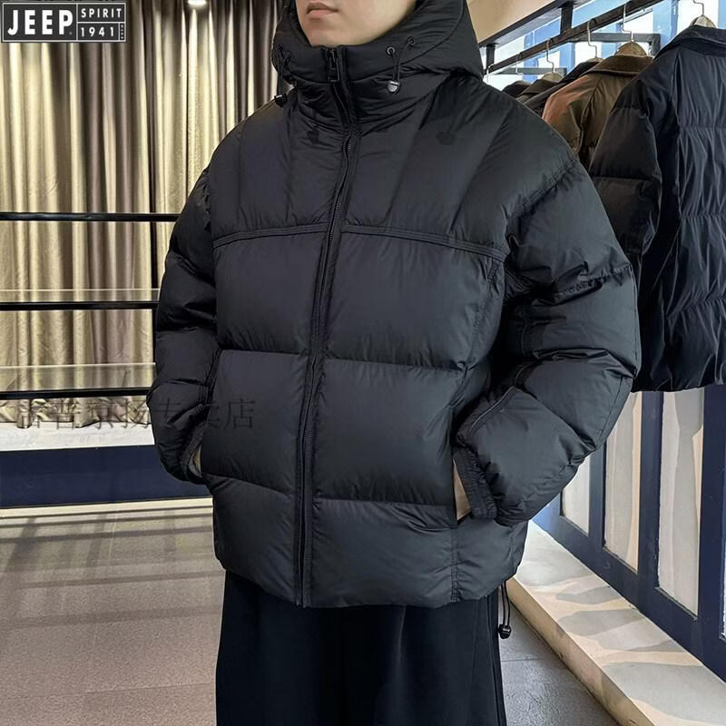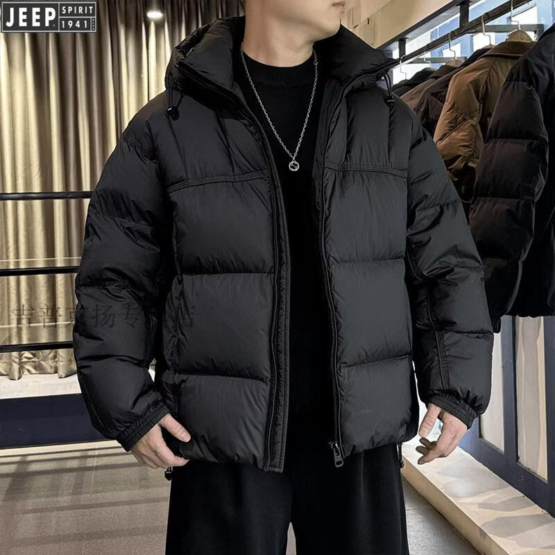JEEP international brand white duck down short down jacket men's winter cold-proof warm bread coat hooded casual jacket black upgraded version 4XL