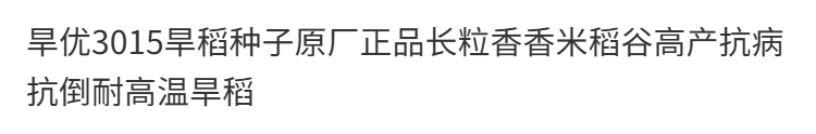 Wangyuan Xinghanyou 3015 upland rice seed original genuine long-grain rice disease-resistant, lodging-resistant and high-temperature resistant late rice ratoon rice hybrid Hanyou 3015 original bag 500g