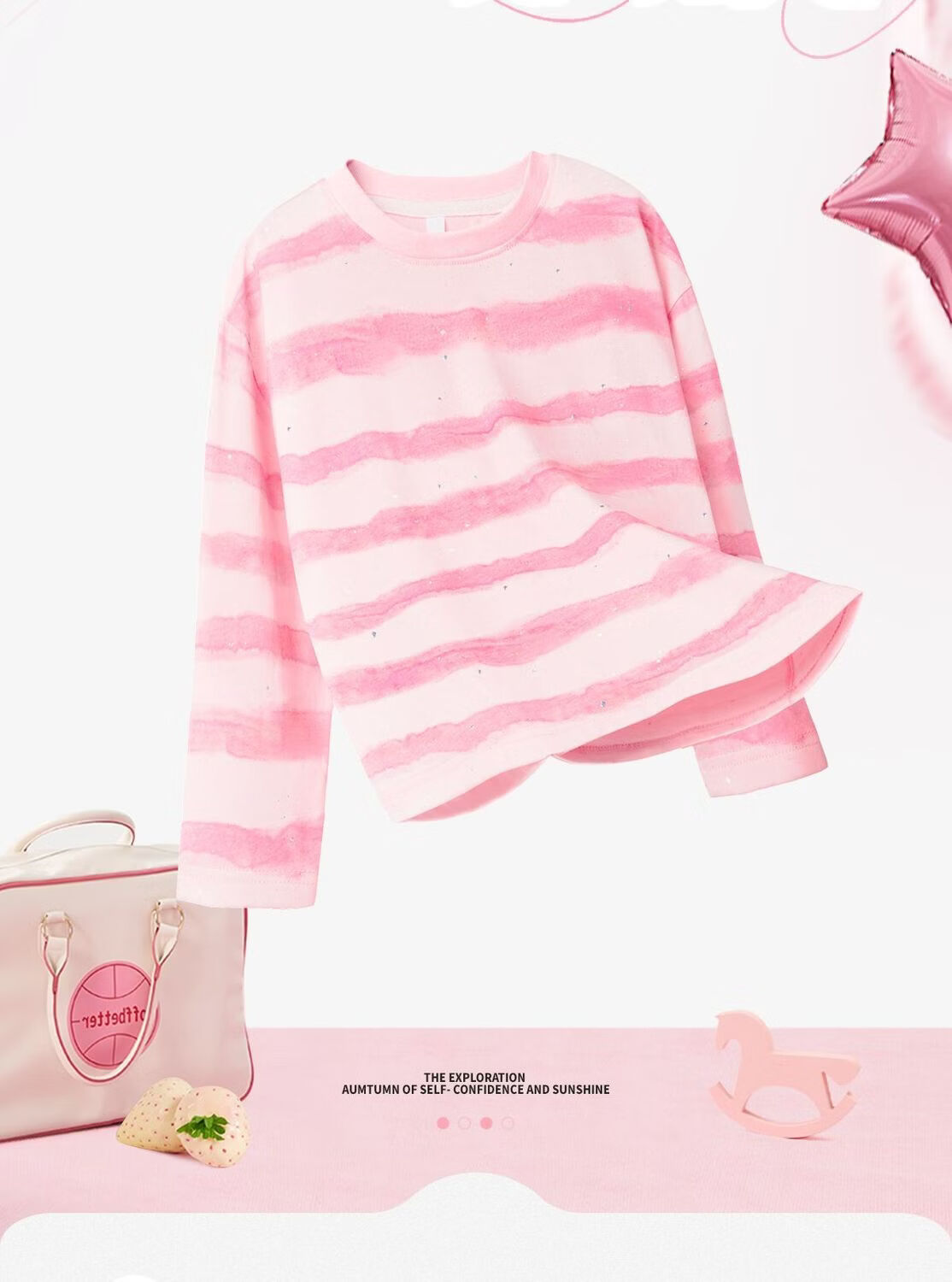 Jeanswest Jeanswest children's clothing girls striped long-sleeved T-shirt medium and large children's spring and autumn new tops children's inner-layer shirt lazy cotton striped long-sleeved 1-blue and white 110 recommended 30-37Jin Jin equals 0.5 kg