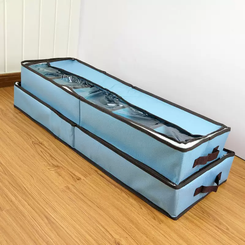 Yusenyi Japanese shoe box Oxford cloth transparent hard grid adjustable storage shoe box Cotton and linen under-bed boot box bed bottom organizing box Oxford cloth gray 80x25x10cm