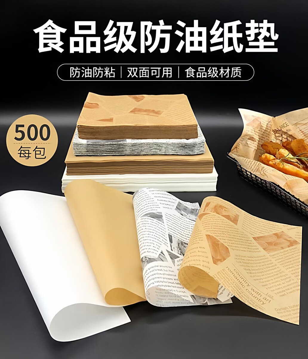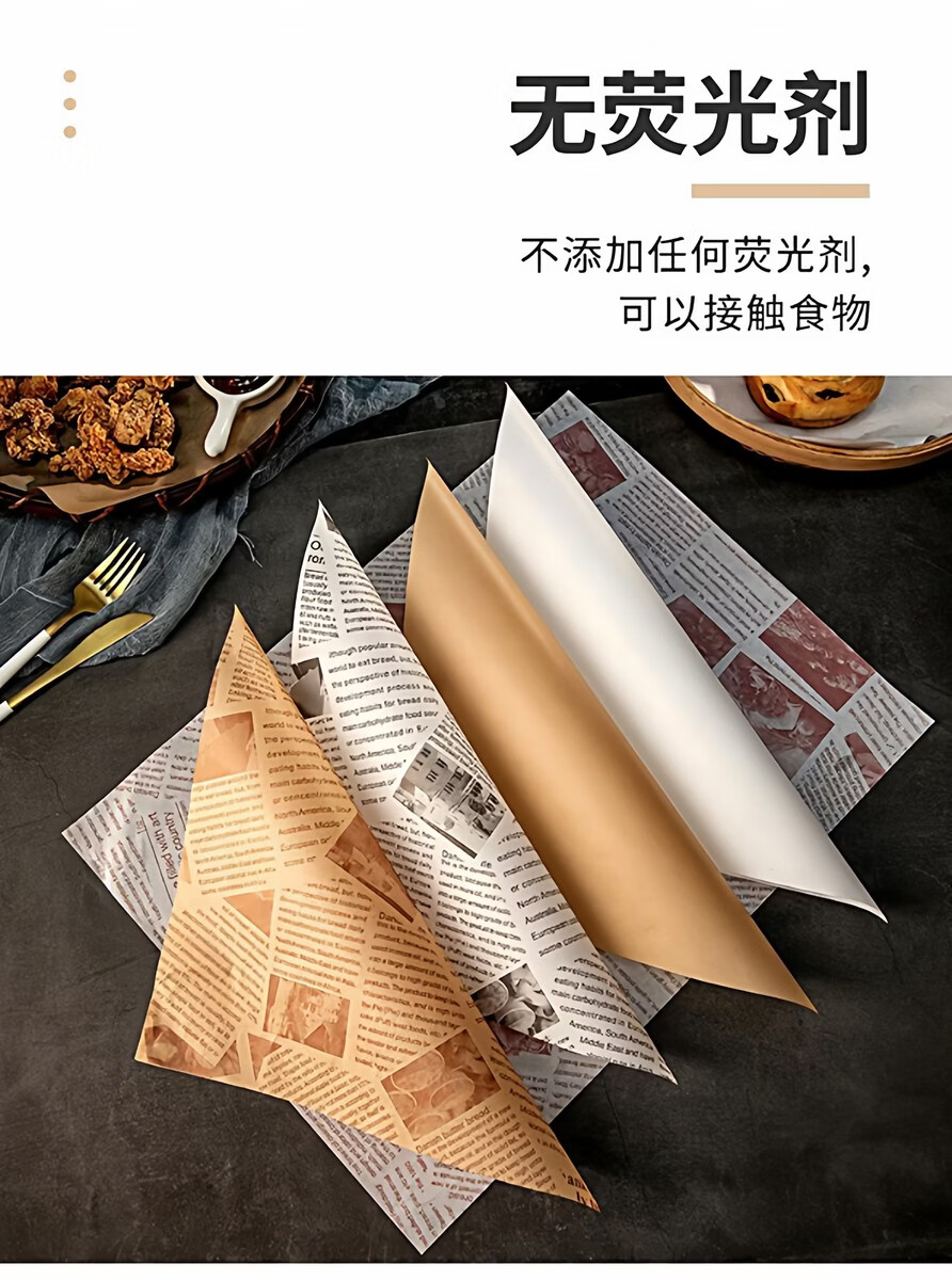 Fantasy paper, oil-absorbing paper pad, fried snack bread tray, grease-proof paper, baking oil paper sandwich, yellow newspaper 15x15cm, 500 sheets/pack