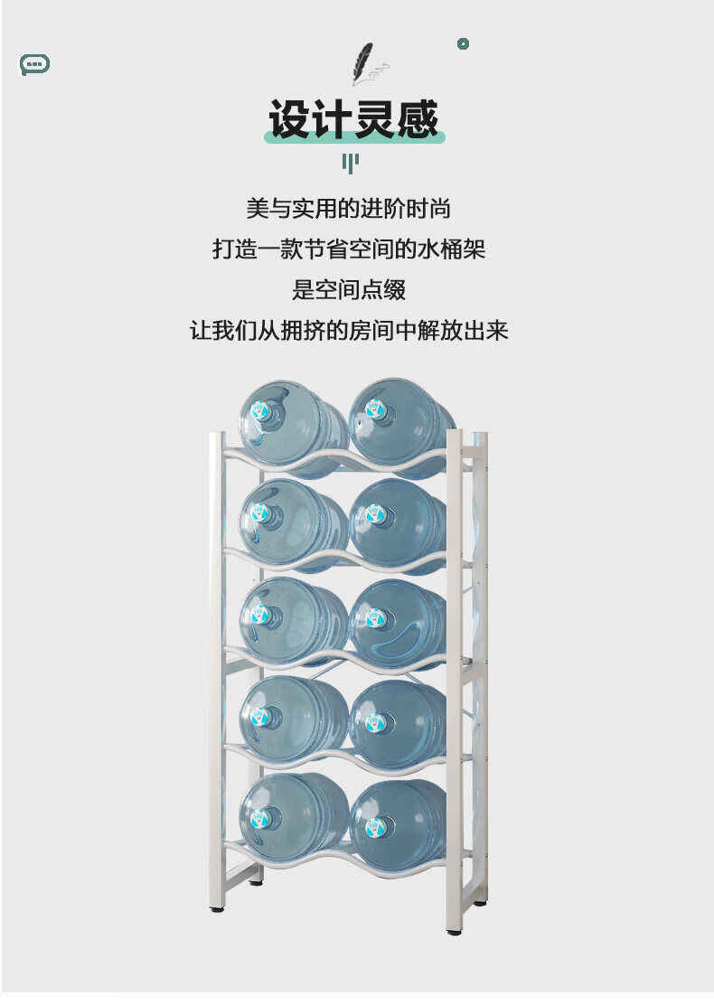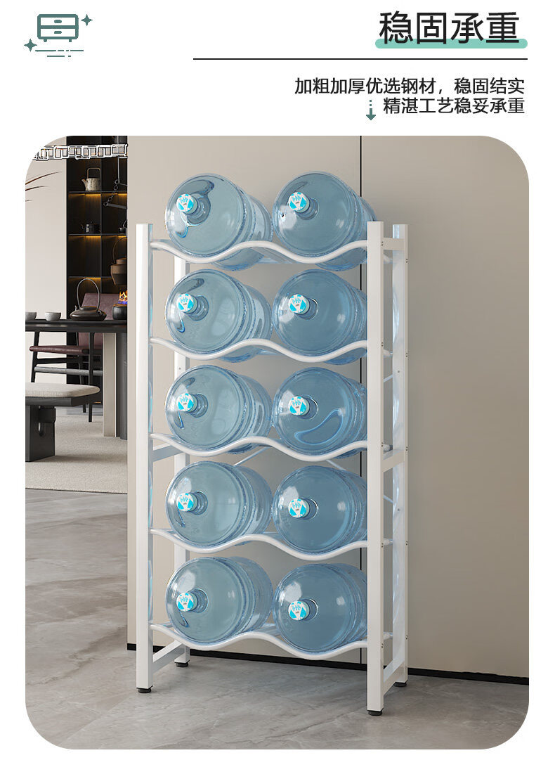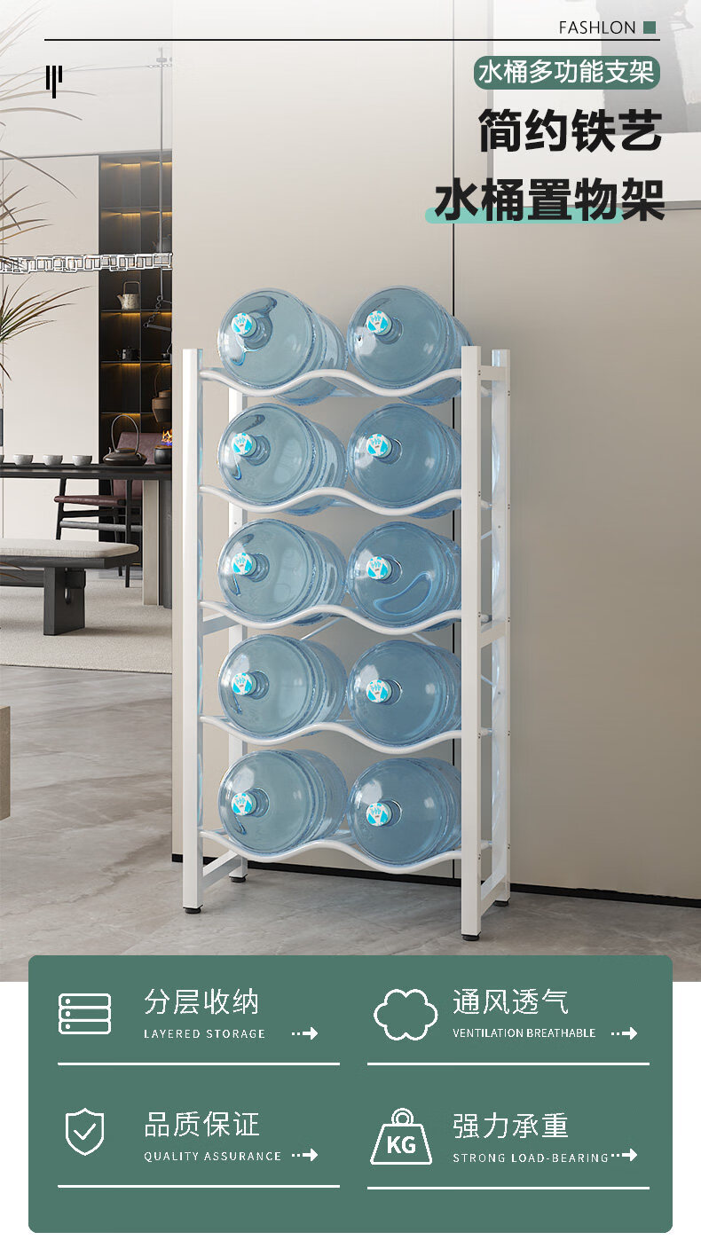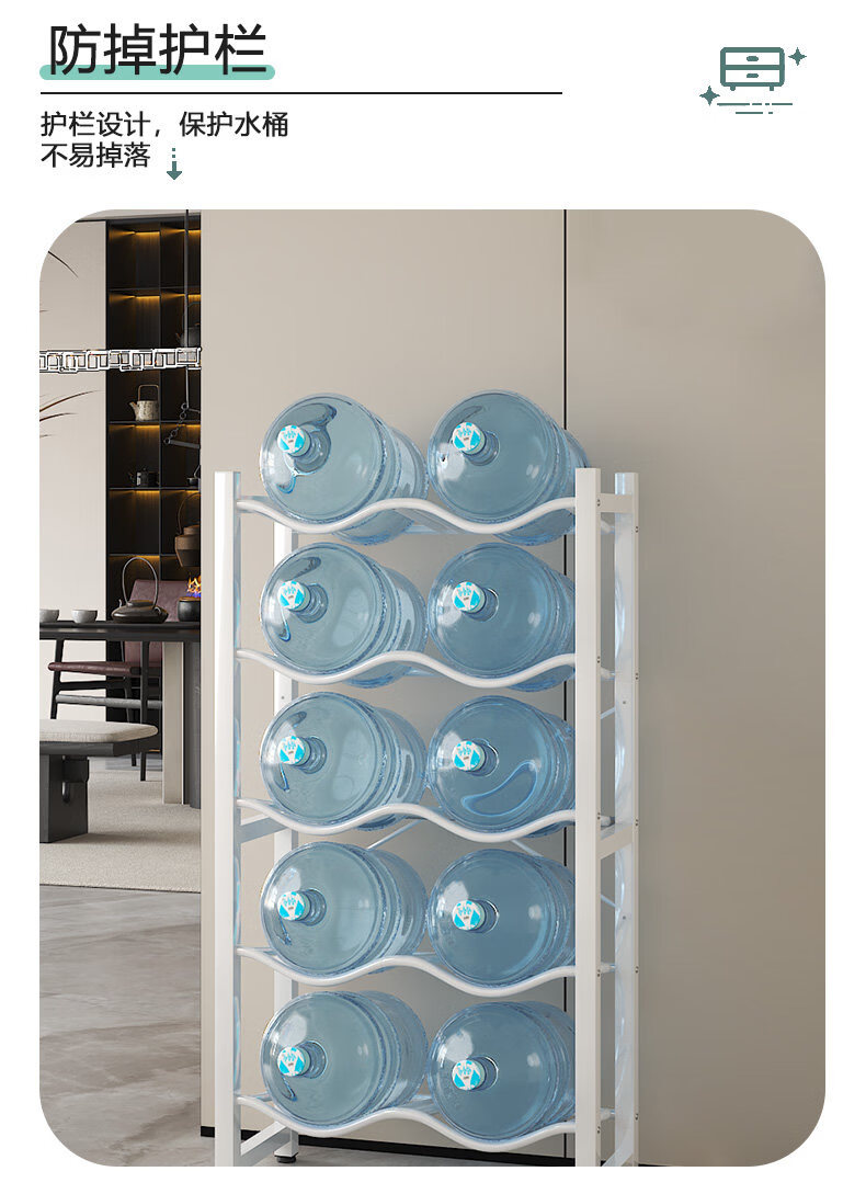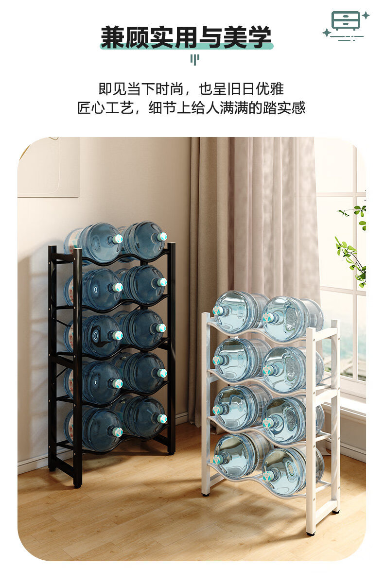 Tuojin single row double row multi-layer bucket rack mineral water storage rack office pure water bucket rack bottled water stand rack single bucket five layers - black