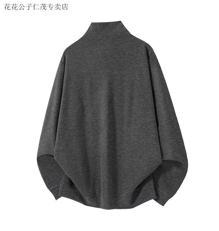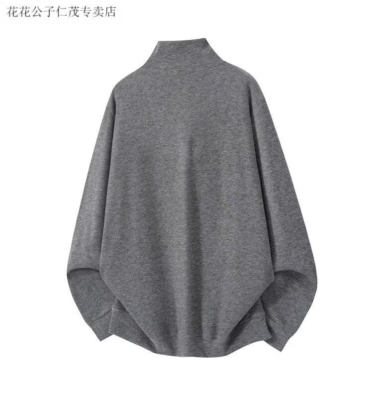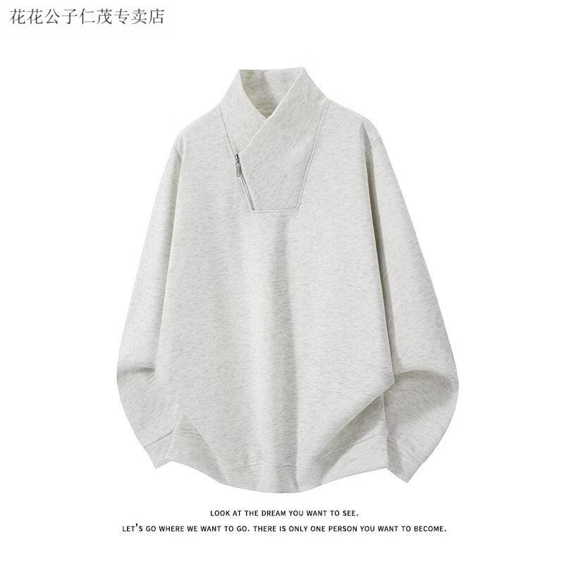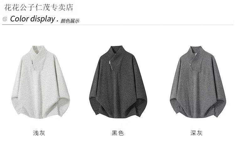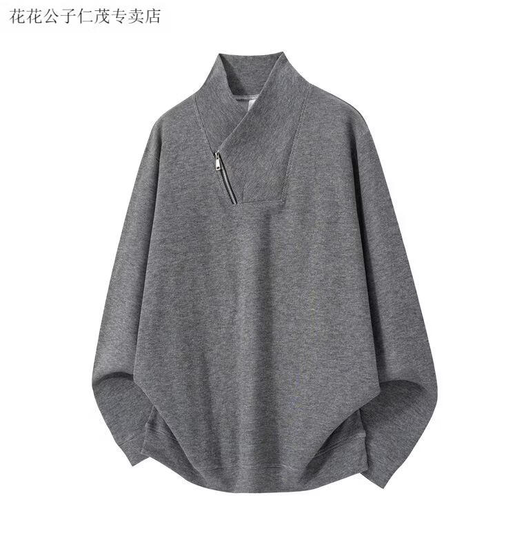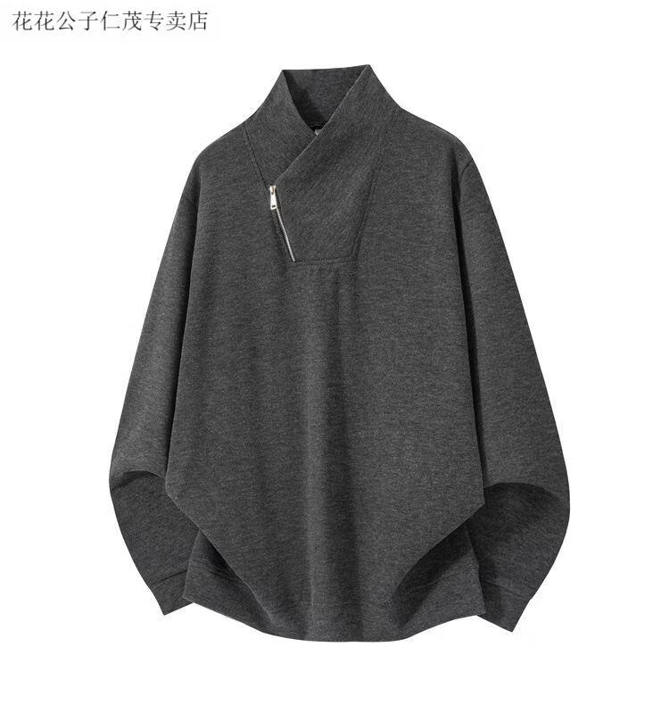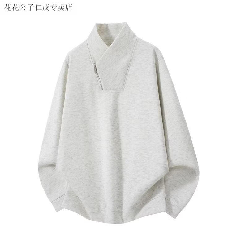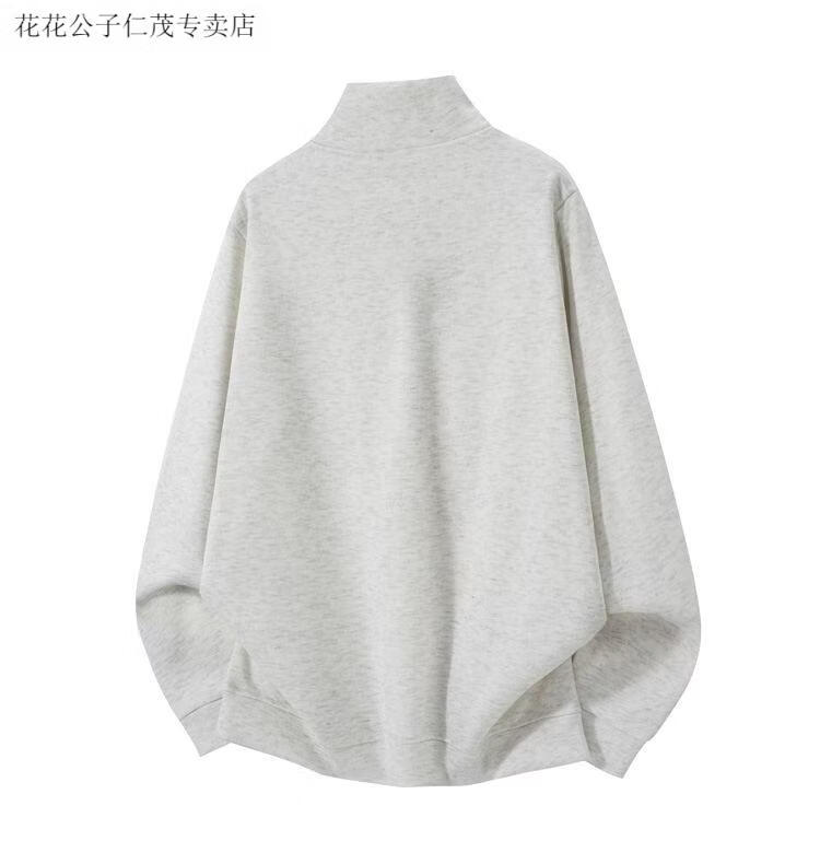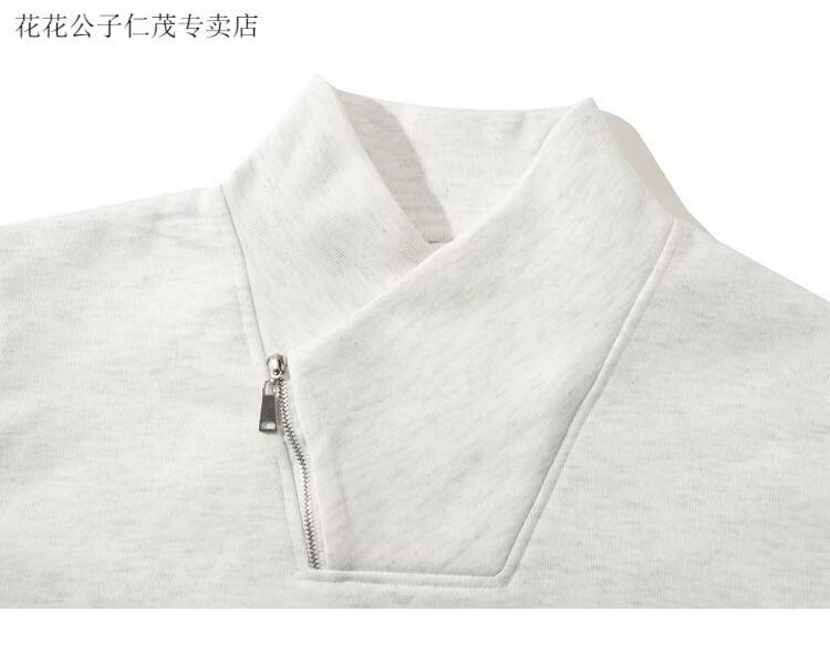 Playboy (PLAYBOY) American diagonal zipper sweatshirt men's spring and autumn velvet design long-sleeved T-shirt heavyweight thickened warm inner top dark gray M
