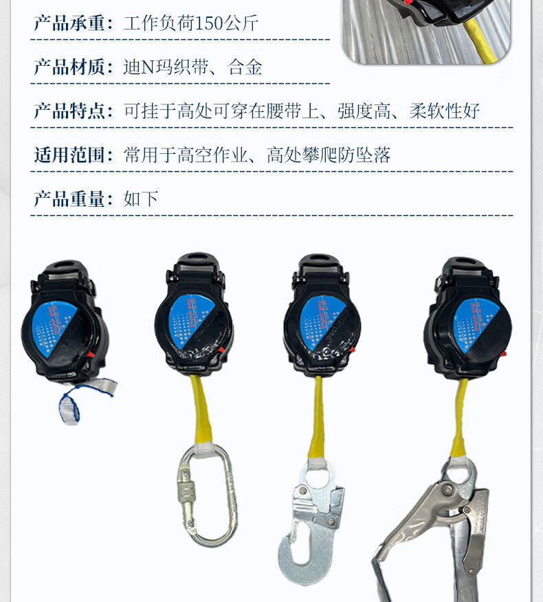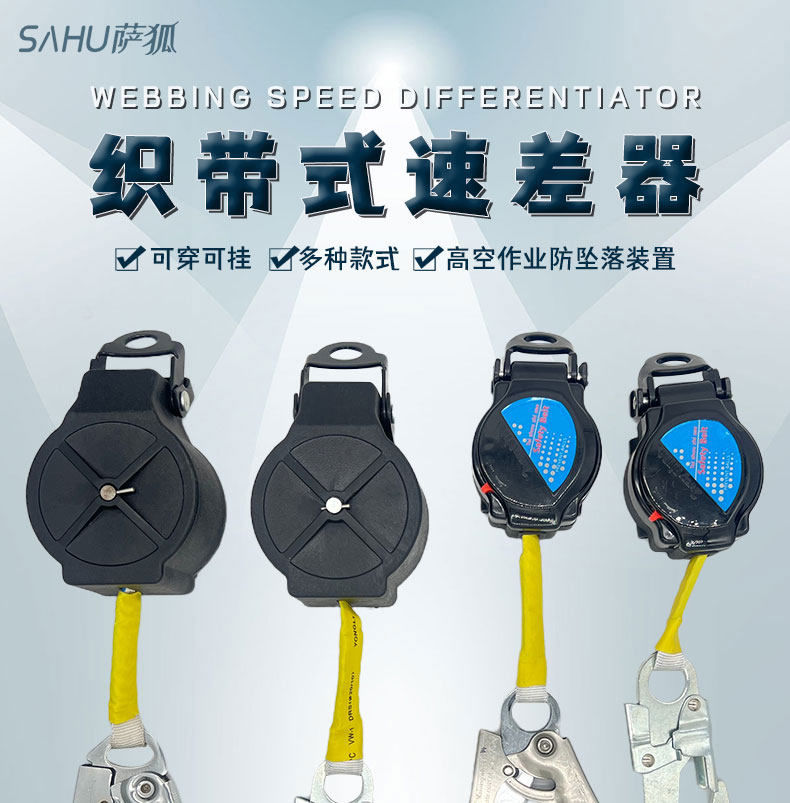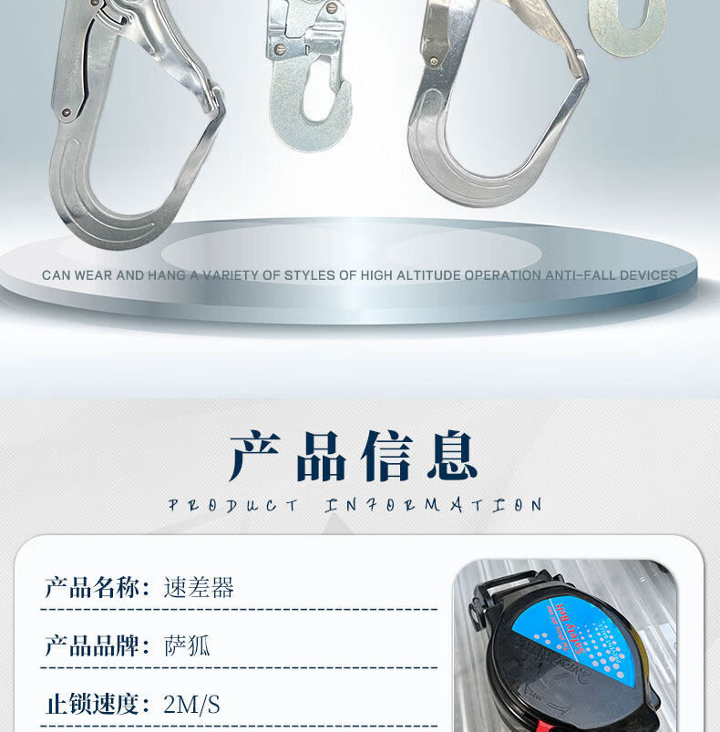 Sahu 15m3 meter safety belt speed differential webbing self-locking anti-fall device descent self-control recycling personal work protection speed differential 1 point 5 meters aluminum alloy D-type hook