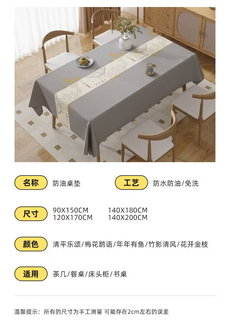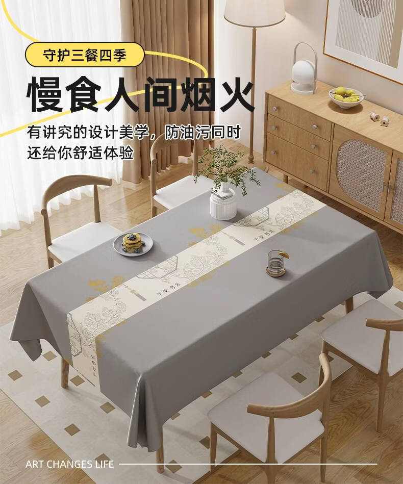 Wing Fantasy 2025 new tablecloth, no-wash, oil-proof and waterproof dining table, rectangular, home living room coffee table tablecloth, light luxury, exquisite flowers (2.0 upgraded encryption cloth, waterproof and oil-proof) 140*200cm (suitable for 6-person rectangular table/oval table)_Collect