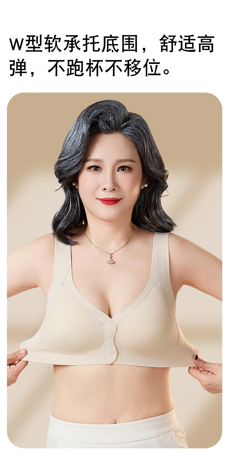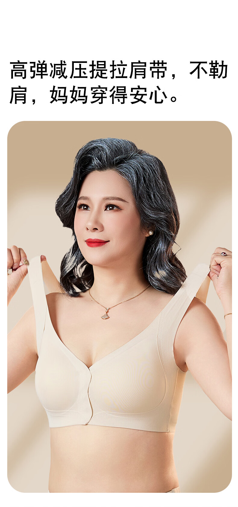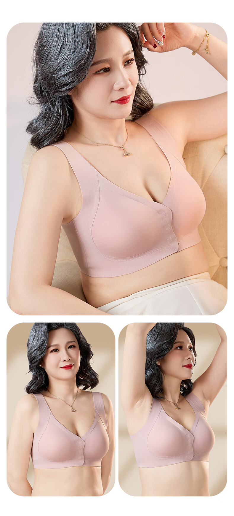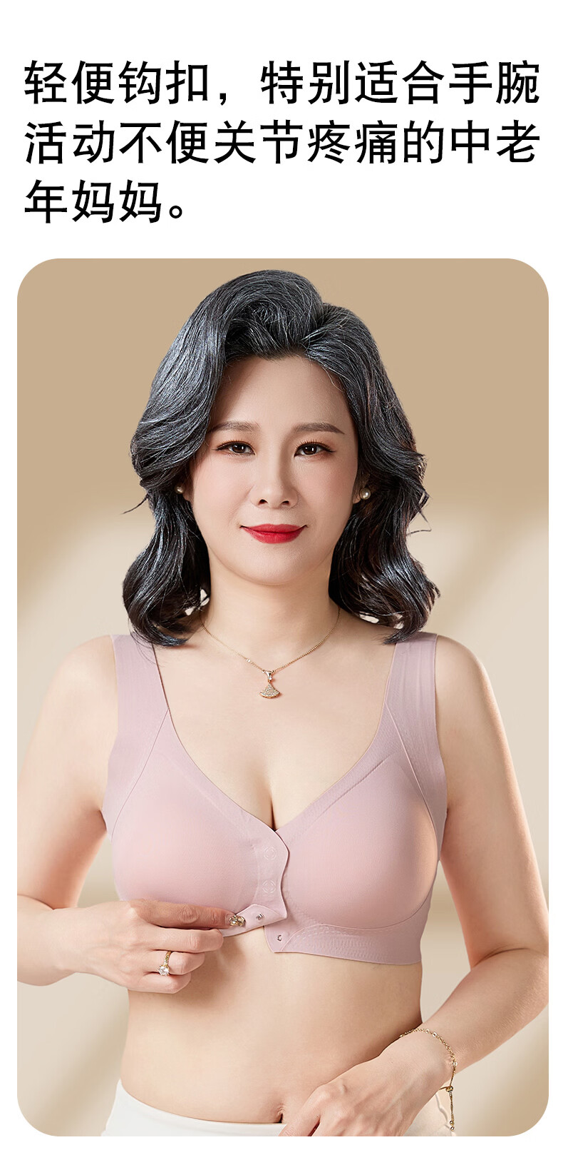 Yalu women's bra for middle-aged and elderly people, seamless, breathable, front-buttoned, beautiful back, anti-sagging, soft, wire-free bra, orchid smoke color 2XL (115-130Jin Jin equals 0.5kg)