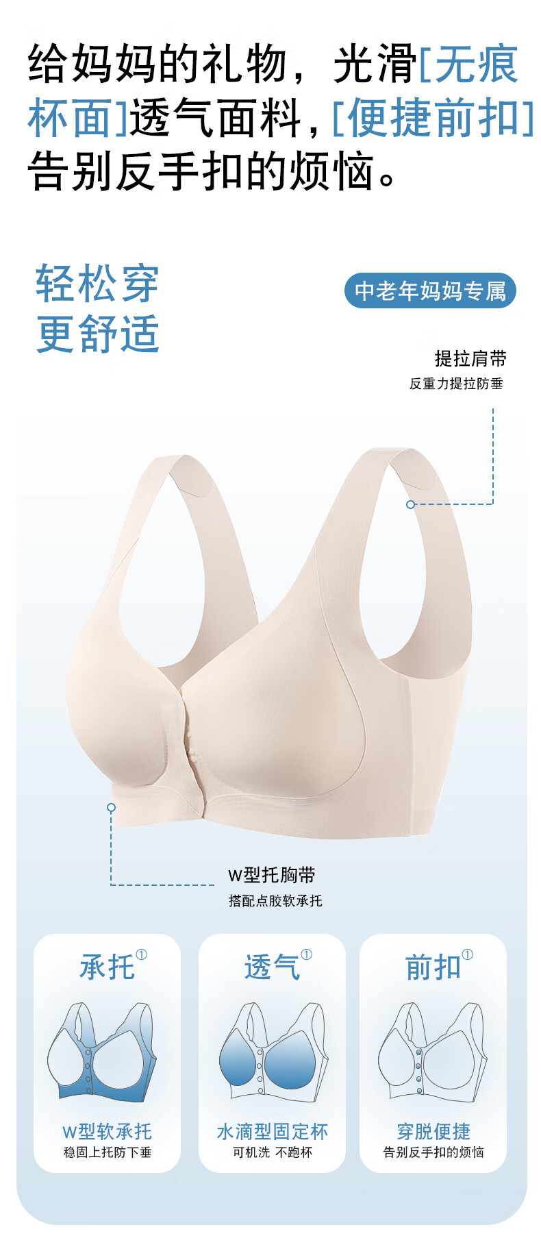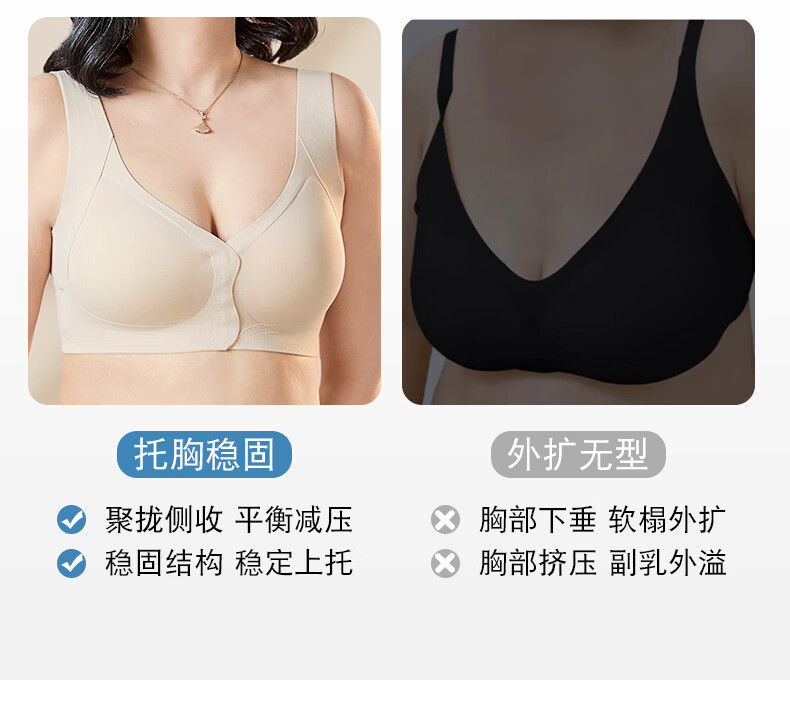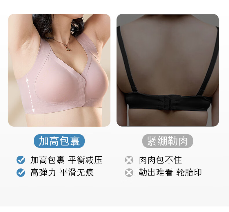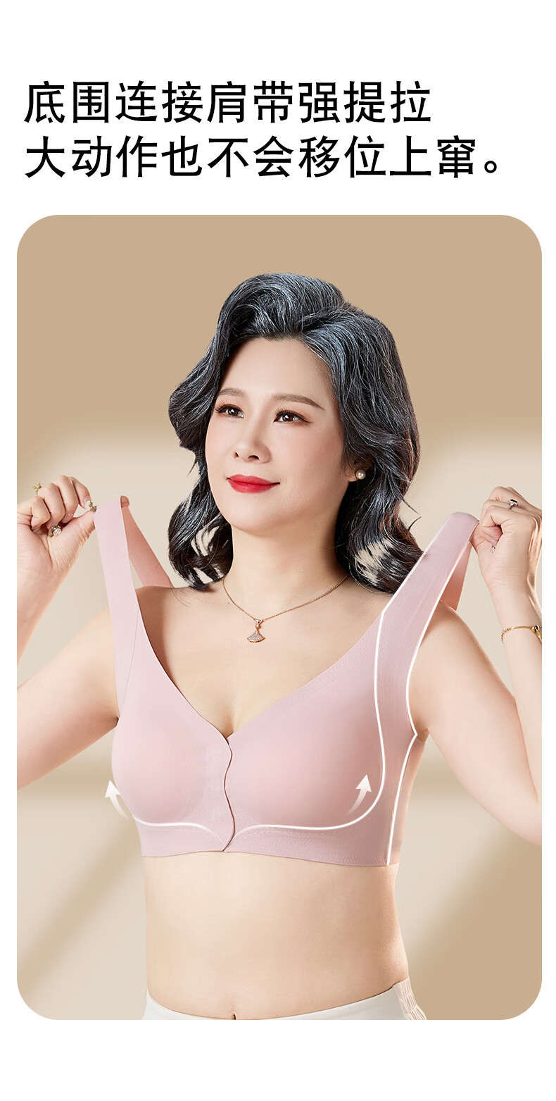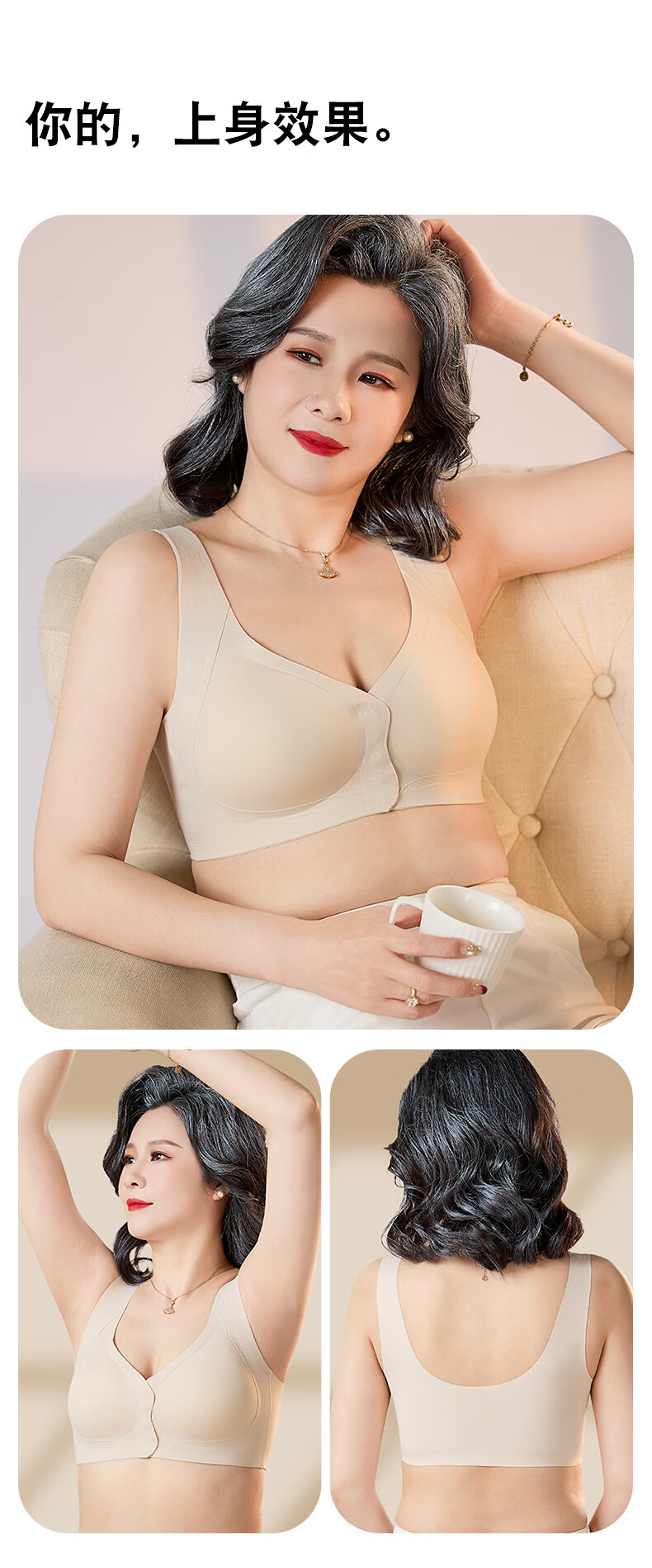 Yalu women's bra for middle-aged and elderly people, seamless, breathable, front-buttoned, beautiful back, anti-sagging, soft, wire-free bra, orchid smoke color 2XL (115-130Jin Jin equals 0.5kg)