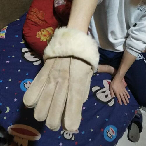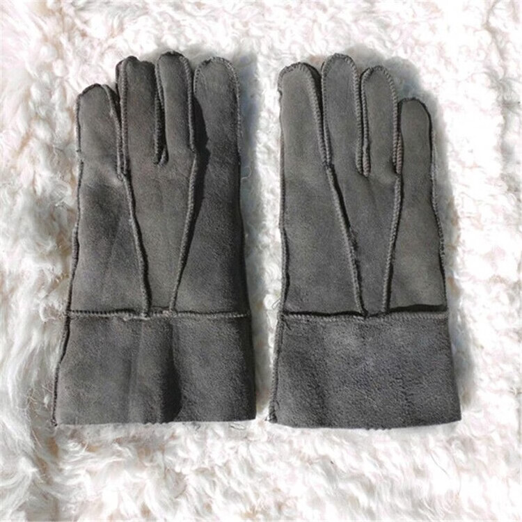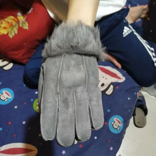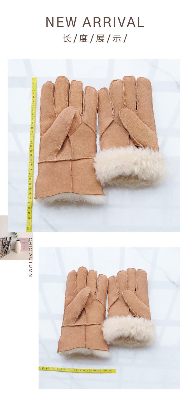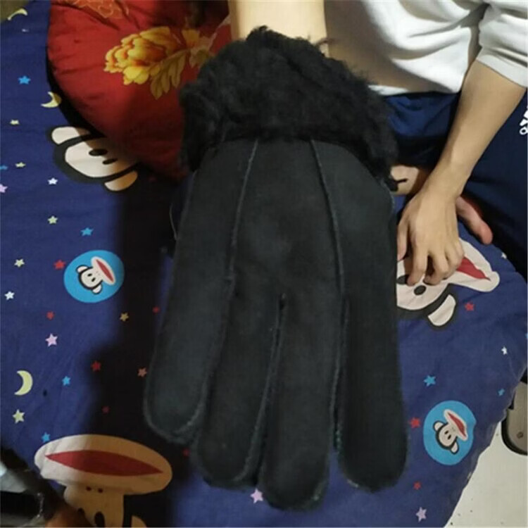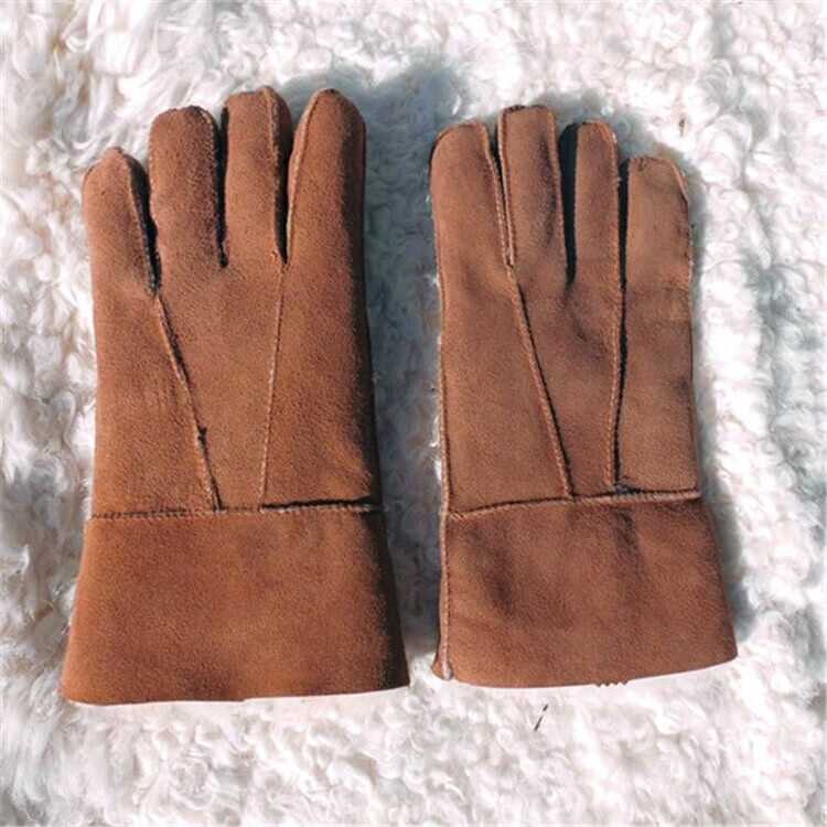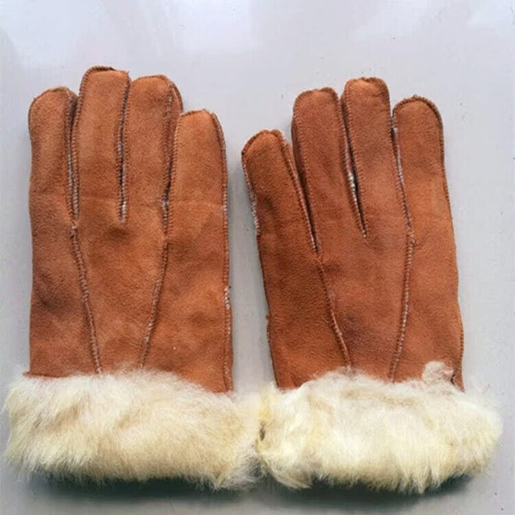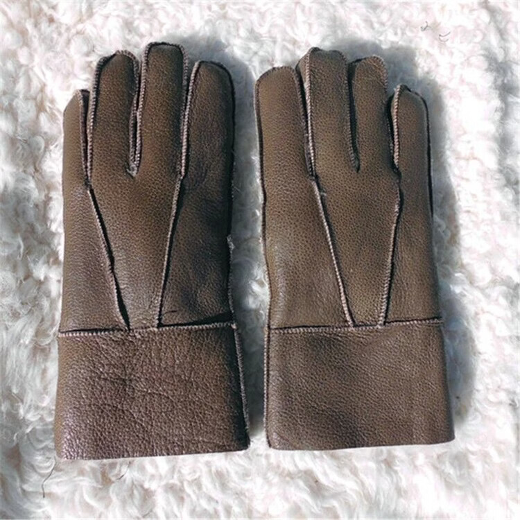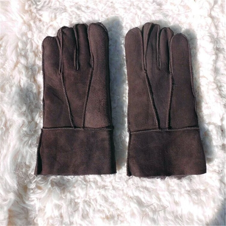 Fantasy German imported high-quality suede leather gloves for men and women, outdoor men's five-finger shearling thickened style, one-piece fur, green outer cover + extra large sheepskin liner, standard fur (regardless of thickness)