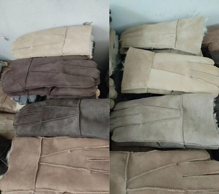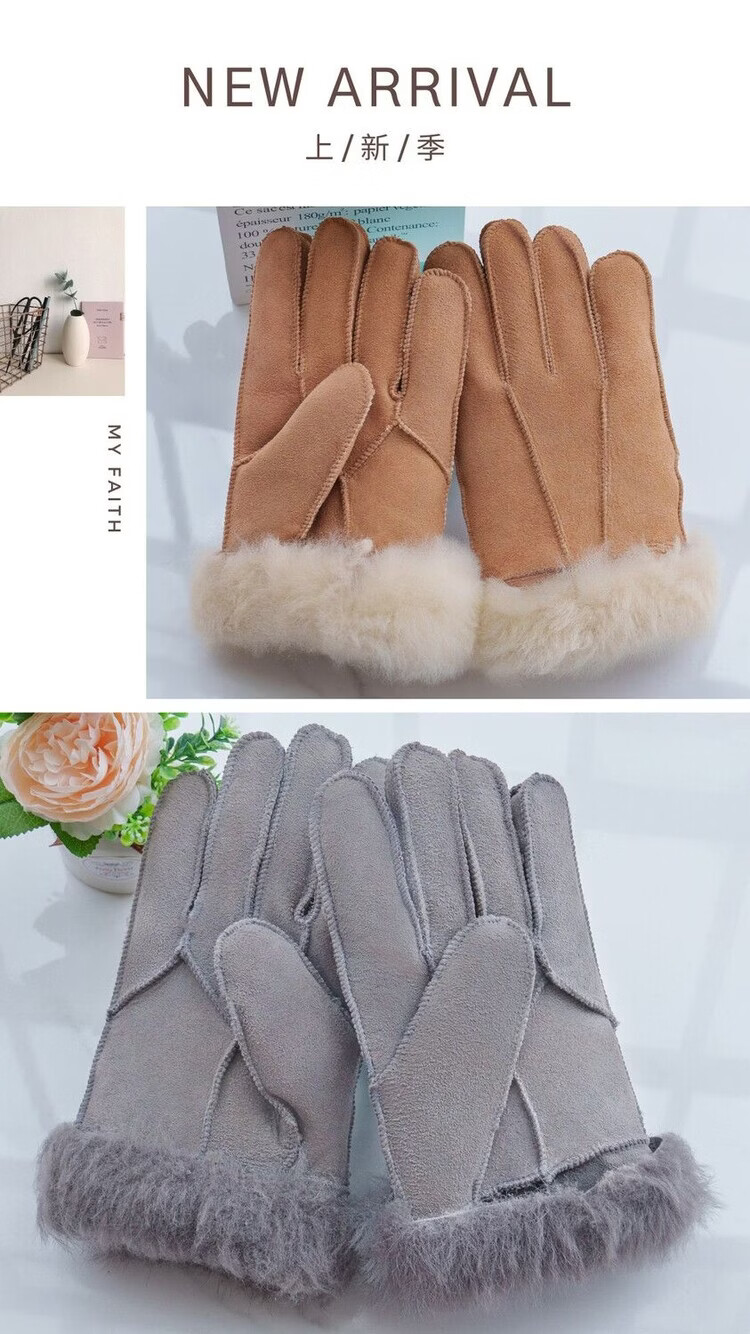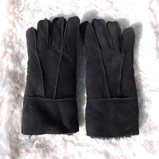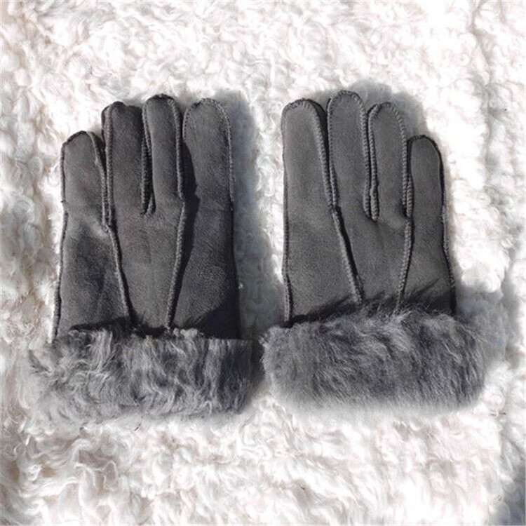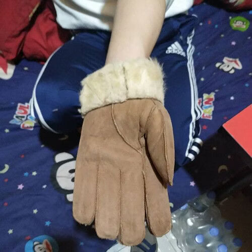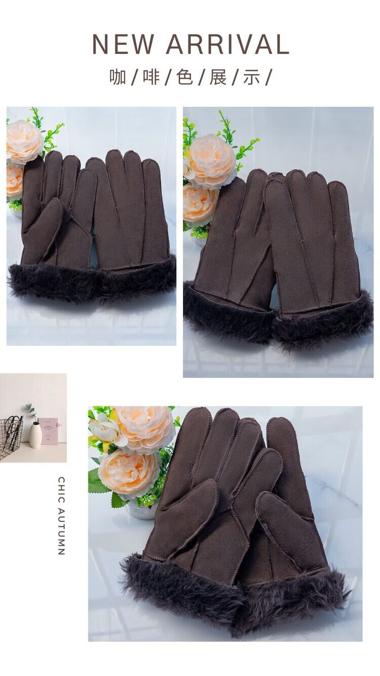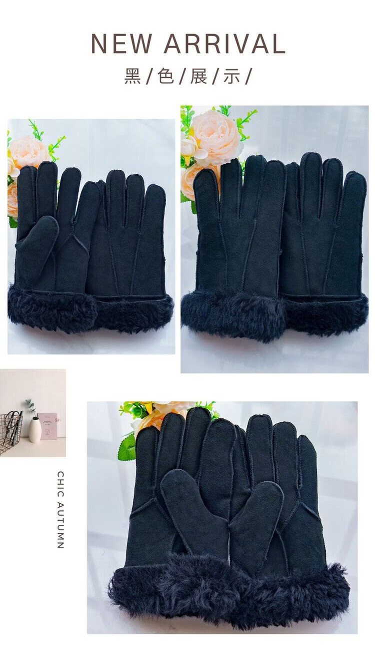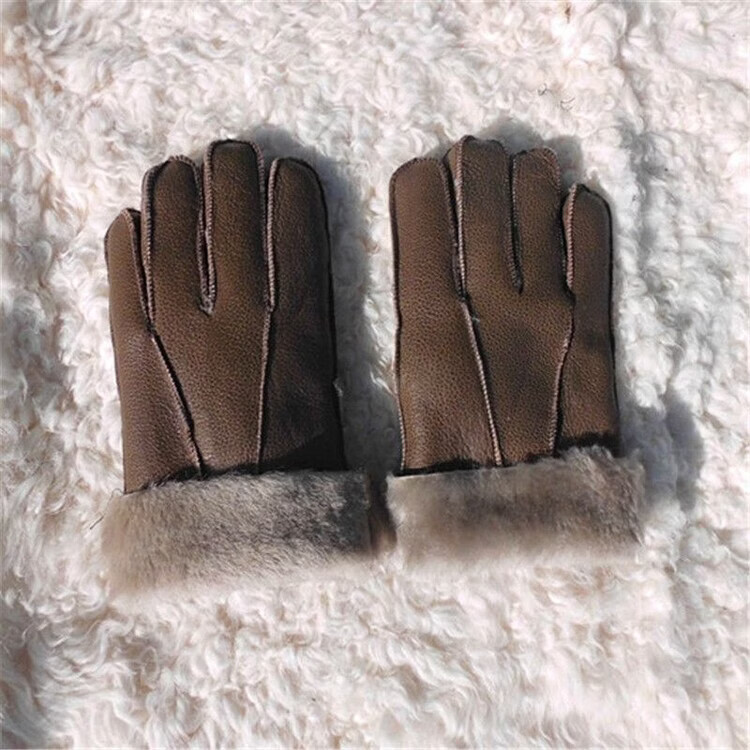 Fantasy German imported high-quality suede leather gloves for men and women, outdoor men's five-finger shearling thickened style, one-piece fur, green outer cover + extra large sheepskin liner, standard fur (regardless of thickness)