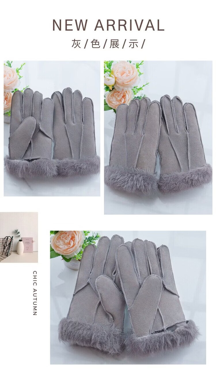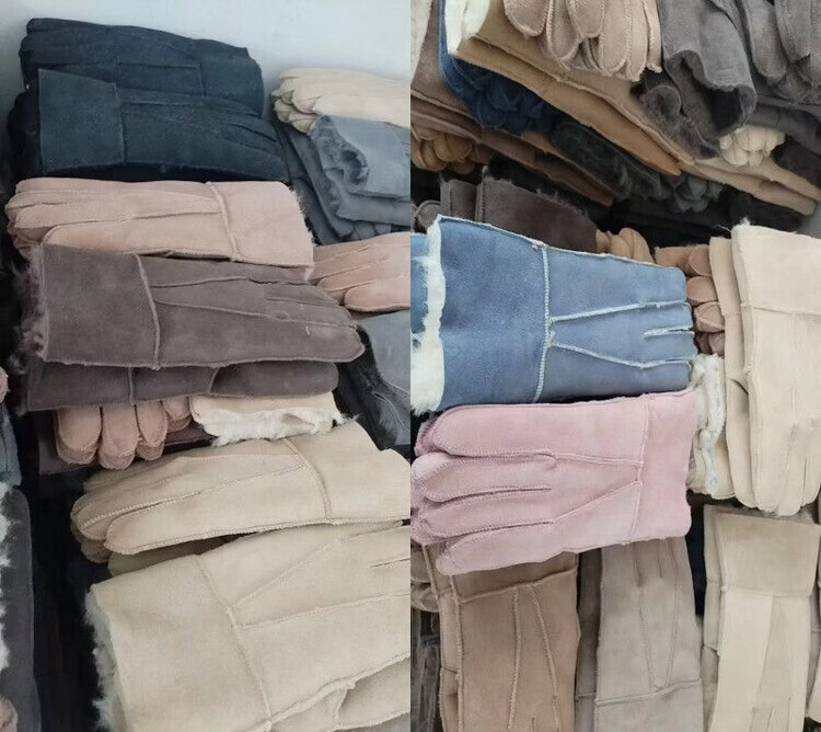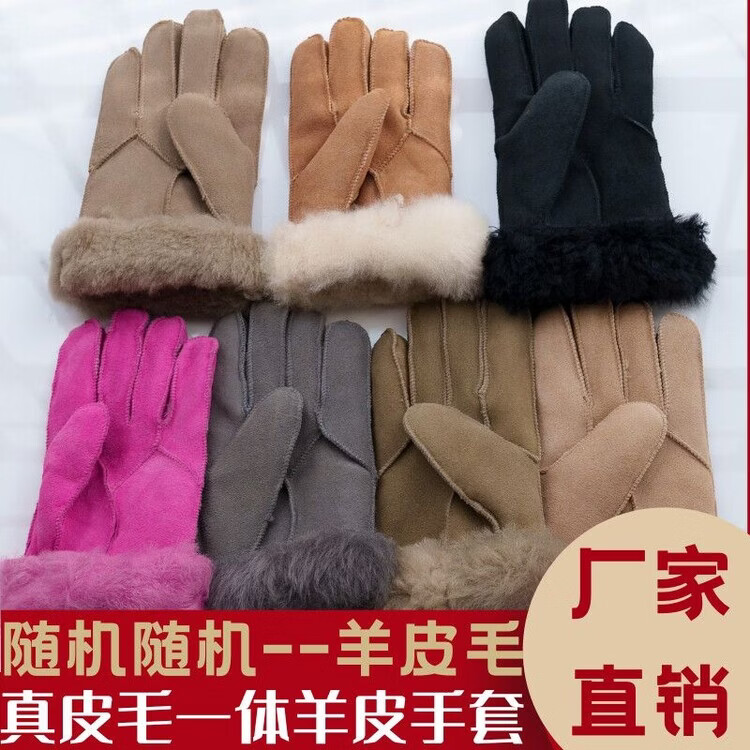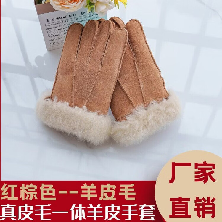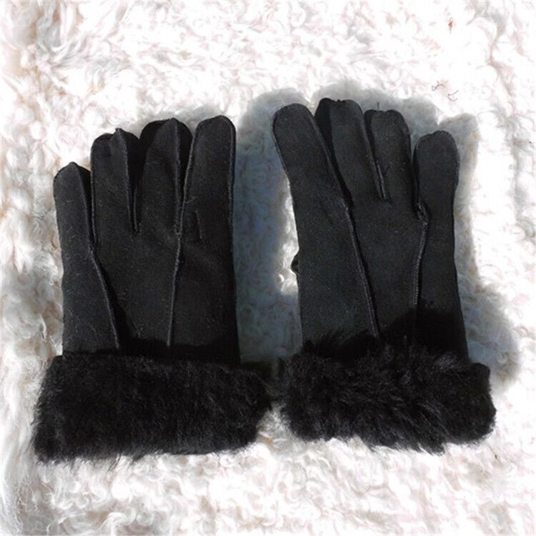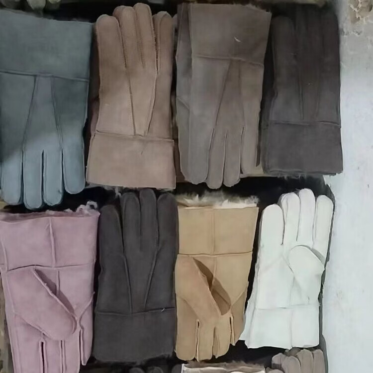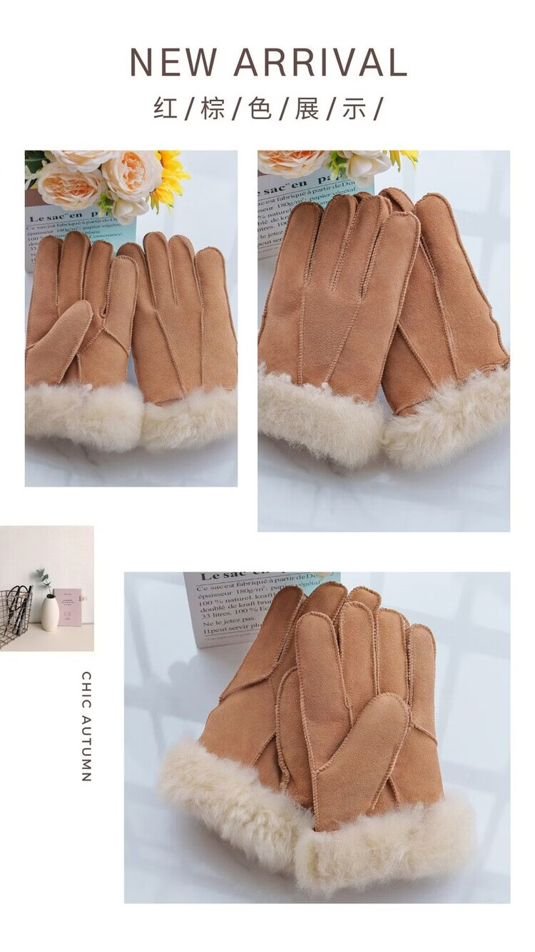Fantasy German imported high-quality suede leather gloves for men and women, outdoor men's five-finger shearling thickened style, one-piece fur, green outer cover + extra large sheepskin liner, standard fur (regardless of thickness)