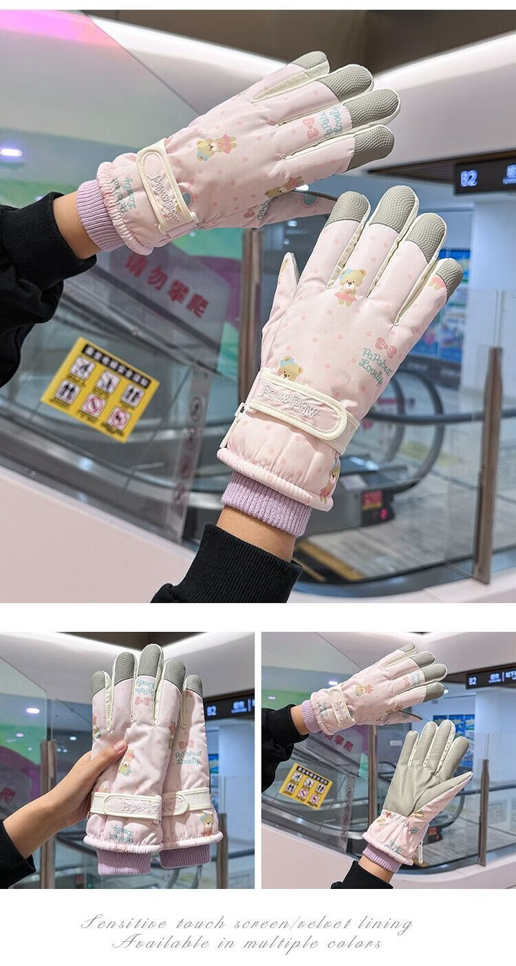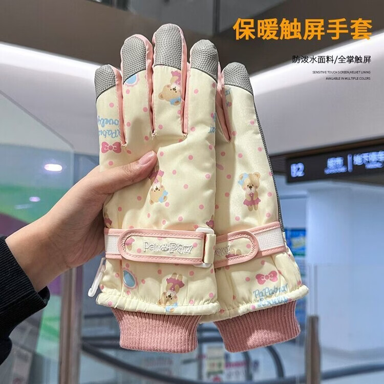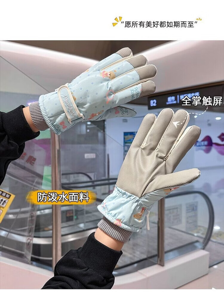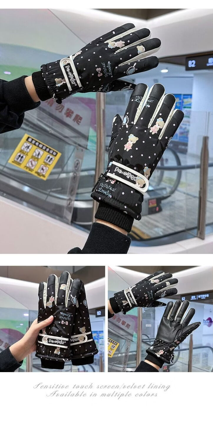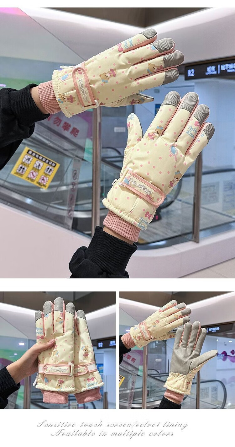 Fantasy German imported quality cycling gloves for women to keep warm in winter, plus velvet and thickened to prevent cold, outdoor cycling, electric vehicles, splash proof, bear beige