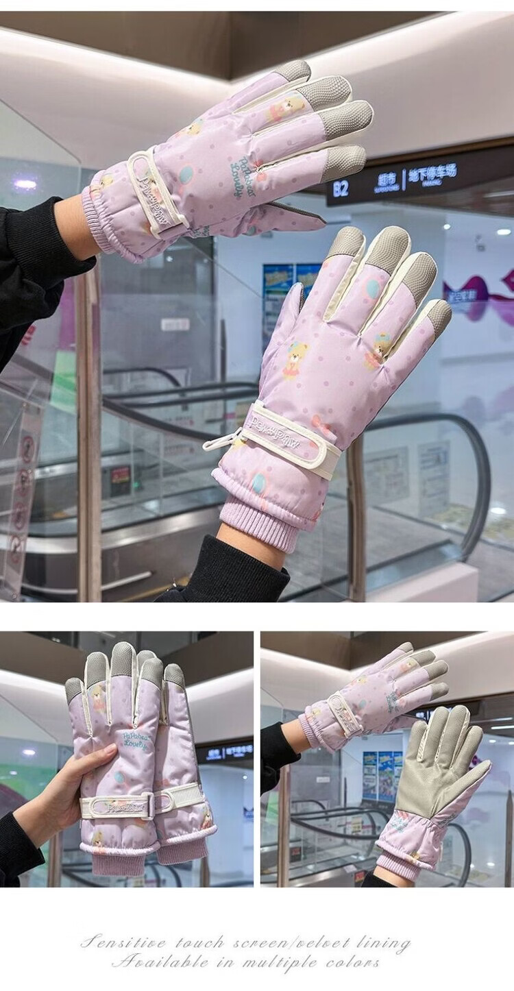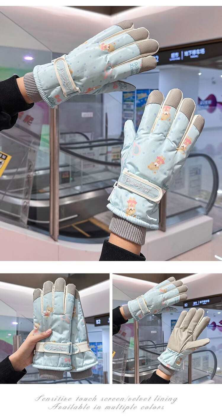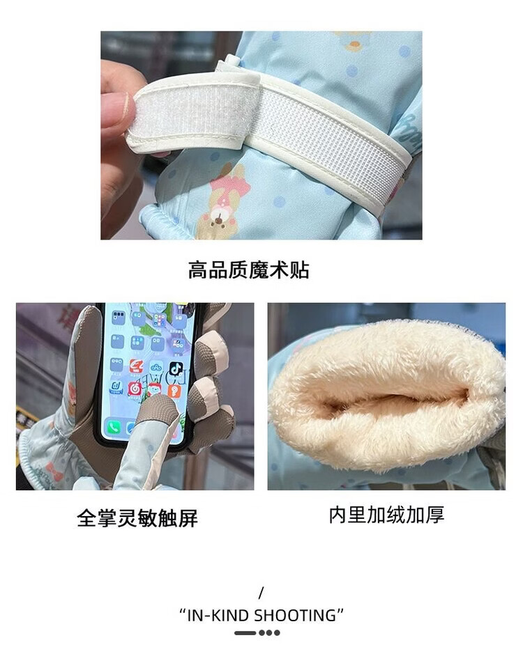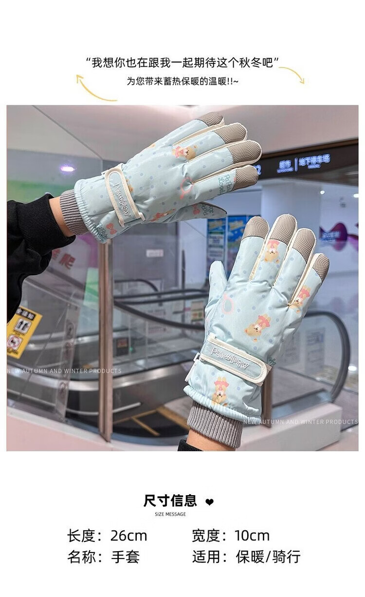 Fantasy German imported quality cycling gloves for women to keep warm in winter, plus velvet and thickened to prevent cold, outdoor cycling, electric vehicles, splash proof, bear beige