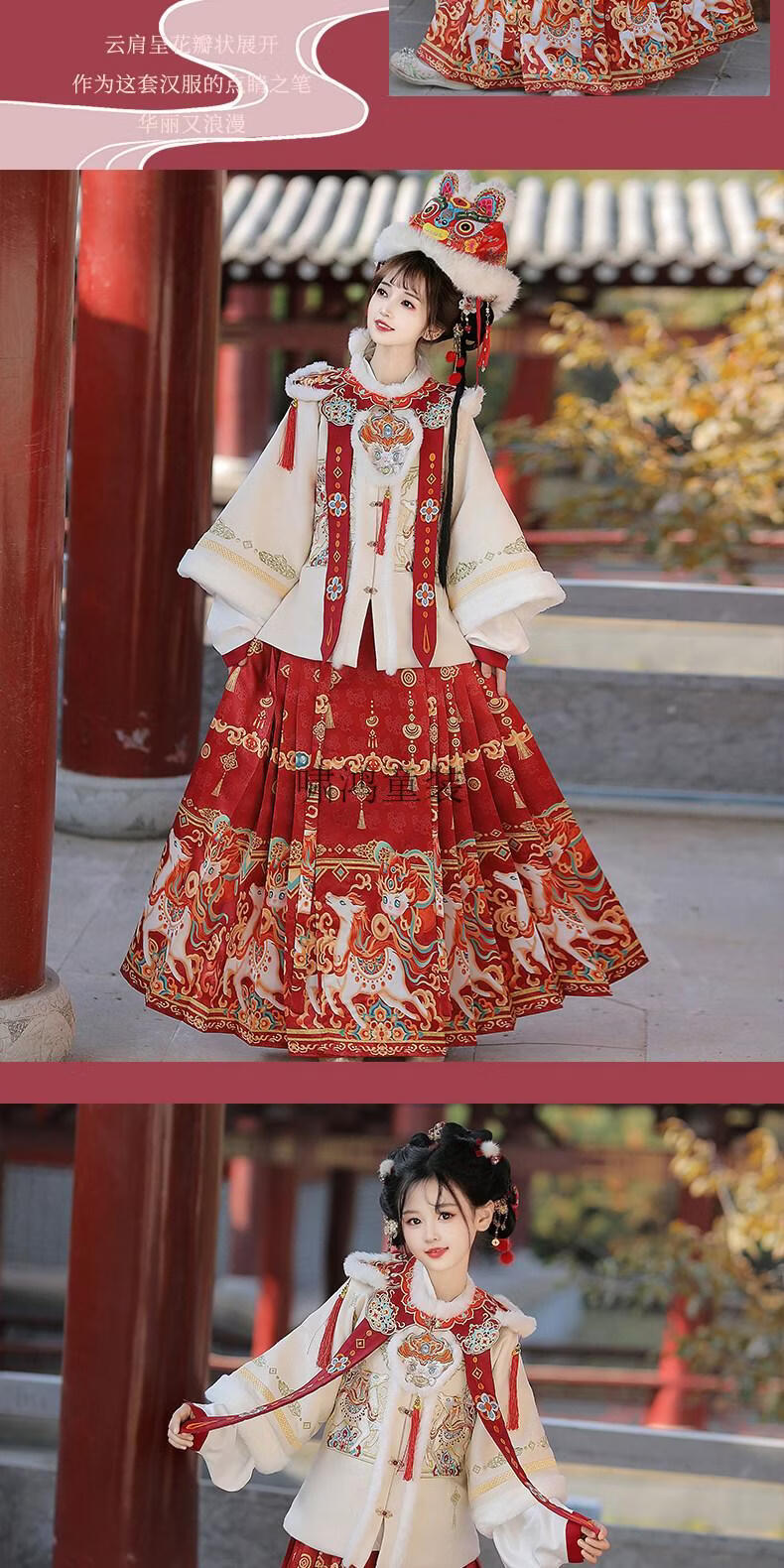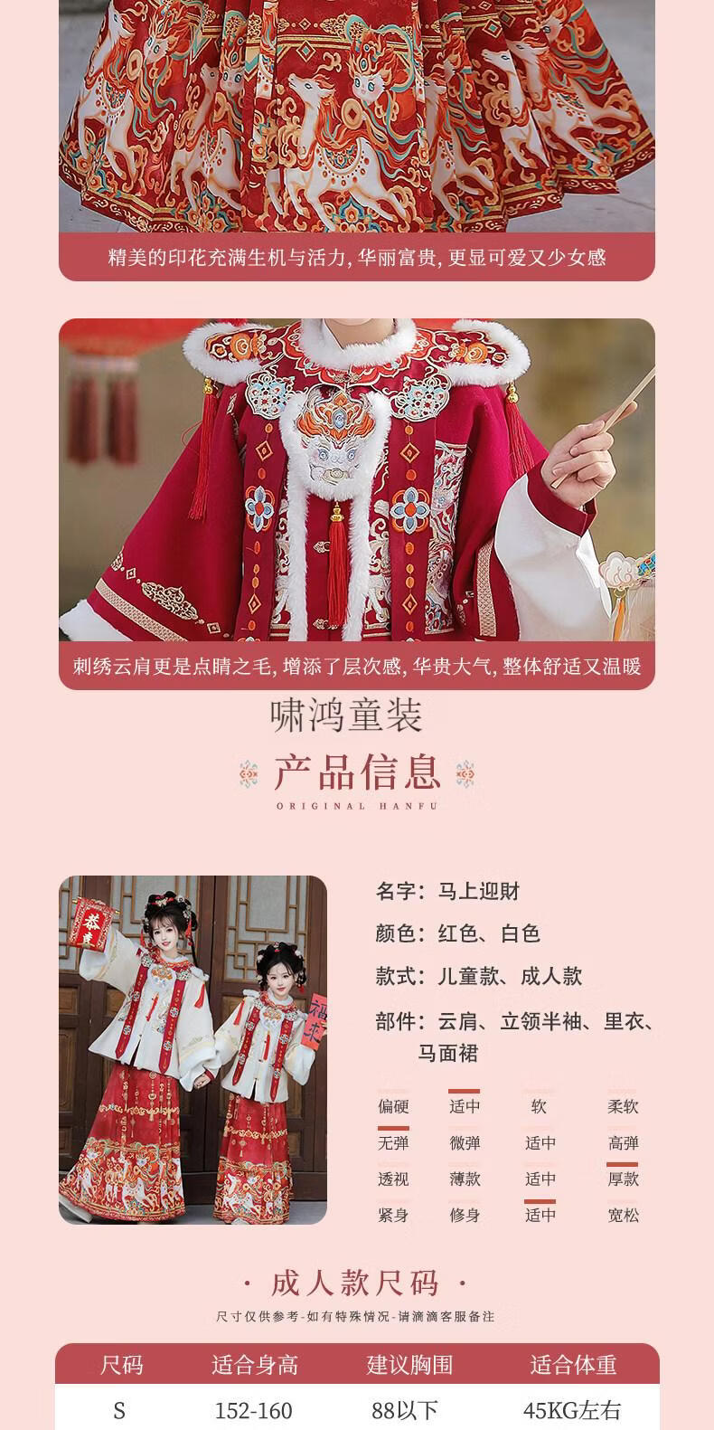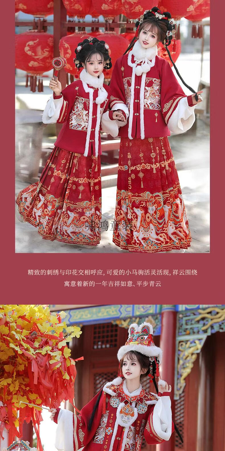 Wooden house will welcome wealth immediately Ming-made mother-daughter parent-child clothing Hanfu women 2026 new winter horse face skirt thickened children's New Year's greetings clothing immediately welcome wealth red cloud shoulder 150 children's style