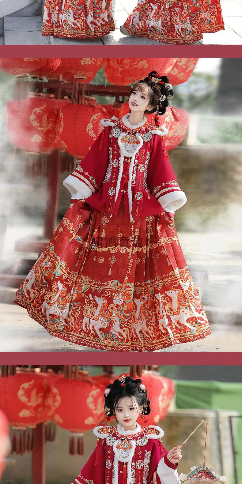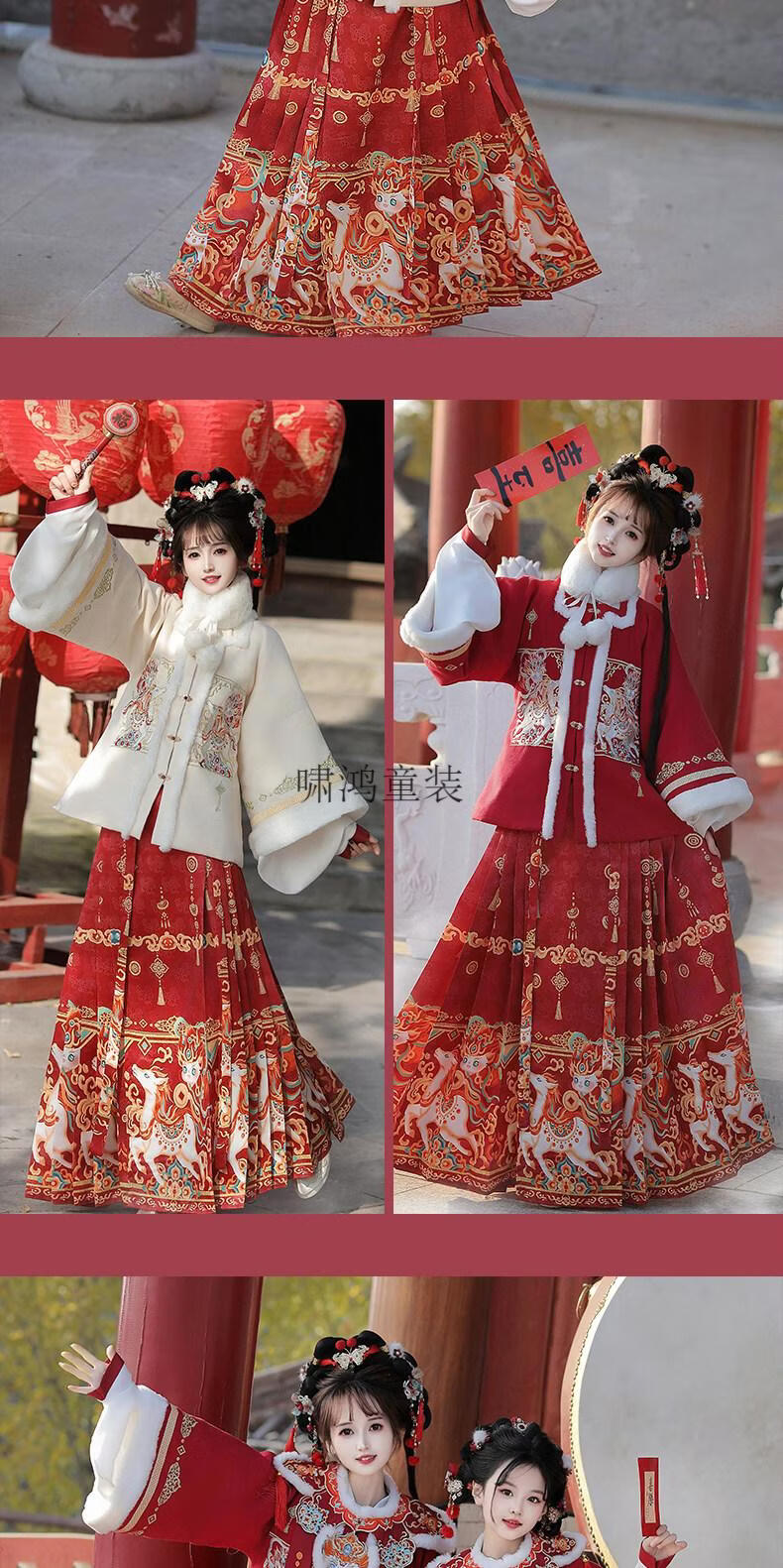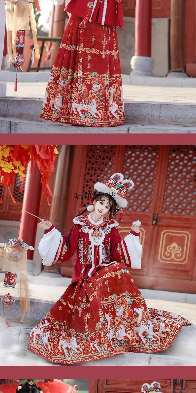 Wooden house will welcome wealth immediately Ming-made mother-daughter parent-child clothing Hanfu women 2026 new winter horse face skirt thickened children's New Year's greetings clothing immediately welcome wealth red cloud shoulder 150 children's style