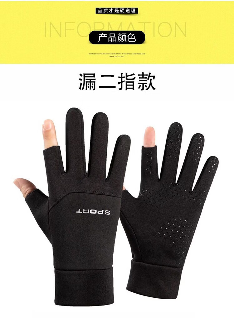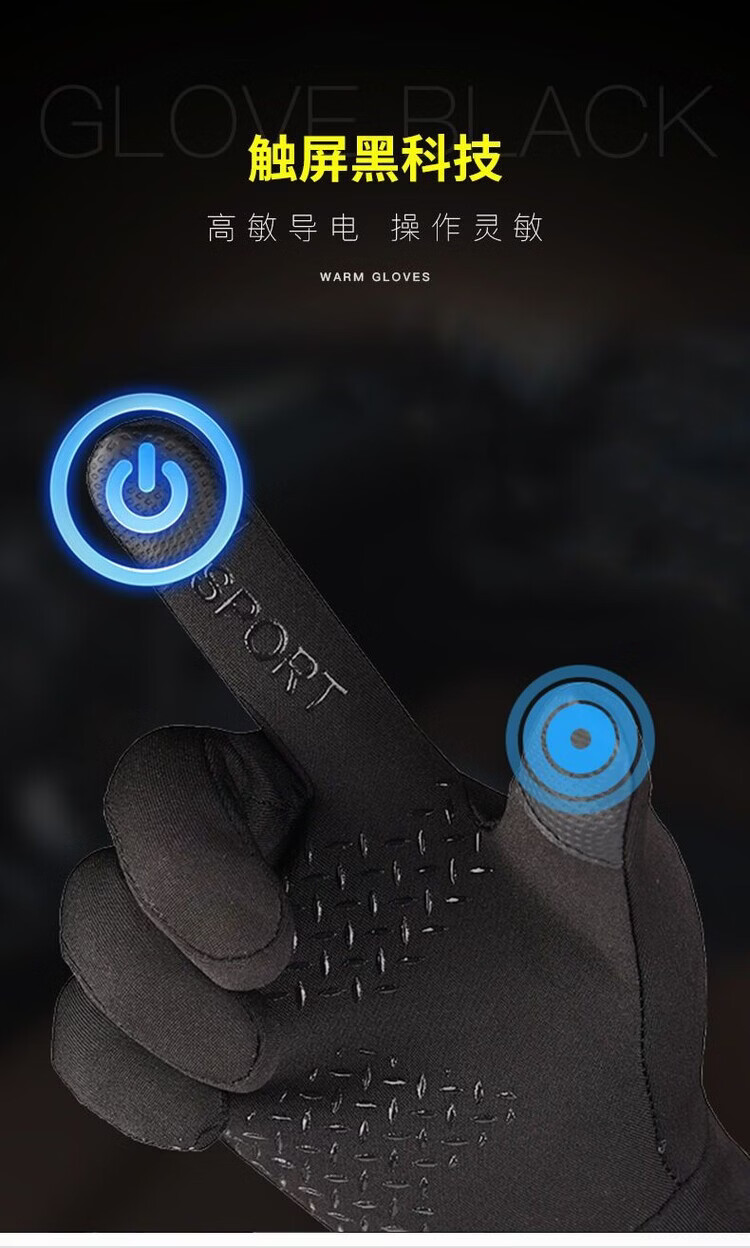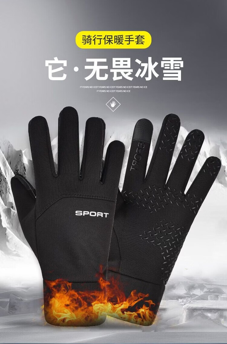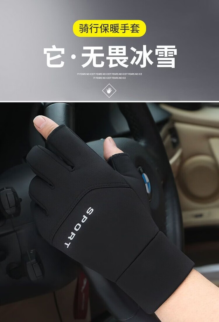 Wing Fantasy Germany imported quality gloves for men in winter, cold-proof and warm plus velvet touch screen anti-slip outdoor sports cycling and driving, single-sided two-finger-black hair pair (no gifts)
