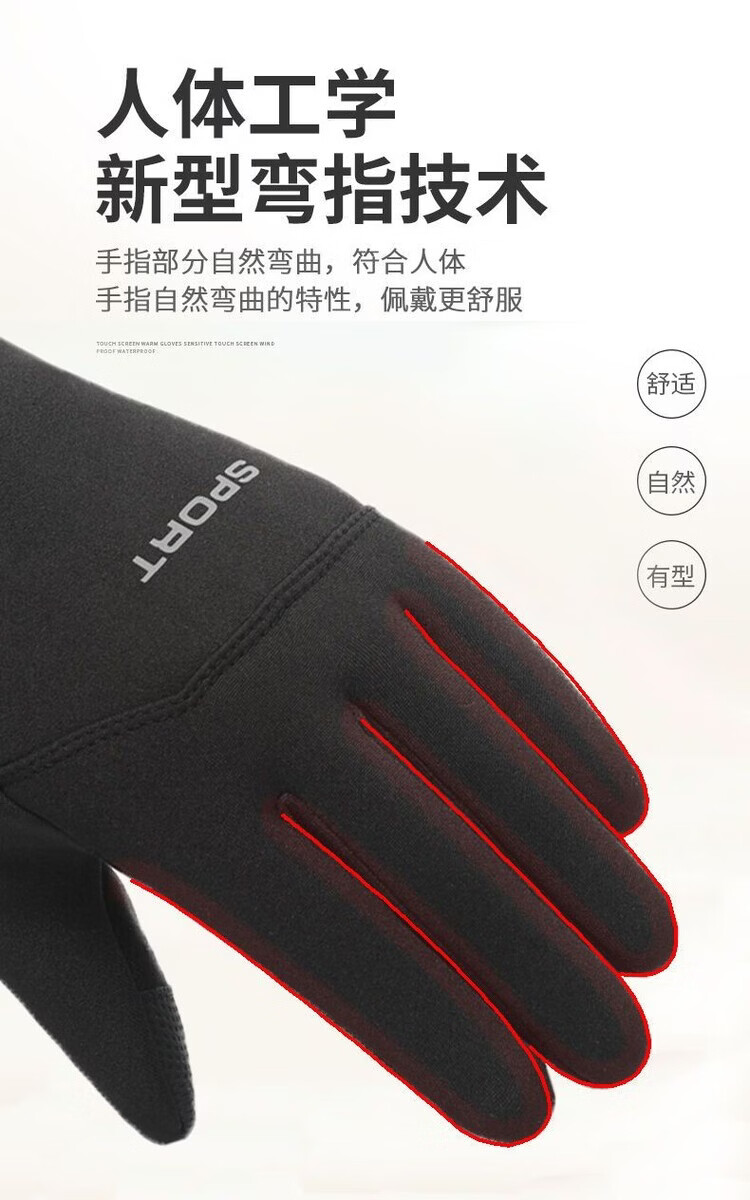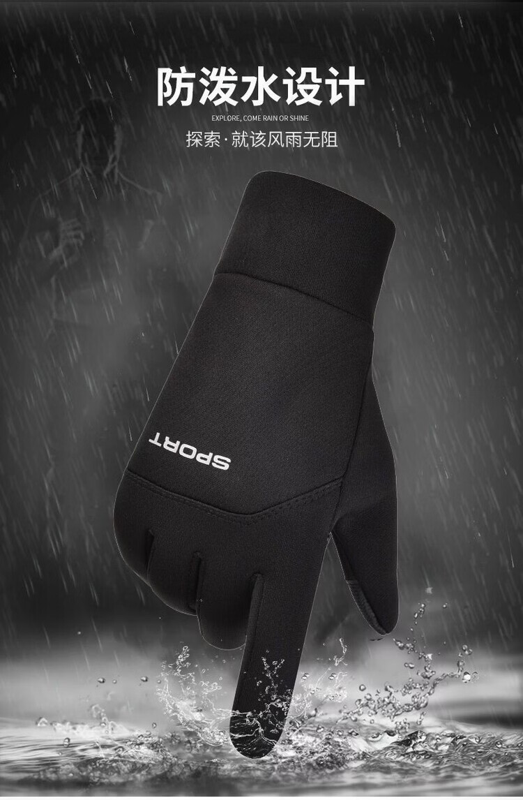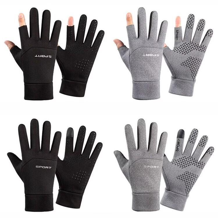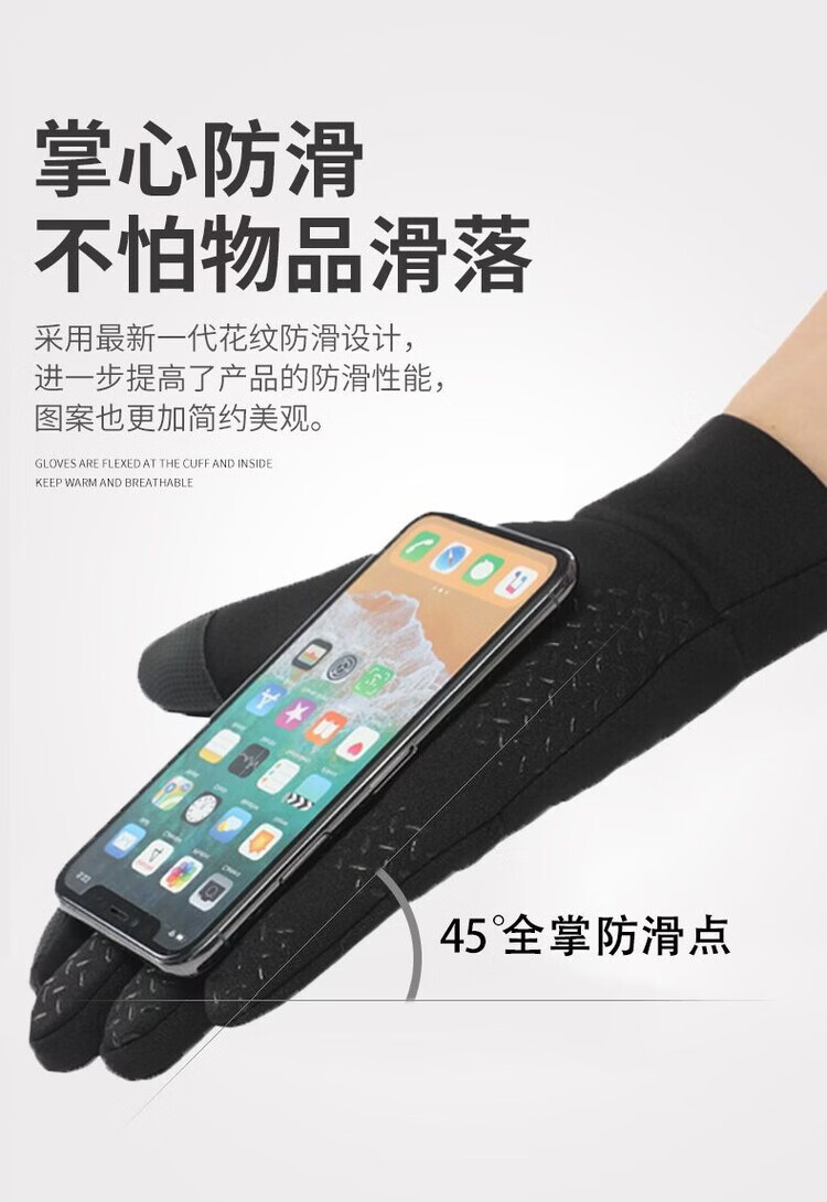 Wing Fantasy Germany imported quality gloves for men in winter, cold-proof and warm plus velvet touch screen anti-slip outdoor sports cycling and driving, single-sided two-finger-black hair pair (no gifts)