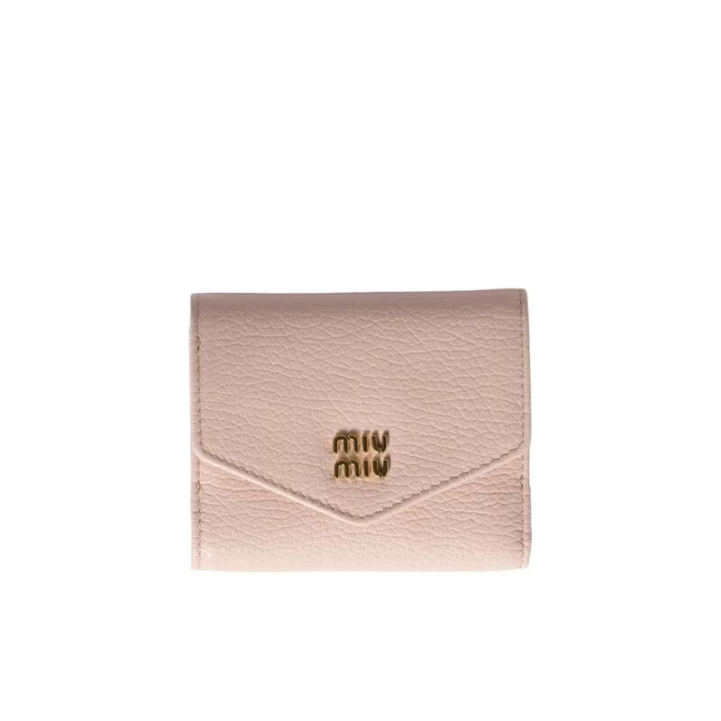 MiuMiu women's wallet with multiple card slots, bill compartment, inner pocket for storage, outer pocket, calfskin moire lining, nude color, one size fits all