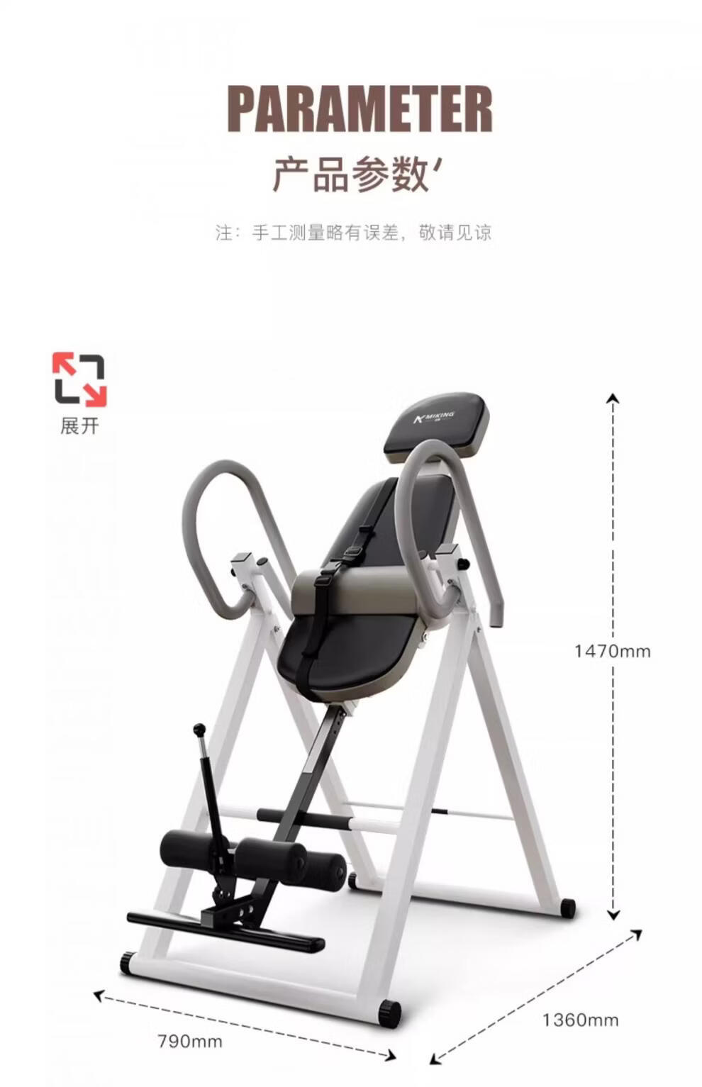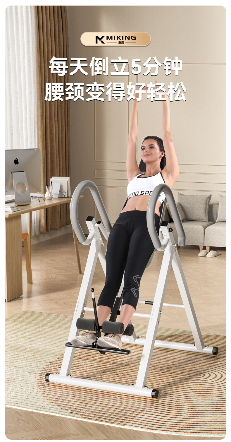MIKING inversion machine, household upside-down fitness equipment, lumbar stretching and tractor, multi-functional upside-down auxiliary artifact all-in-one machine, upgraded car safety belt, comfortable lumbar cushion, single-person operation, one-second folding
