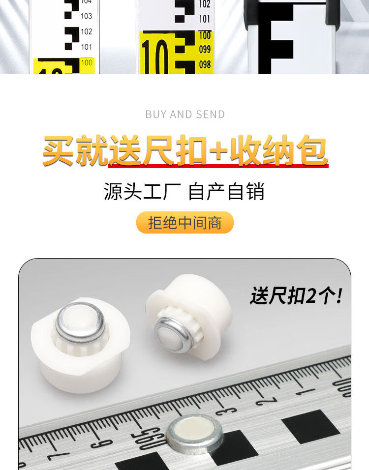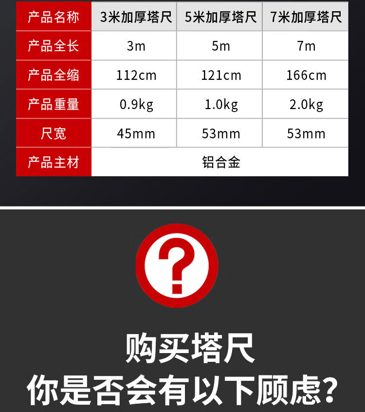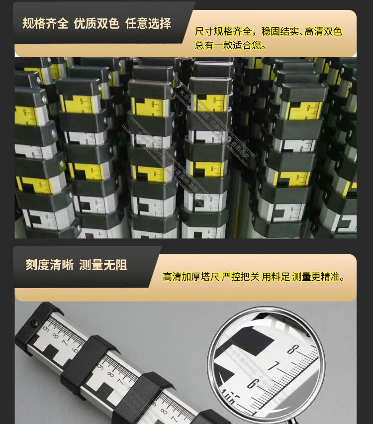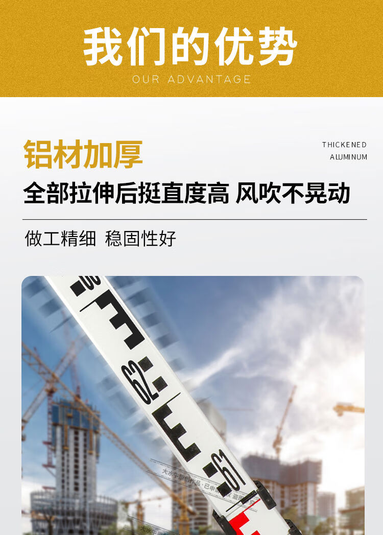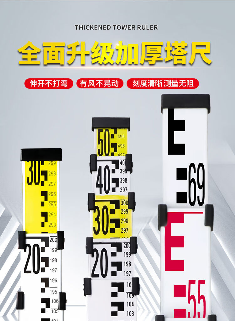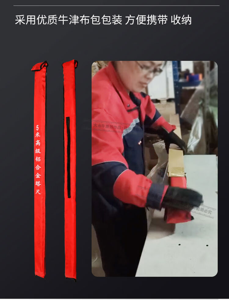 Big buffalo thickened tower ruler 5 meters aluminum alloy surveying and mapping elevation ruler 37 meters level telescopic measuring ruler rod scale 7 clear thickened and reinforced general ticket free ruler buckle*2