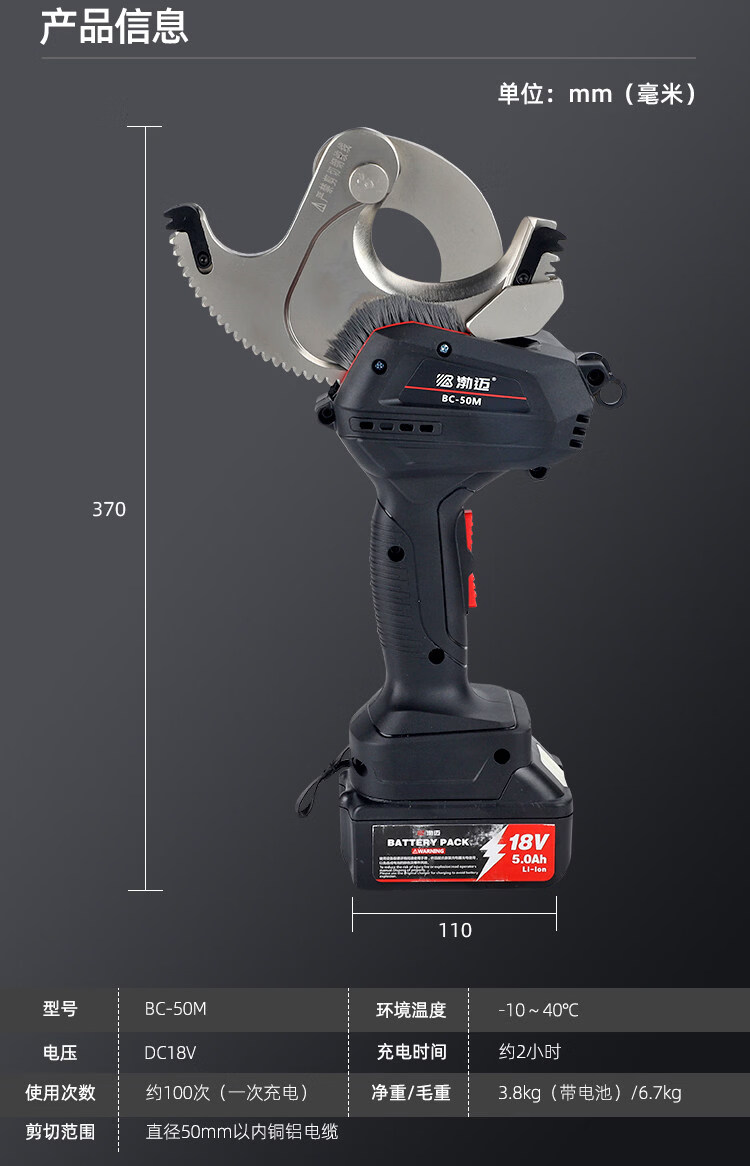 Cable cutter electric cable cutter rechargeable ratchet armored copper and aluminum cable cutter wire cutter lithium battery small electrician special SF brush reinforced model BC-50M/cut 1*400 or 5cm inner copper and aluminum cable/cut