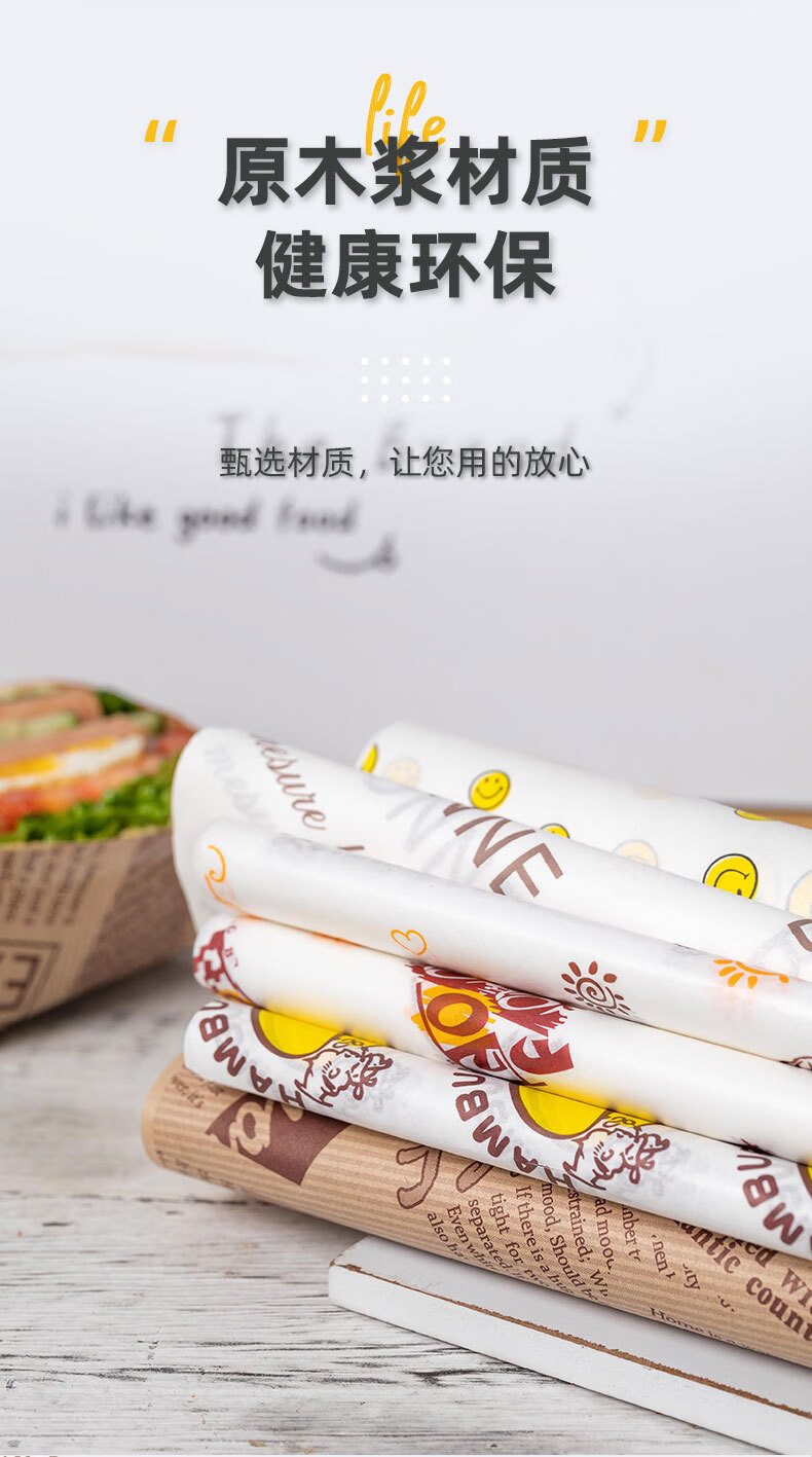 Shantou Lincun sandwich wrapping paper oil-absorbing hamburger paper coated paper air fryer household baking oil paper 38 anti-fog baking paper double layer (pink girl 50 sheets)