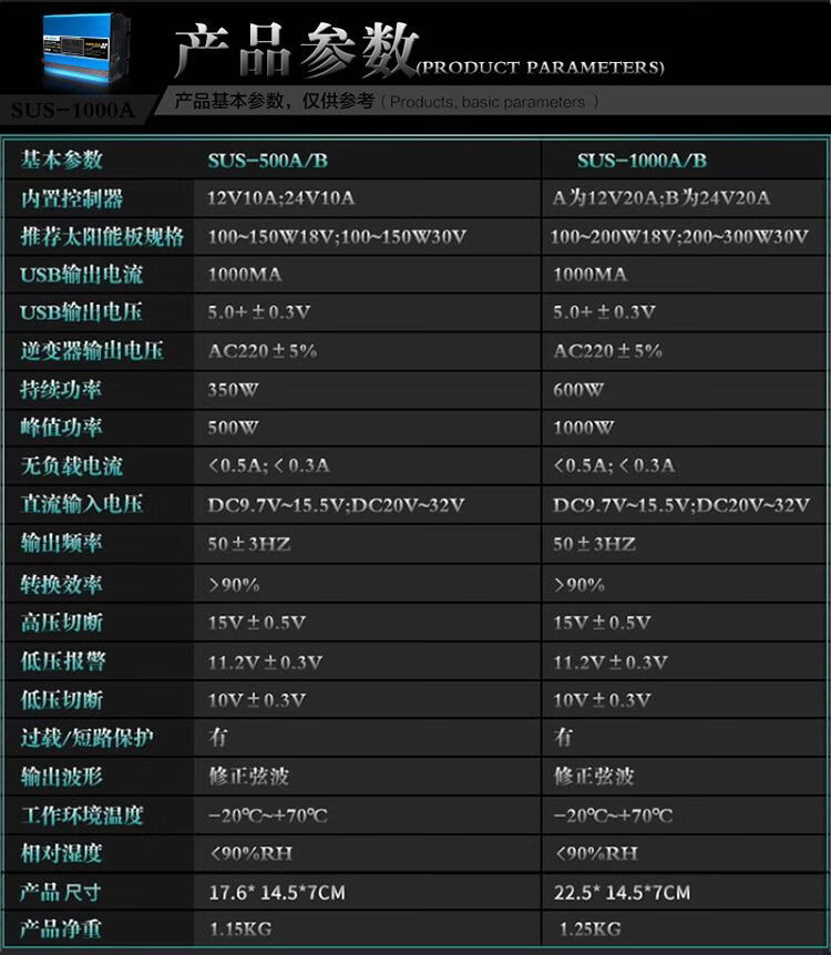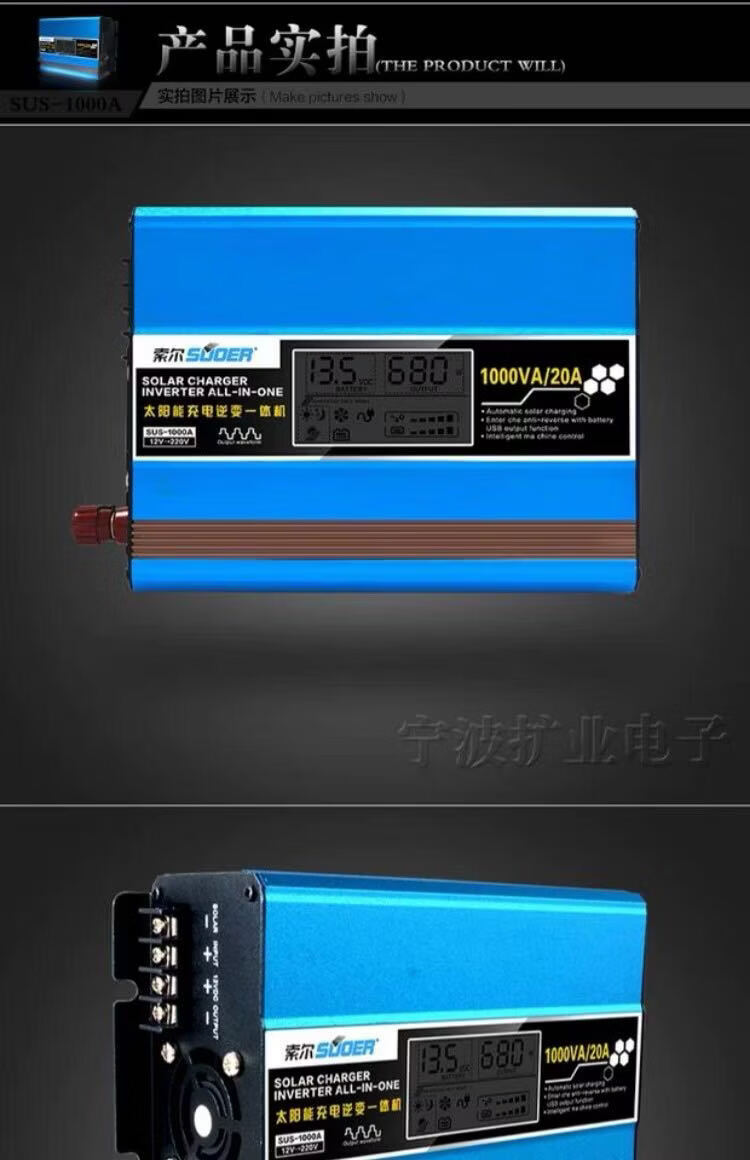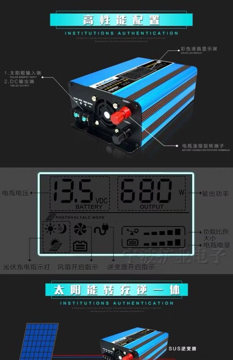 Solar inverter controller all-in-one home charging 12V to 220V 1000W converter with 1500W12V solar charging inverter all-in-one