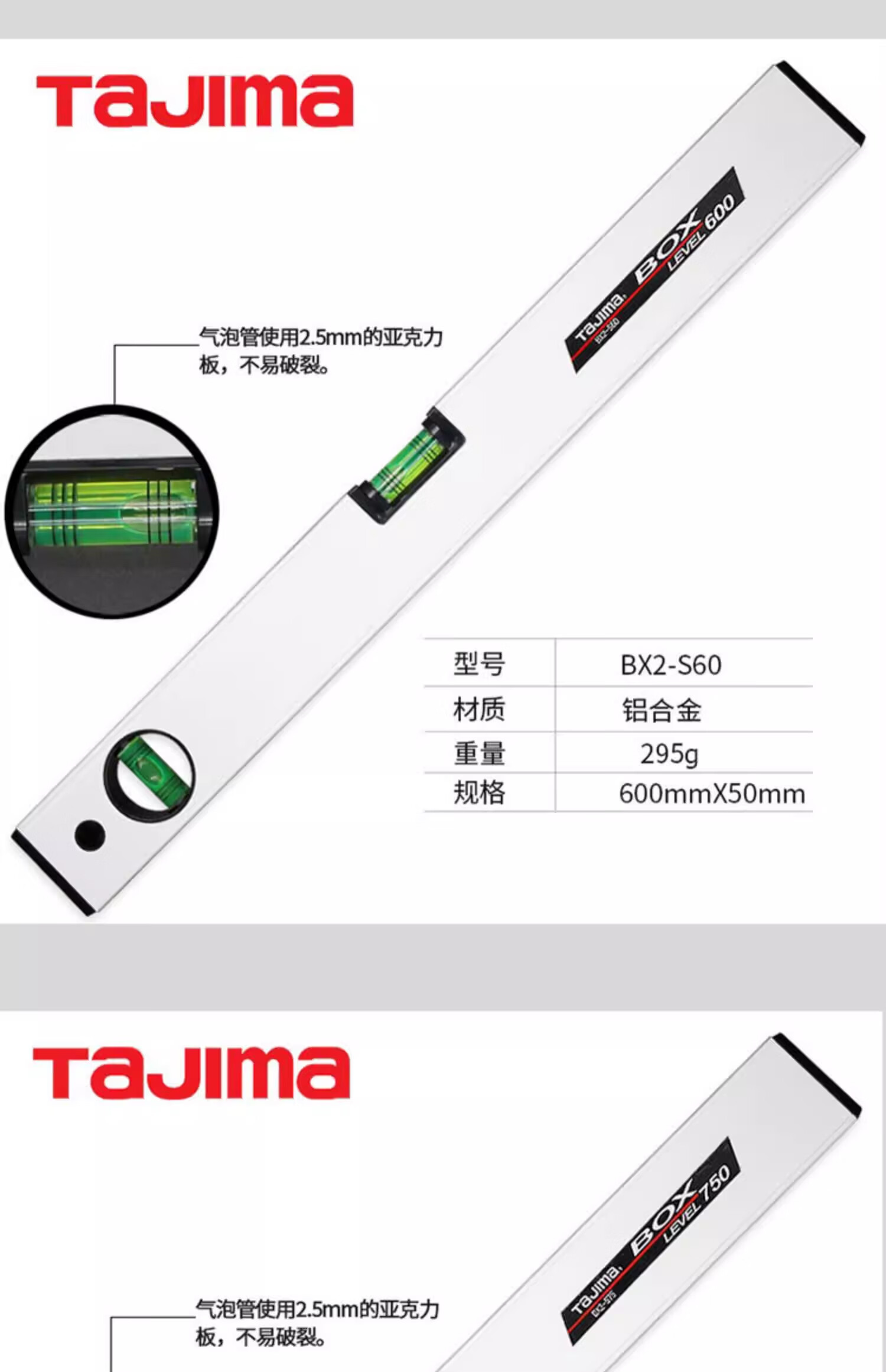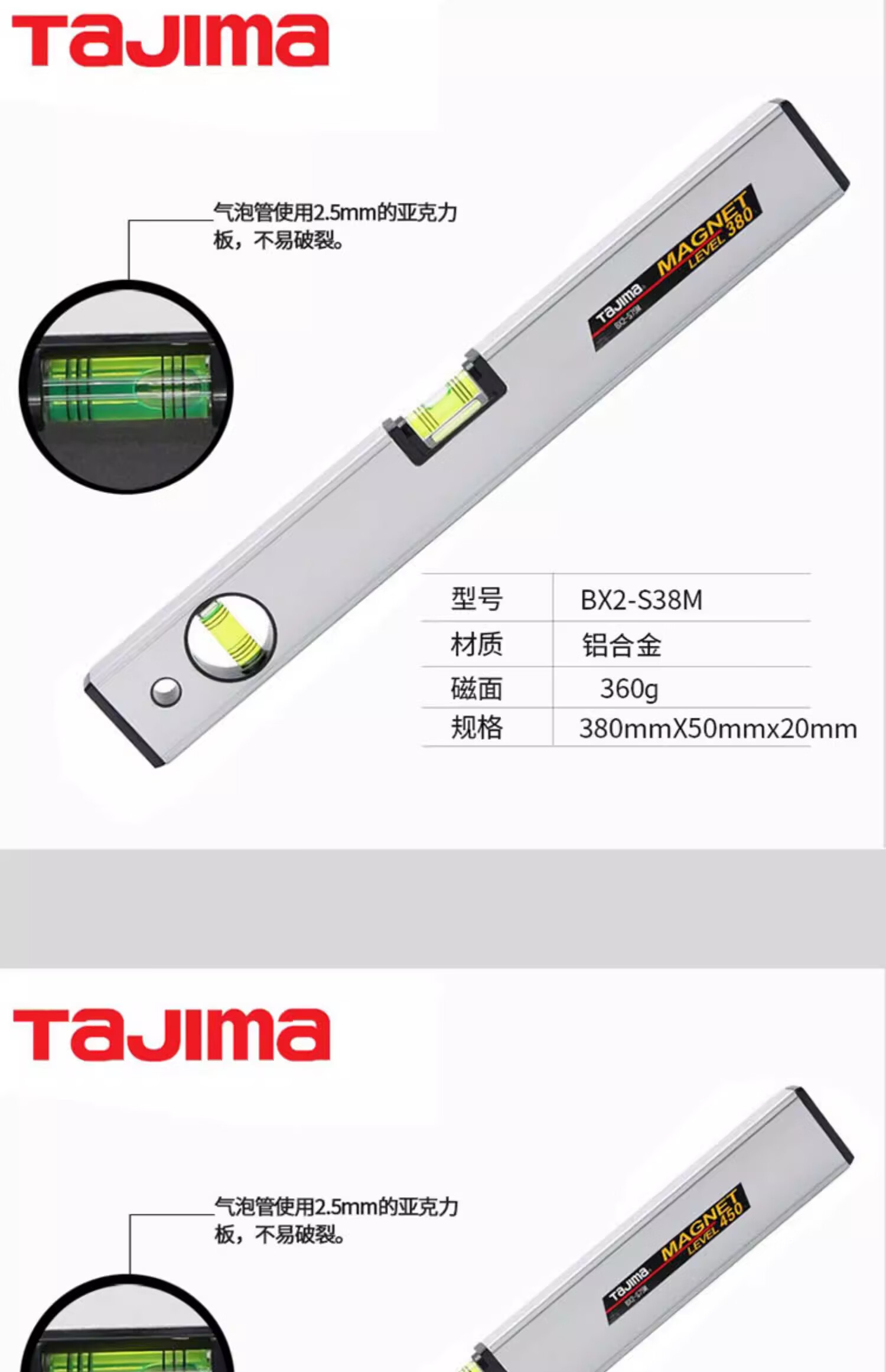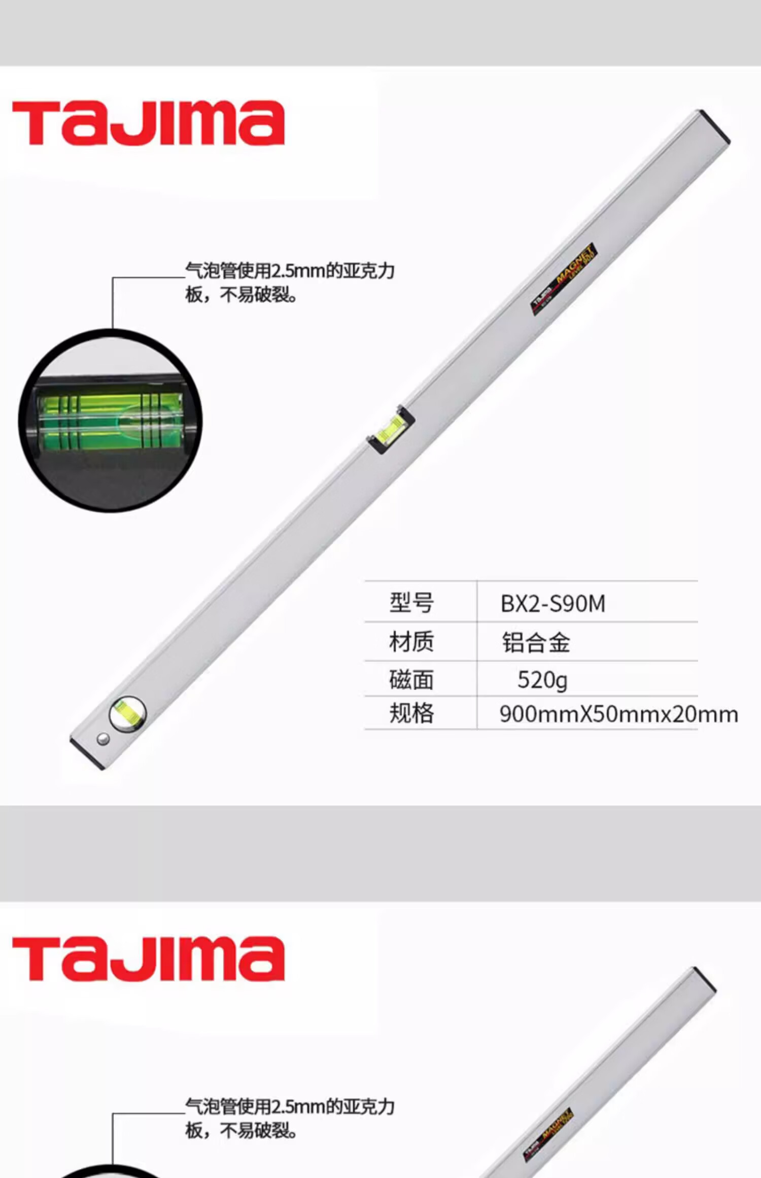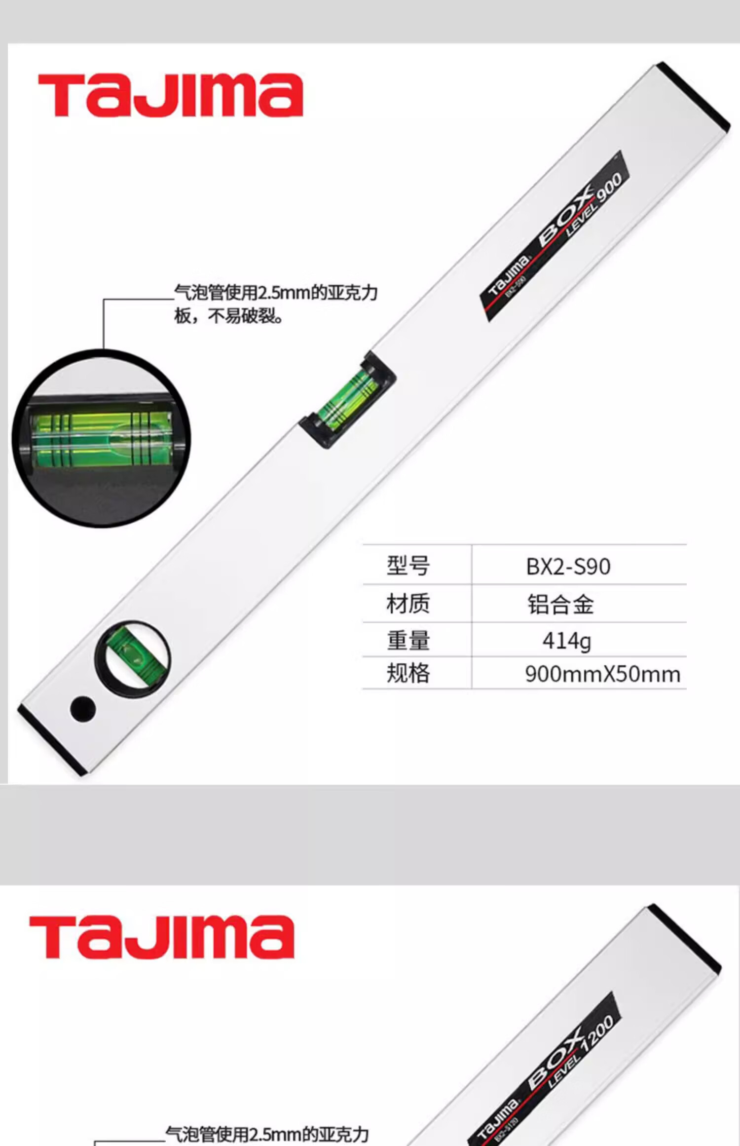 TaJIma Tajima bubble aluminum alloy level BX2-S30/45/60/90/120 magnetic BX2-S45M/90M HD heavy duty level 1200