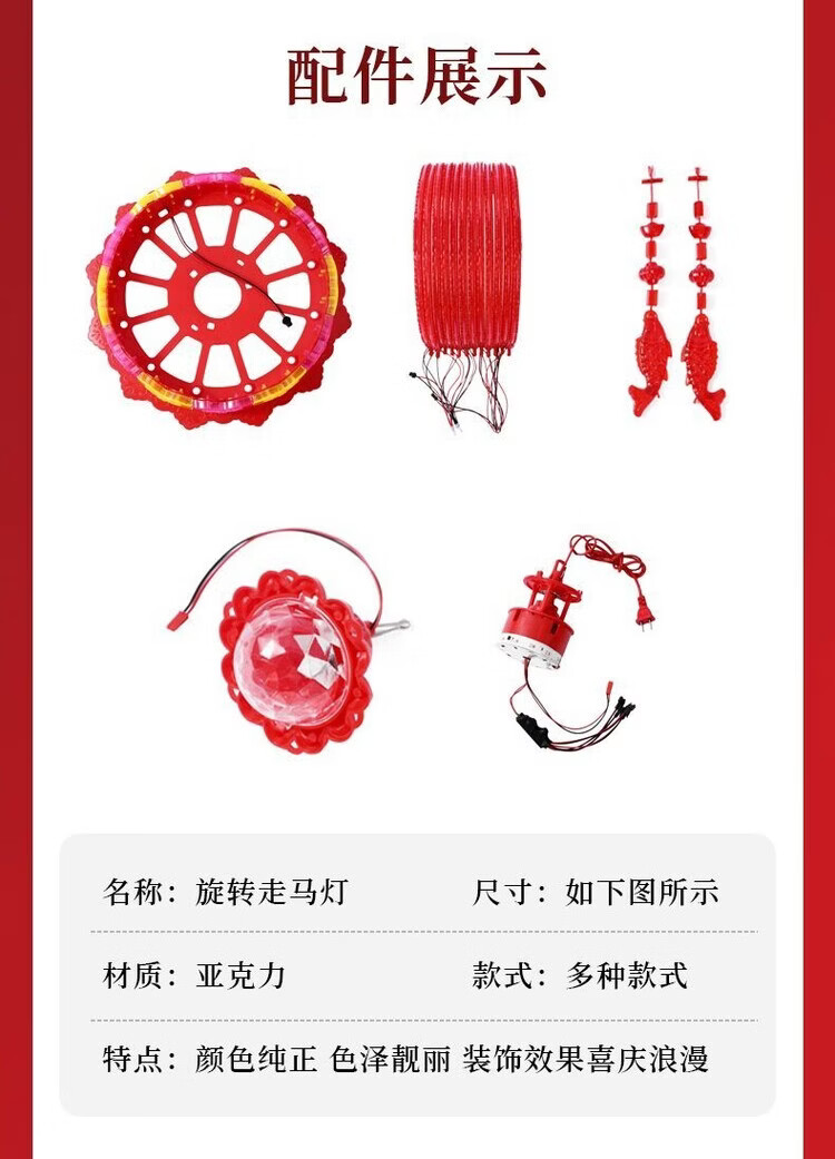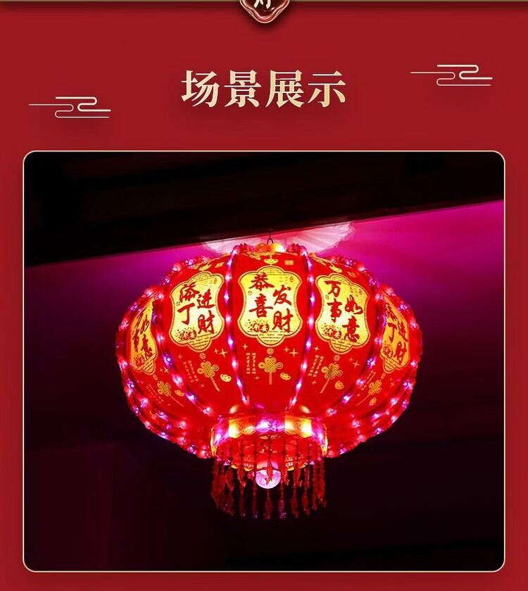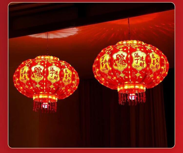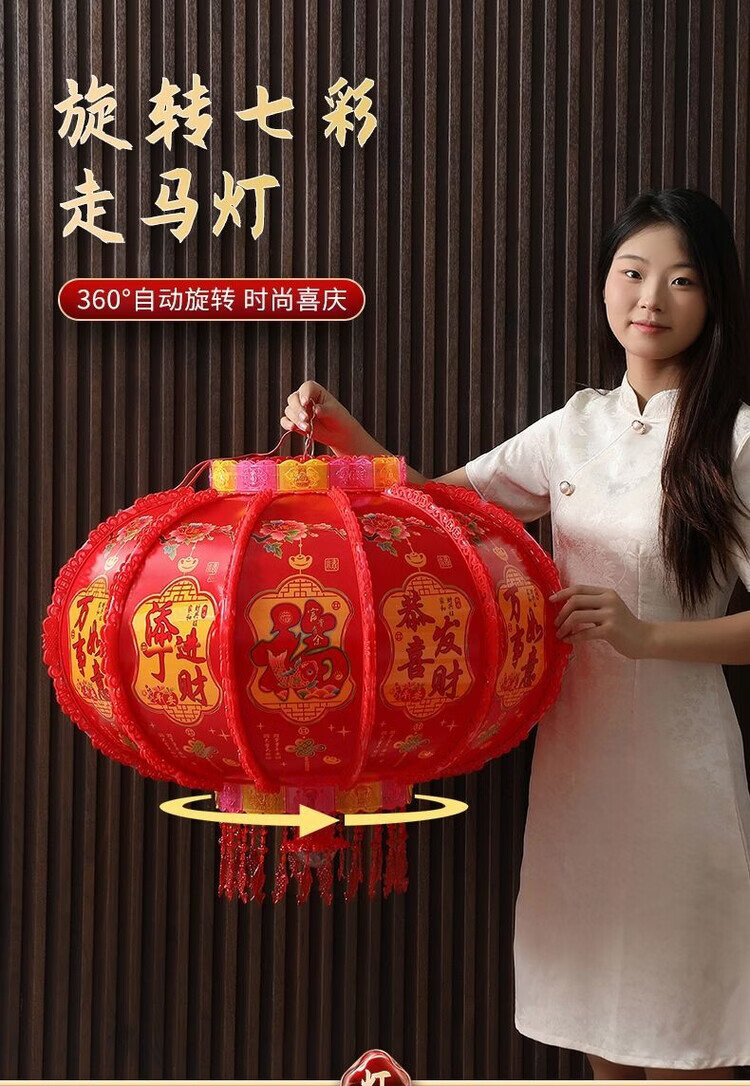 Xushansi 2026 new colorful rotating lanterns at the gate, a pair of LED revolving lanterns for the balcony, Spring Festival and New Year, glowing plug-in, new upgrade, water cube model + magic lantern, a pair, platform certification, No. 150 diameter, about 64cm, gate recommendation